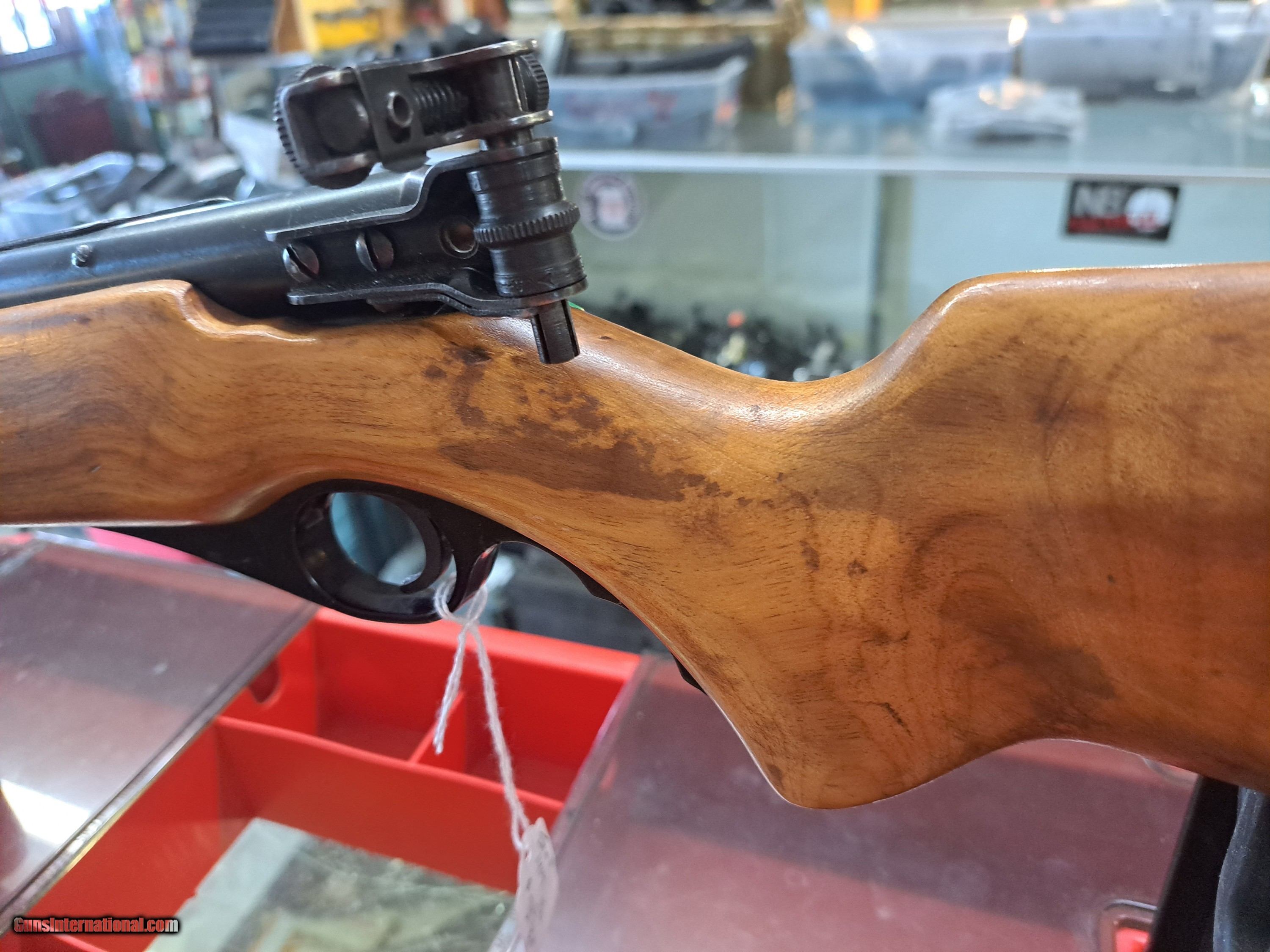 Description: Here we have a mossberg model 46B .22 caliber rifle. .22 L,LR,SHORT. ALL ORIGINAL. folding rear sight. Gun is very solid and stout. Very good condition. No rust, damage or defects. Bore is strong and shiny . These are getting hard to find. FFL OR CURIOS &RELICS. SHIPPING AT 90.00 INCLUDES INSURANCE. POSTAL MONEY ORDERS. THANKS JAY.....7757625029 SOLD Rifle Caliber: .22 Long Rifle |