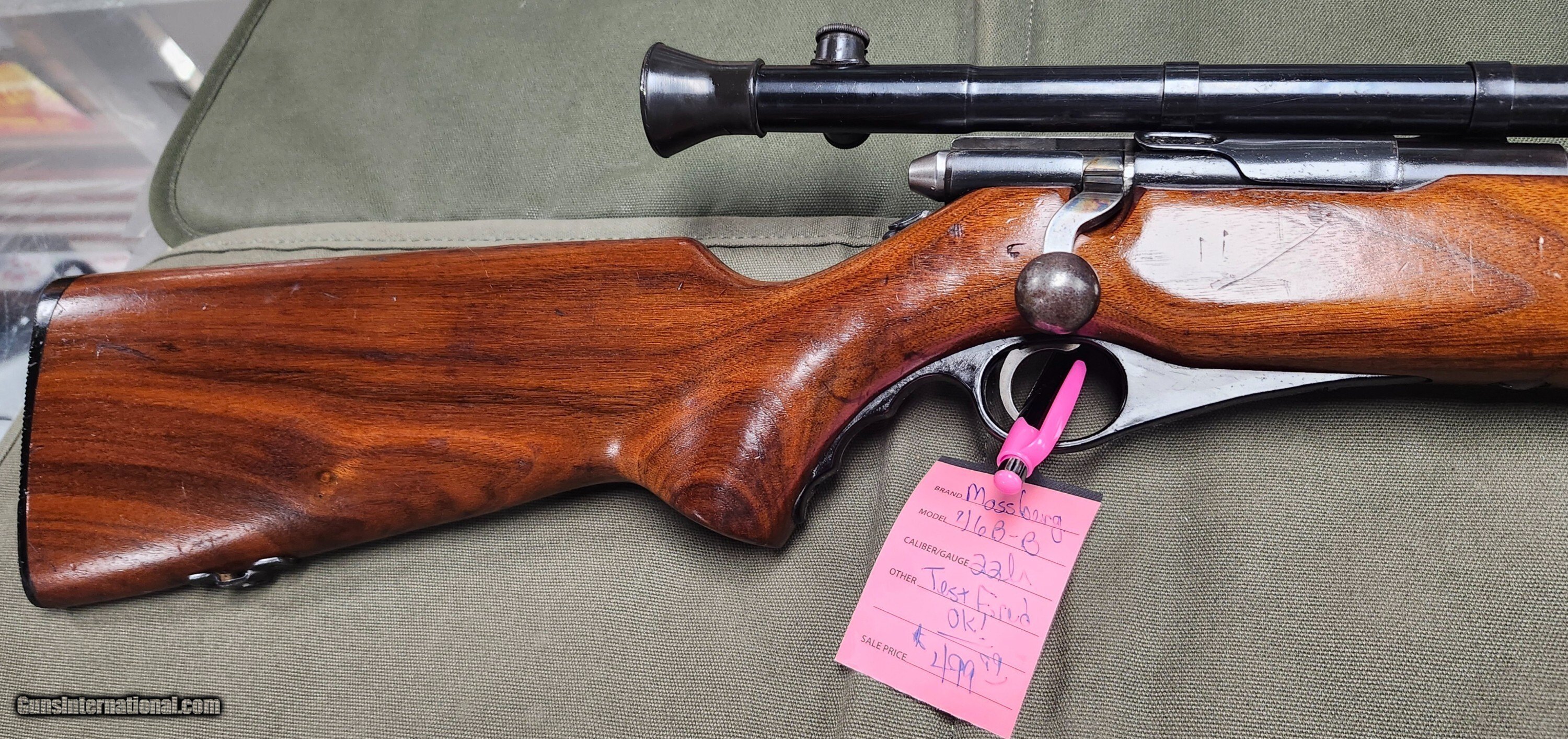 Description: What a dandy tubefed bolt action rifle. It comes as you see with very nice walnut........... including the Mossberg M4c scope. The rifle has been test fired and is ready to fill a collection or find its was to a gopher pasture. Please call or email with any questions. WE TAKE CREDIT CARDS, DEBIT CARDS, MONEY ORDERS, CASHIER CHECKS, OR EVEN PERSONAL CHECKS.........AS LONG AS THEY'RE GOOD! 3% will be added to all charge cards. Sales tax will be charged unless you have a sales tax/resale permit. GUNS WILL BE HELD UNTIL PERSONAL CHECKS CLEAR. GUNS SUBJECT TO PRIOR SALE. There is a $50 shipping charge per gun and is NOT refundable. Insurance may be extra. Thank you, Darryl Howard Price: $500.00 Contact Seller |