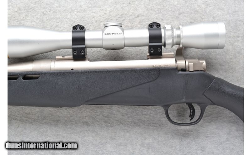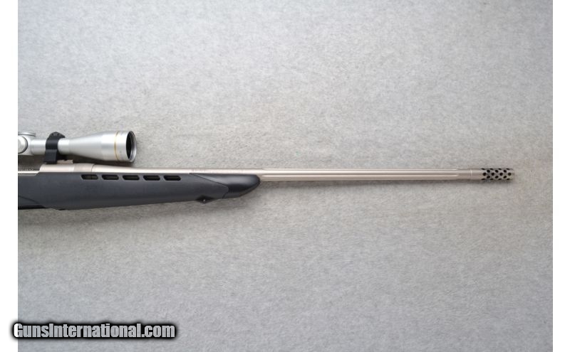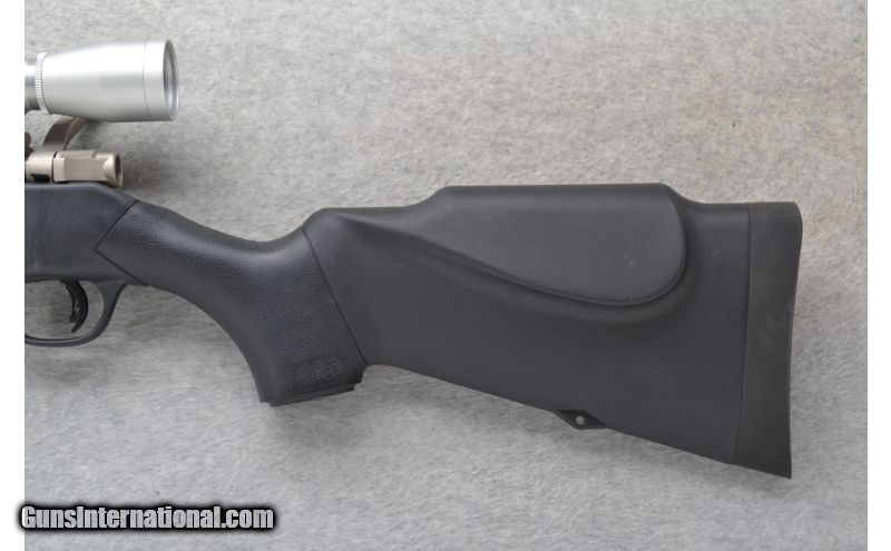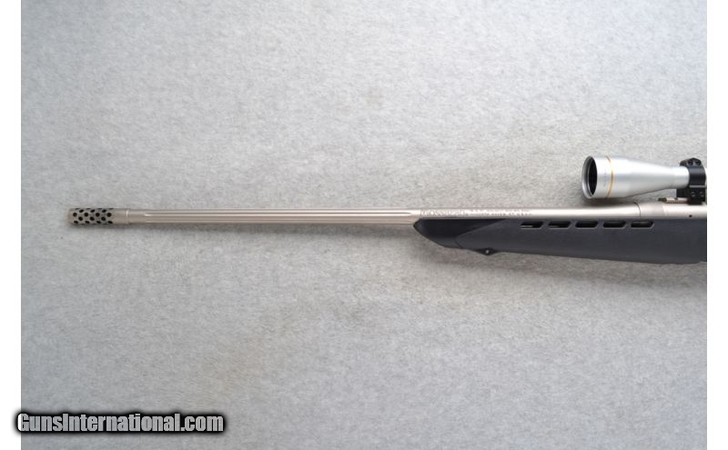 Description: This Mossberg Model 4X4 is a right hand bolt action rifle in .300 Win. Mag. Cal. It has a 26 inch fluted satin stainless steel barrel with a muzzle break. A knurled bolt handle. It is outfitted with a Leupold VX-II 3-9x40mm Scope. No iron sights. It has a checkered grip black polymer pistol grip stock with a raised cheekpiece. In overall excellent condition it comes as is. No box. SOLD Caliber Info: .300 Win Mag. Chambers: Detachable magazine. Metal Condition: Excellent. Bore Condition: Excellent. Barrels: 26 inch fluted stainless steel with a muzzle break. Stock: Lightly textured grip black polymer pistol grip with a raised cheekpiece and black polymer cap. Stock Dimensions: LOP 13 1/4 inches. Fore End: Lightly textured black polymer with side vents. Butt Pad: Mossberg black rubber recoil pad. Weight: 7 lbs. 8 oz. with scope mounted. Sights: Leupold VX-II 3-9x40mm silver scope. No iron sights. Item Location: Richfield, WI |