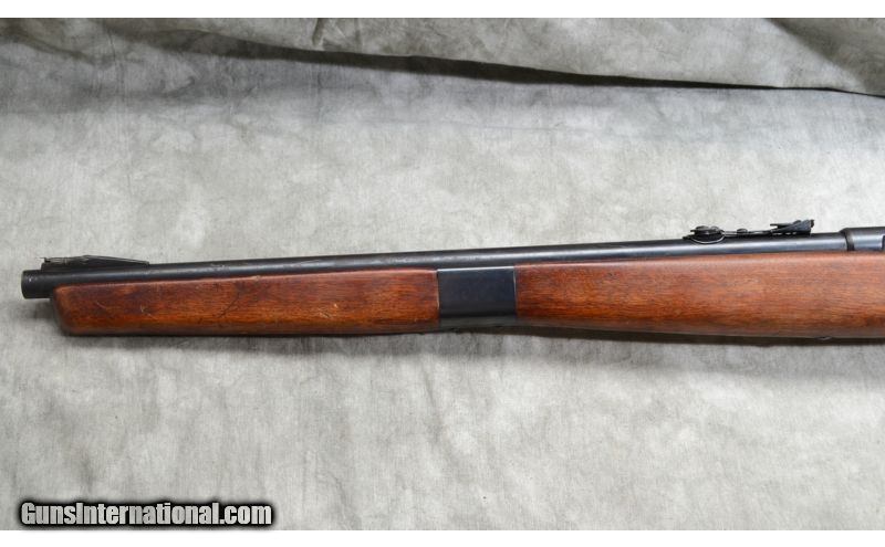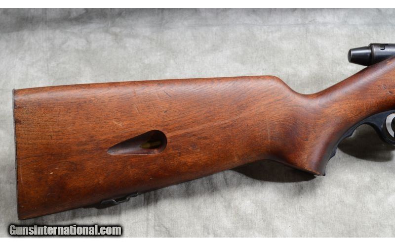 Description: SOLD Caliber Info: .22 Long rifle. Chambers: 10 round tubular magazine, loaded through the butt stock. Metal Condition: Very good. Wood Condition: Very good. Bore Condition: Shiny and bright. Barrels: 20 Inch - blue with factory sights. Triggers: Factory trigger. Stock: Walnut Pistol Grip Stock Dimensions: 13 - 3/4 inch LOP. Fore End: Full length. Butt Pad: Steel plate. Weight: 6 lb. - 14 oz. Sights: Ring front sight, notch rear sight. Item Location: Rogers,, MN |