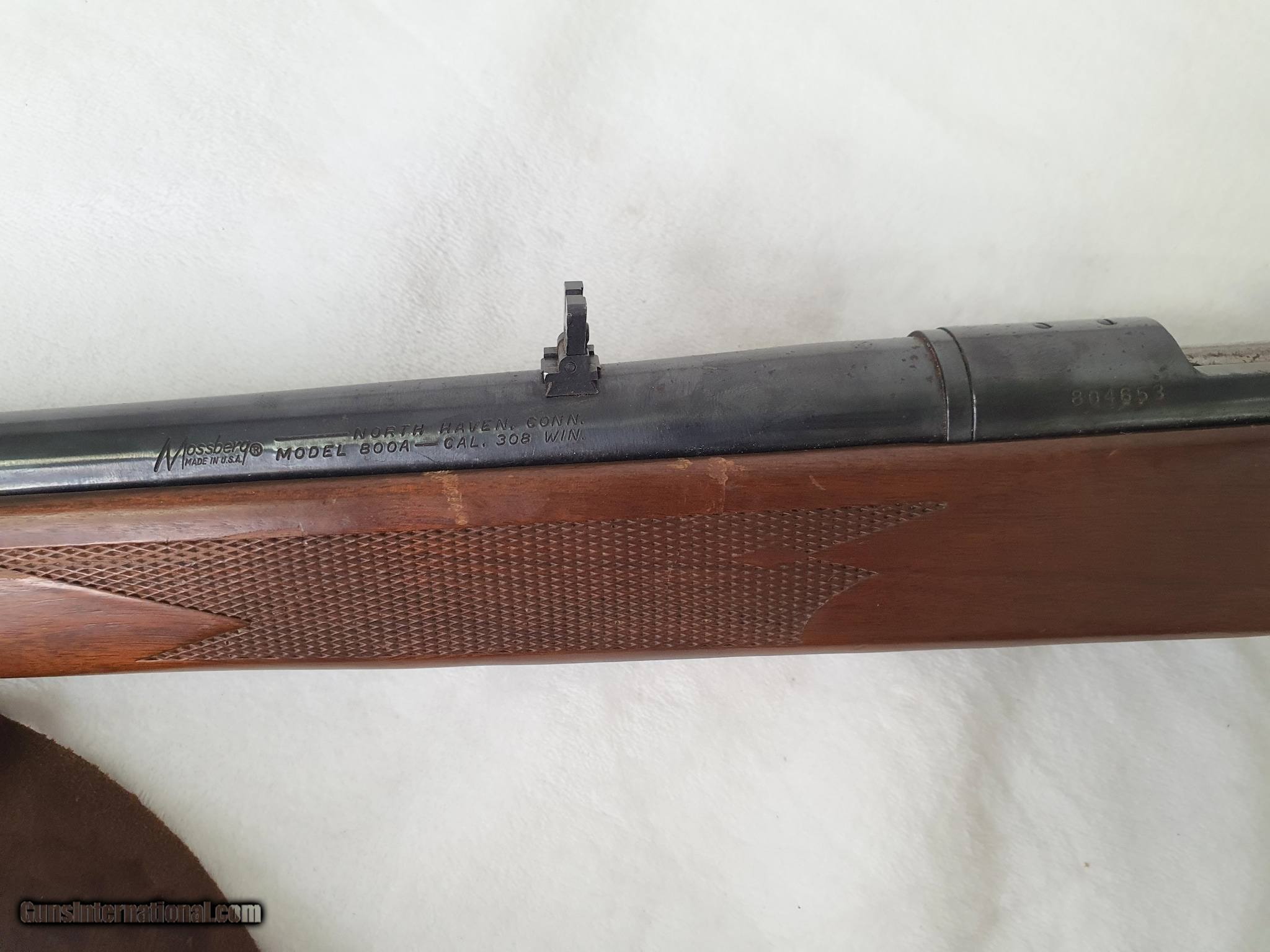 Description: Guns Listing ID: 557506 MOSSBERG 800A - .308 WIN - 4 ROUNDS - 22 \" in fair condition, with sling. Gun shows wear from use, scratches, slight dings to wood grain, light rust in a couple spots on barrel, butt of gun is worn and shows blemishes. Leather sling has lots of wear next to connection to gun. For more details see photos. SKU: FCN000689 KCD SOLD Manufacturer: MOSSBERG Model: 800A Caliber Info: .308 WIN Condition: Used - Non-Certified Barrels: 22 BARREL Finish: BLUE |