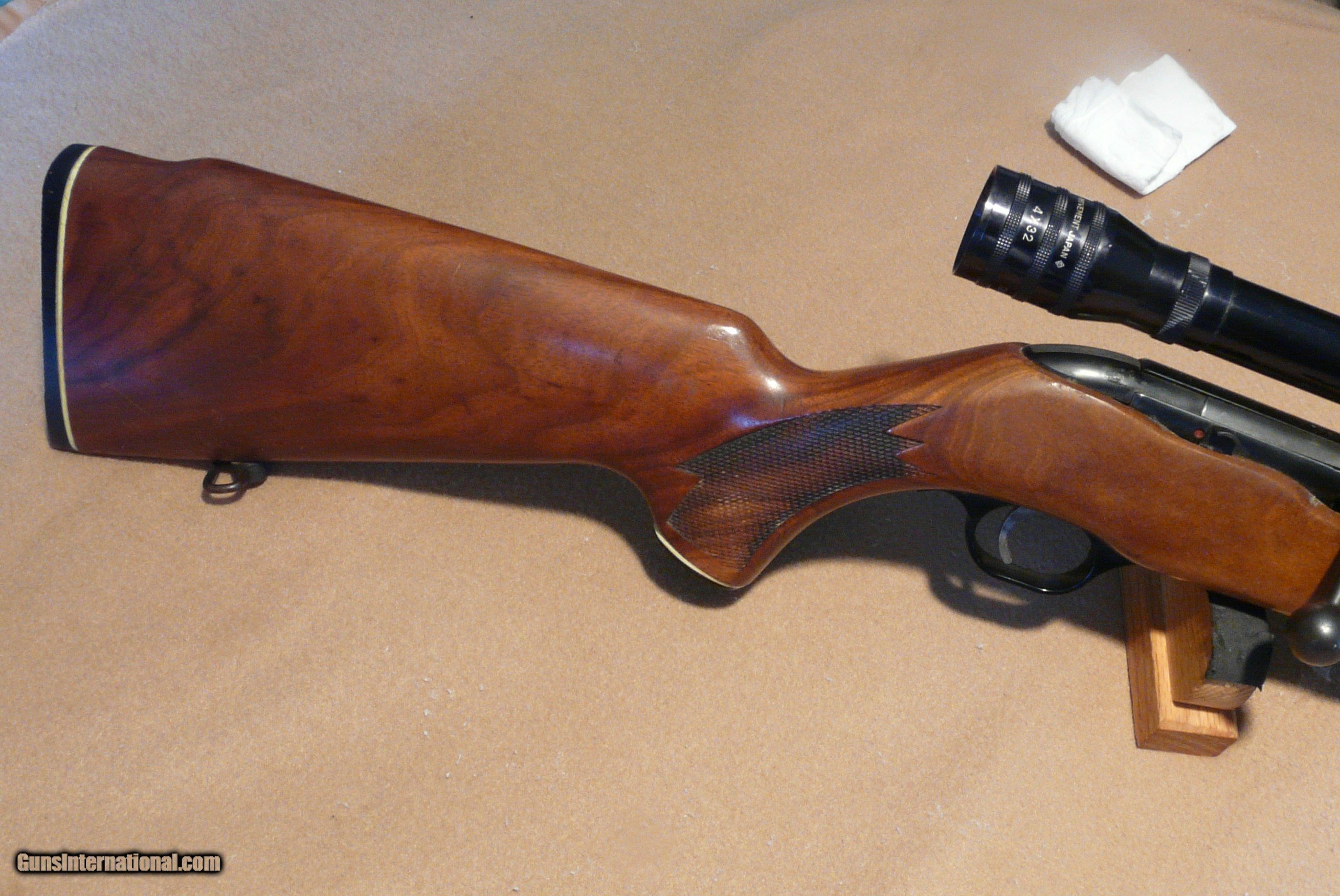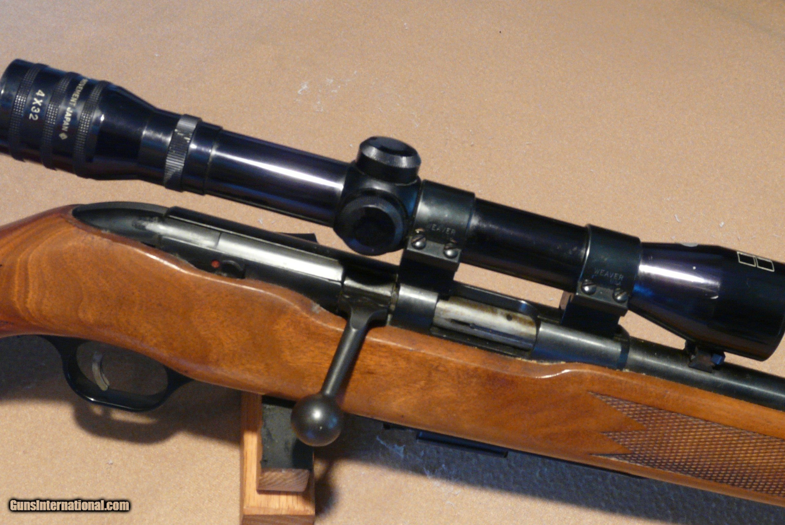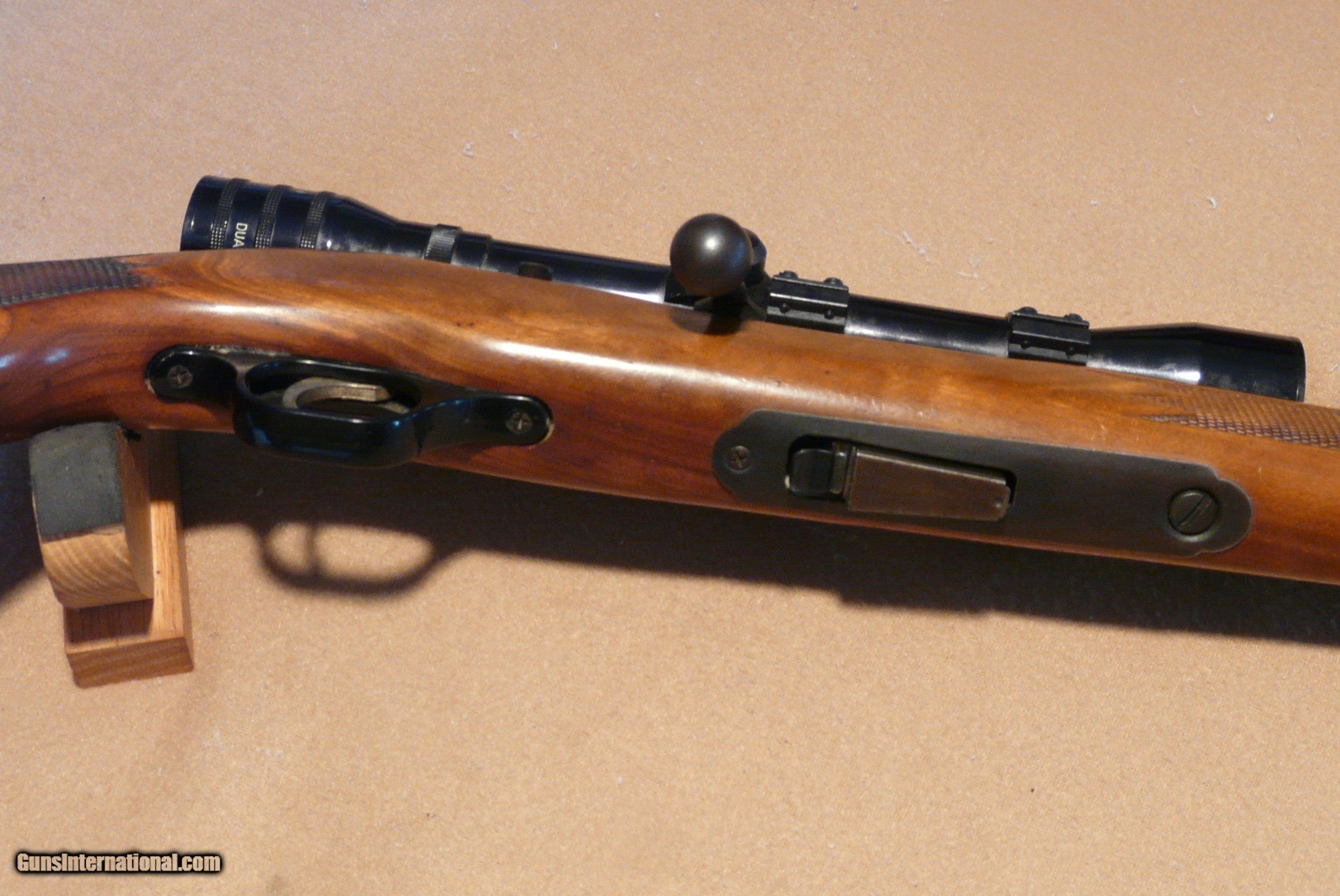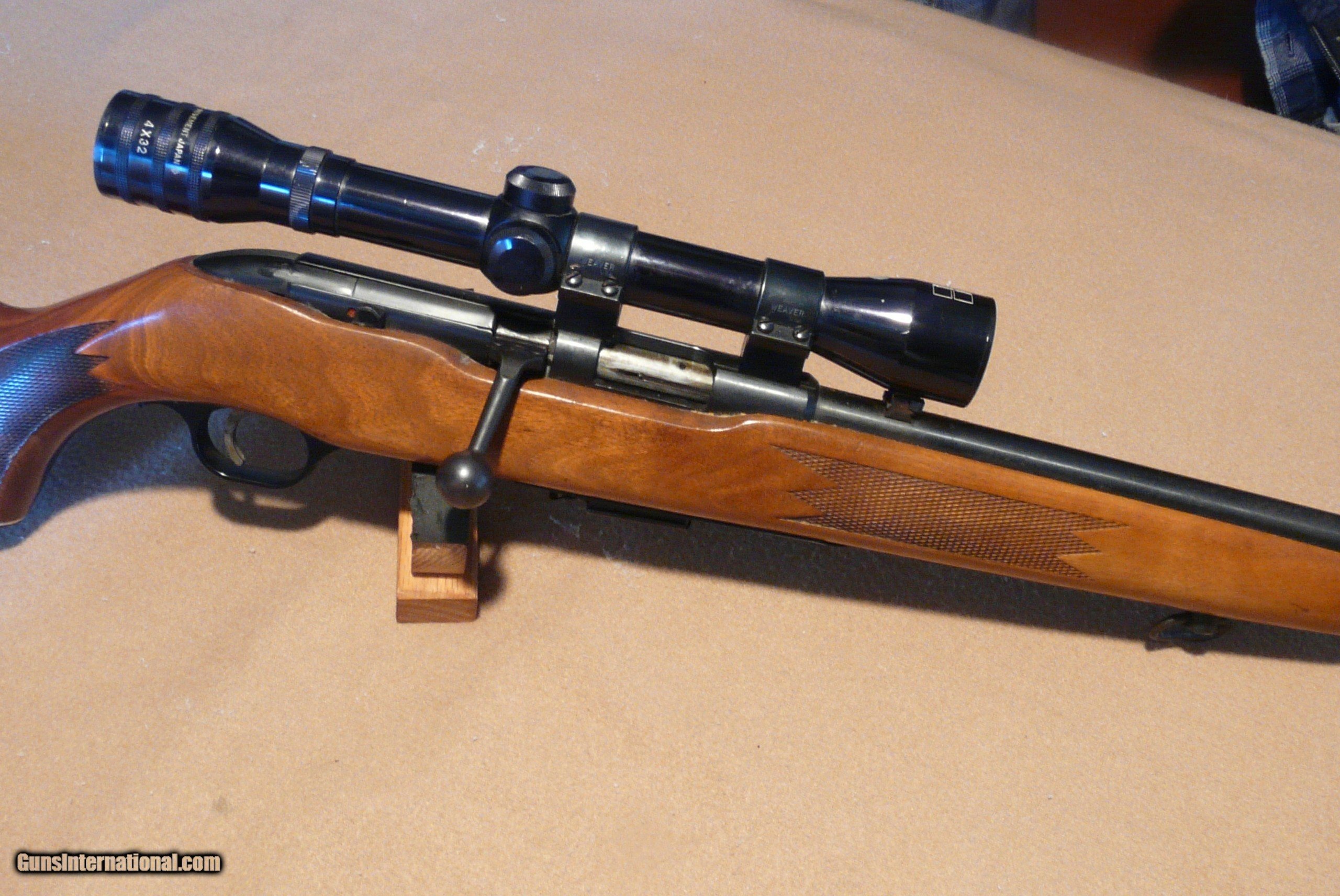 Description: These were made 1960 to 68, in 22 magnum RF, with 24" barrel and open sights, this one has a Kassnar 4X scope MFG in Japan, and still clear as new, w/ duplex crosshairs !! rifle is near new condition with 99% blue and Wood,. with ear perfect checkered wood, with Monte Carlo stock ! 5 shot magazine & factory swivels, these can take Varmints up to and exceeding 150 yds easily! this is 640 KD model, one of the best shooting 22 mags you can buy! SOLD |