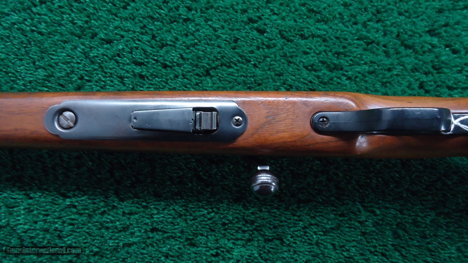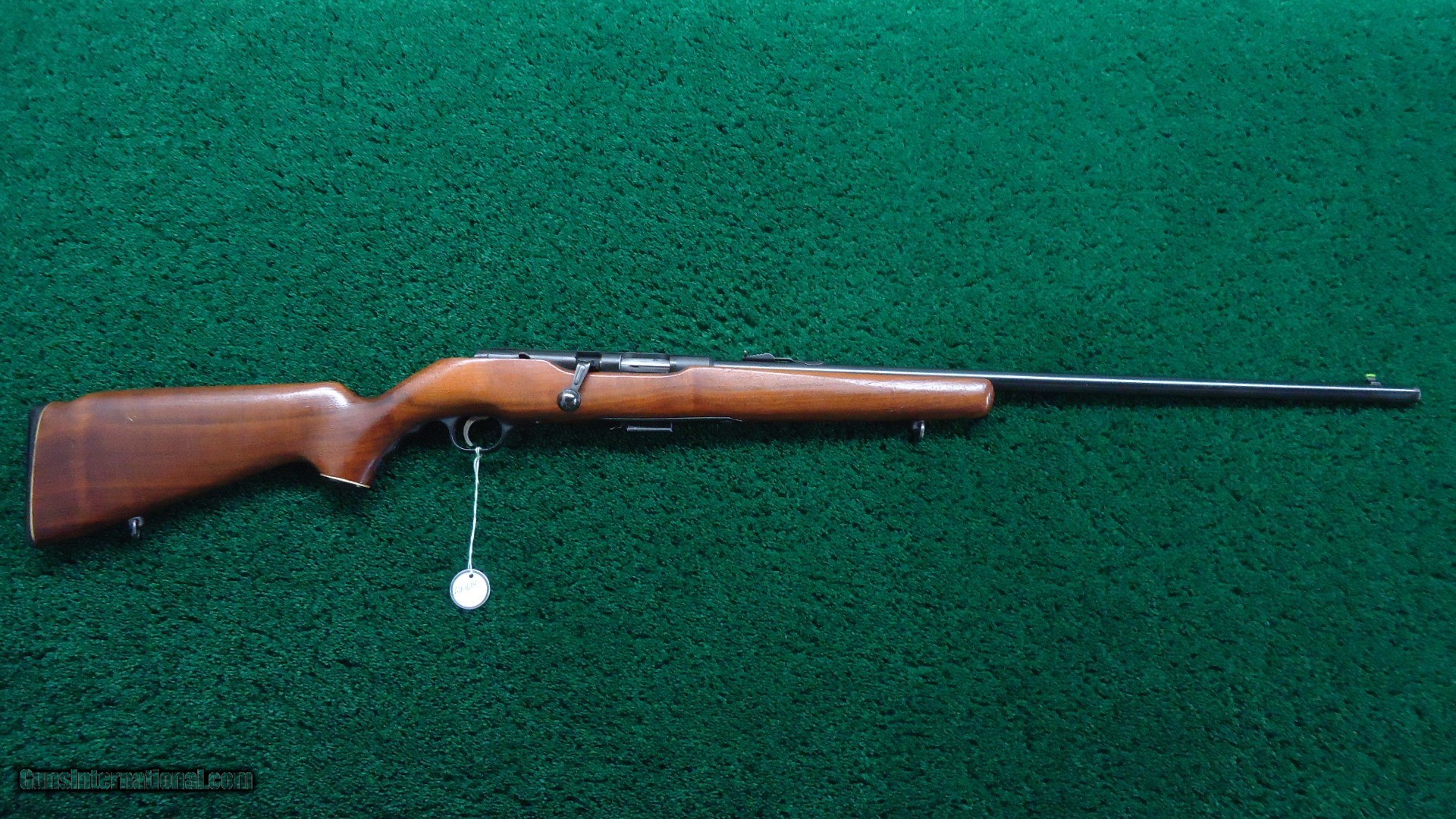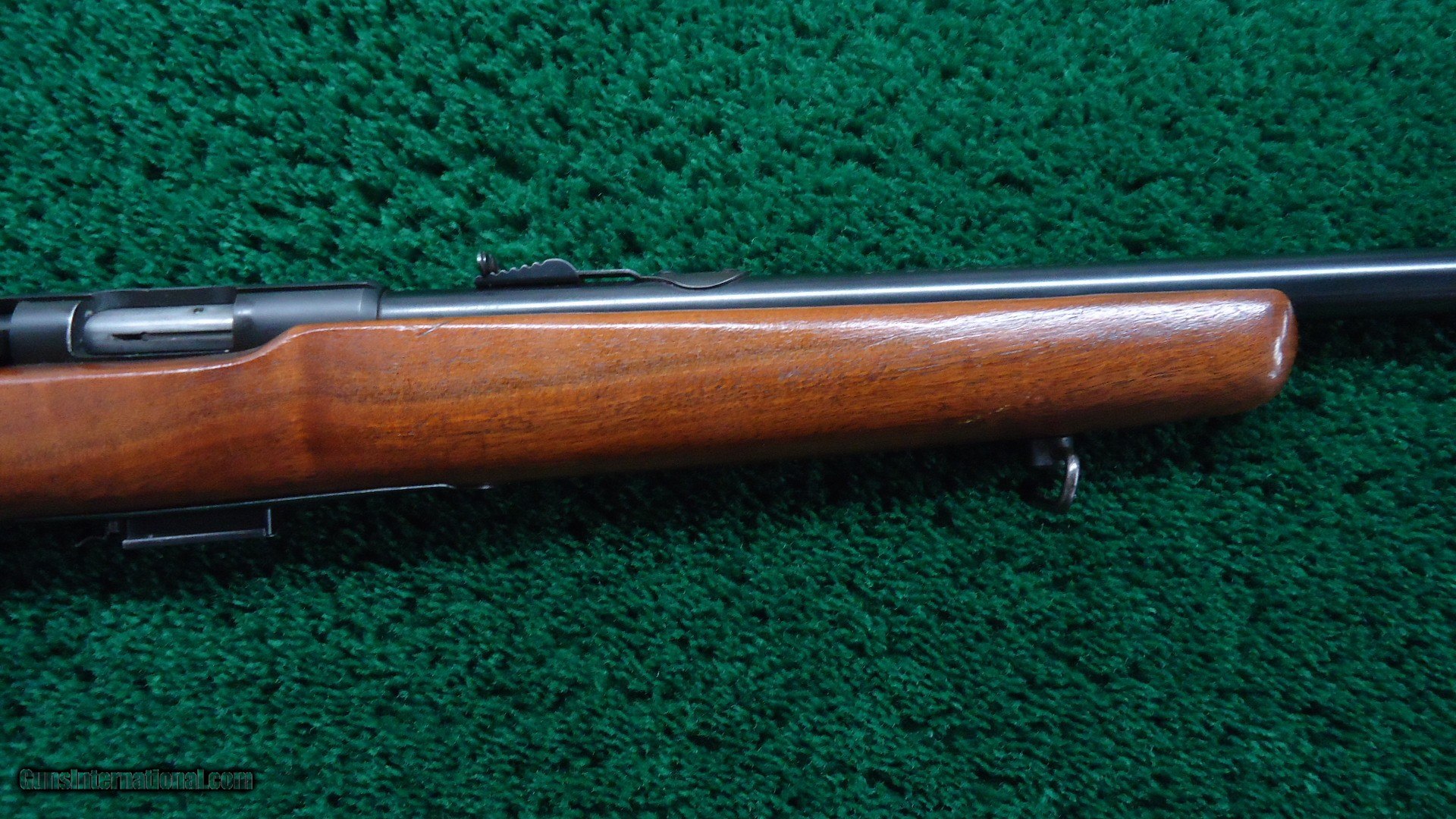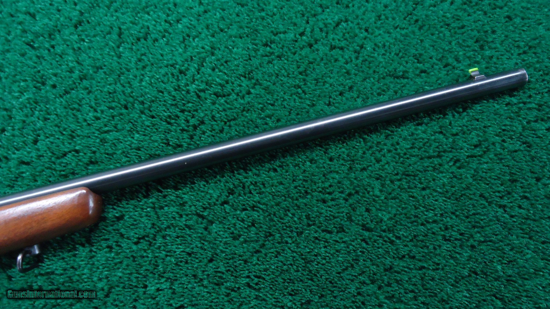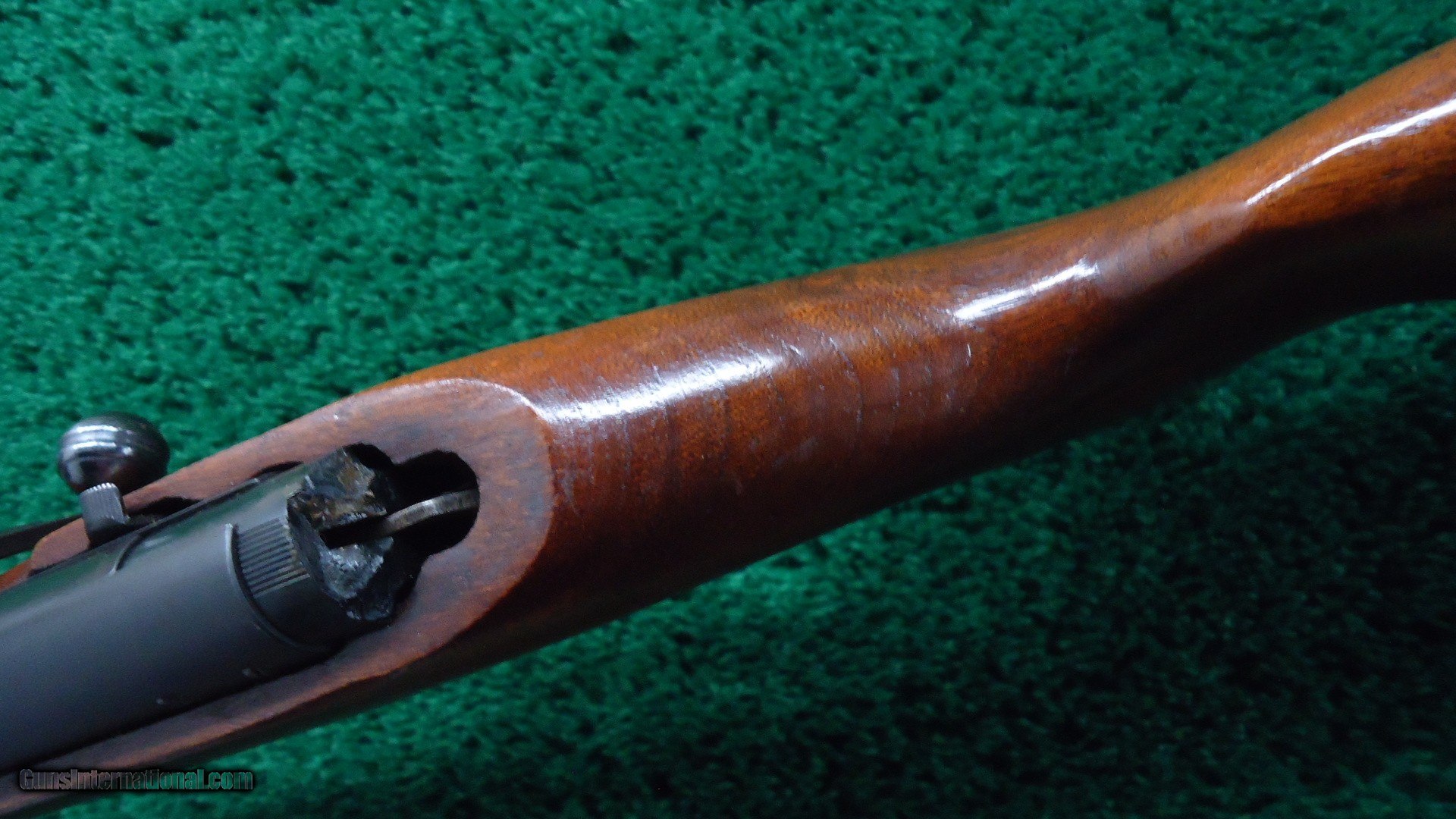 Description: Bolt action rifle features a 24 inch round blued barrel chambered in 22 Magnum WMR caliber with a bright shiny bore. Original adjustable open sights. Monte Carlo walnut pistol grip style stock and forend with raised cheek plate and sling swivels. Walnut stock is in good condition with just a few handling scratches and dings. Hard rubber buttplate and grip cap. 5-shot detachable magazine. Leroy Merz Antique Firearms specializes in antique and vintage Winchesters and other fine American firearms. Since 1965 Mr. Merz has taken part in the world of firearms and has been a contributor to many well known reference books. We have hundreds of additional guns in every price range at our home online. Search for Merz Antiques in google. SOLD Curio/Relic: Yes Rifle Caliber: .22 WMR (.22 Magnum) |