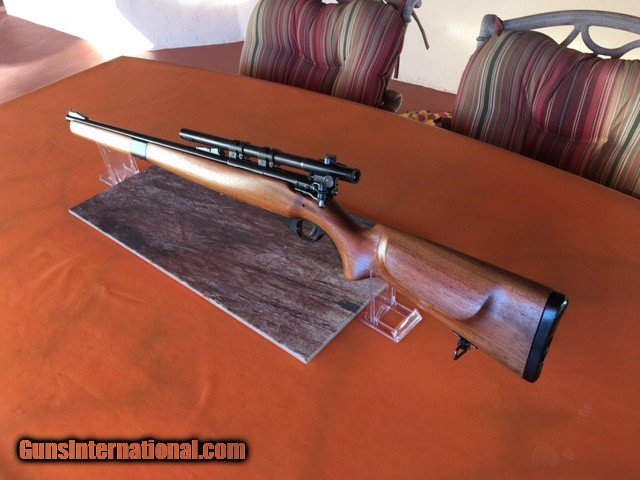 Description: Mossberg Model 151M-B Semi-Auto .22 LR Rifle - Smooth 2 piece Mannlicher type pistol grip stock with cheek plate, hard rubber butt plate and sling swivels. 20 in. barrel . Bore is clean and bright. 15 LR. butt tube fed magazine . Adjustable open style rear sight, hooded 4 aperature front sight and a microclick rear receiver peep sight. Also included is a Mossberg Model M-4 Scope with mgts. and clear lenses. The stock and forend are nearly flawless. This rifle appears to have been used very little and is in pristine condition. Manufactured from 1949 to 1958. A wonderful addition for those Mossberg collectors. SALE PENDING All of our rifles have been cleaned and lubricated. We can ship to C&R or to your FFL dealer a flat rate of $50.00 to the lower 48 states . SOLD Curio/Relic: Yes Manufacturer: Mossberg Model: 151M-B Serial Number: NSN Barrel Length: 20 in. Condition: Excellent Metal Condition: Very Good Wood Condition: Very Good Bore Condition: Clean / Bright |