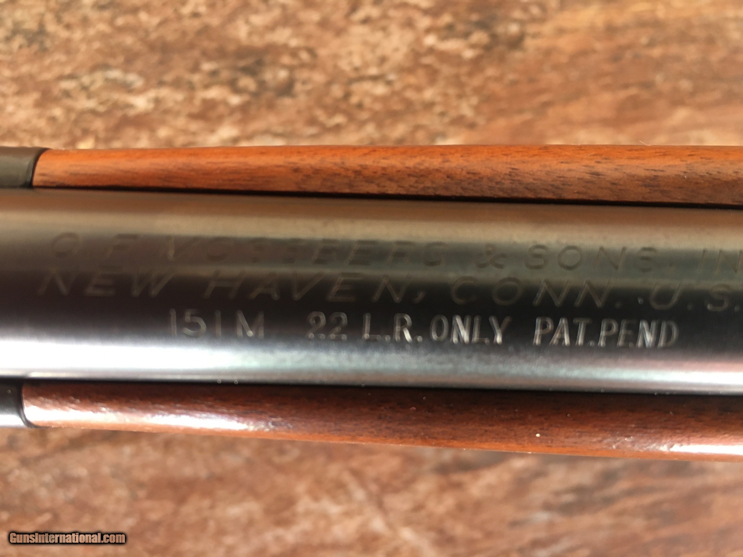 Description: Mossberg Model 151 M - Semi Auto .22 LR Rifle - Two piece Mannlicher style stock with pistol gripand cheek plate, butt plate and sling swivels. Micro -Click receiver peep sight, open adj. rear and a hooded front sight. 20 in. long barrel with a 15 LR round tubular magazine. Bore is clean and bright. Barrel and receiver are retaining approx. 95% bluing. Stock and forend are in excellent condition with minimal handling marks. The overall condition is exceptional . Mossberg promoted the 151M as a ( no tool required field take down model.) Rifle was acquired from a collectors estate and was professionally maintained. This one is definitely collector quality. Includes soft sleeve . Manufactured from 1946 to 1958. SALE PENDING. We can ship to C&R or to your FFL dealer at a flat rate of $50.00 S&I to lower 48 states. All of our rifles have been cleaned and lubricated. SOLD Curio/Relic: Yes Rifle Caliber: .22 Long Rifle Manufacturer: Mossberg Model: 151 M Serial Number: NSN Barrel Length: 20 in. lg Condition: Excellent Metal Condition: Excellent Wood Condition: Excellent Bore Condition: Clean/ Bright Stock: Mannlicher Weight: 6 lbs. Sights: 3 Extras: Soft Sleeve |
