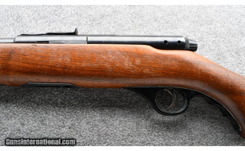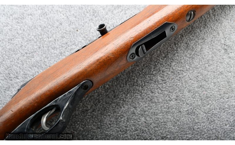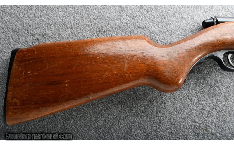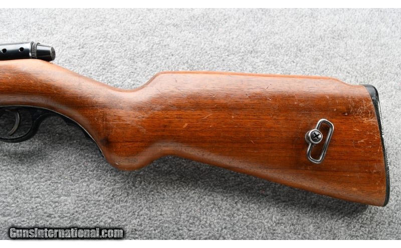 Description: Semi-automatic .22 caliber rifle with Monte Carlo style stock and folding forearm made from the late 1940s to about1952, the earlier versions had the wood folding forearm while the later version had a black plastic forearm .22 Long Rifle SOLD Chambers: .22 Long Rifle Metal Condition: "Good, light edge wear Wood Condition: "Good, scattered scratches and marks Bore Condition: "Good, sharp and bright Barrels: 18 Triggers: Factory Stock Dimensions: 13" LOP Fore End: Plain walnut with folding fore grip and sling swivel Butt Pad: Composite Weight: 4 LB 14 OZ Sights: "Protected post front, sporting leaf rear & receiver is grooved for tip-off mounts Item Location: Grand Junction, CO |