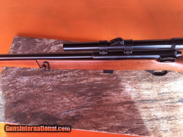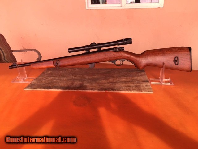 Description: Mossberg Model 152 Carbine - Semi - Auto .22 LR Rifle - Smooth Monte Carlo style pistol grip with sling swivel. 7 Round clip style magazine, 18 in. barrel, military type front sight and a period correct Weaver V22 Scope with clear lenses. Bore is clean and bright. Approx. 90% bluing retained. Wood forend pulls down to form hand grip. Wgt.5.5 lbs. Stock, barrel and receiver are in exceptional condition for the age of this rifle. Manufactured from 1948 to 1957. Nice vintage addition for Mossberg collectors. SALE PENDING All of our rifles have been cleaned and lubricated. We will ship to C&R holders or your FFL at extra charge. SOLD Curio/Relic: Yes Rifle Caliber: .22 Long Rifle Manufacturer: Mossberg Model: 152 Serial Number: NSN Barrel Length: 18in. Condition: Very Good Metal Condition: Very Good Wood Condition: Very Good Bore Condition: clean/ bright Weight: 5.5 Sights: Scope |