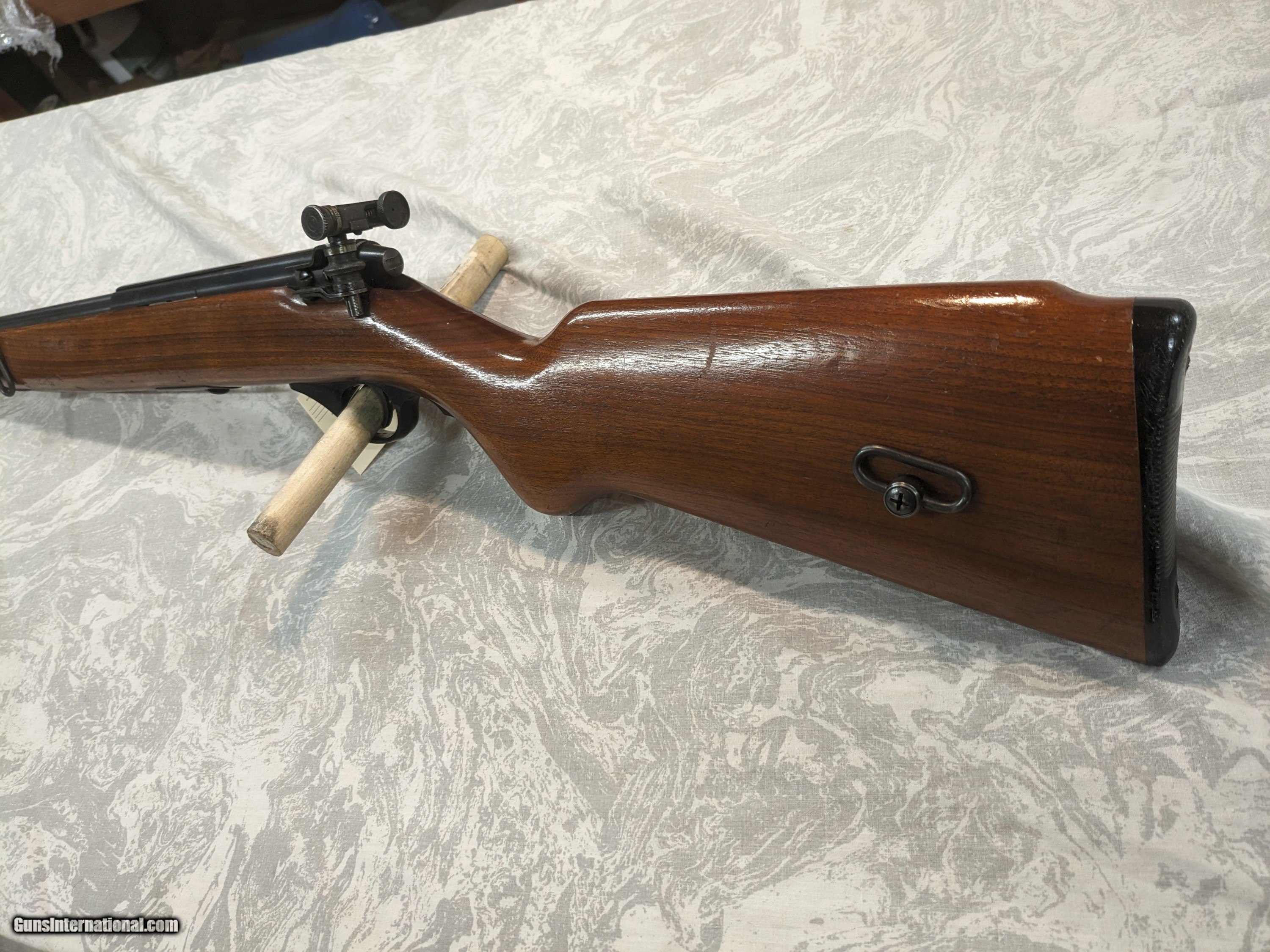 Description: SOLD Mossberg Model 152 Semi Auto 22Lr,very good conditio, 16 inch barrel,folding front stock,peep sight that rotates away,comes with rwo 10 shot magazines. SOLD |
