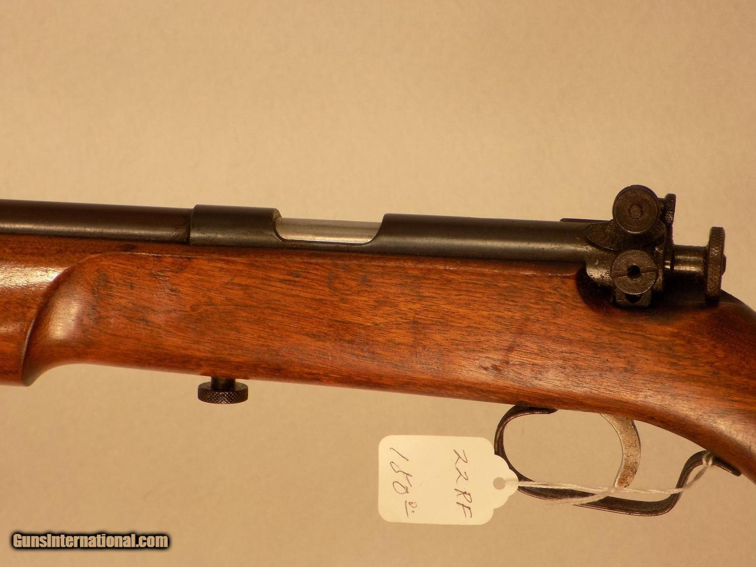 Description: #654 MOSSBERG MODEL 34 BA RIFLE, 22 RF, 24” bbl., 97% blue, adj. receiver peep sight, nicely figured wood in VG condition, exc. bore. $145 FFL REQUIRED SOLD Curio/Relic: Yes |