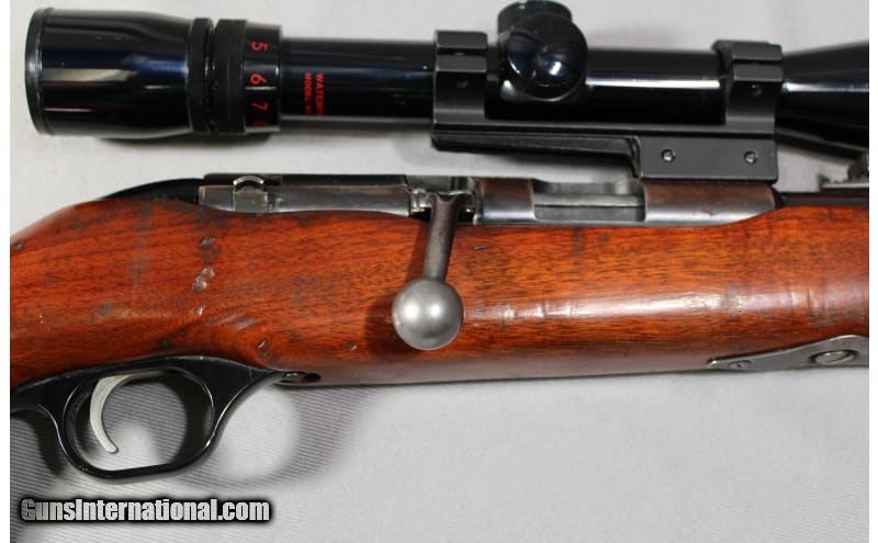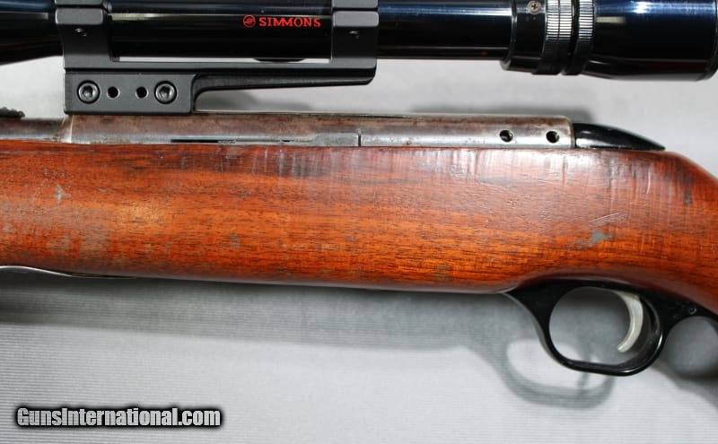 Description: Mossberg Model 346KA with Simmons scope. 24" AC-KRO-GRUV barrel. Bolt action tube feed rimfire rifle. Barrel has lost it's finish but no pitting. Wood stock has some dings and scratches. .22 Short/Long/Long Rifle SOLD Metal Condition: good Wood Condition: good Bore Condition: bright Barrels: 24" AC-KRO-GRUV barrel Stock Dimensions: 13 Fore End: smooth wood Butt Pad: Mossberg plastic Sights: "factory sights, Simmons Deerfield 3-9x32 scope Item Location: Council Bluffs, IA |