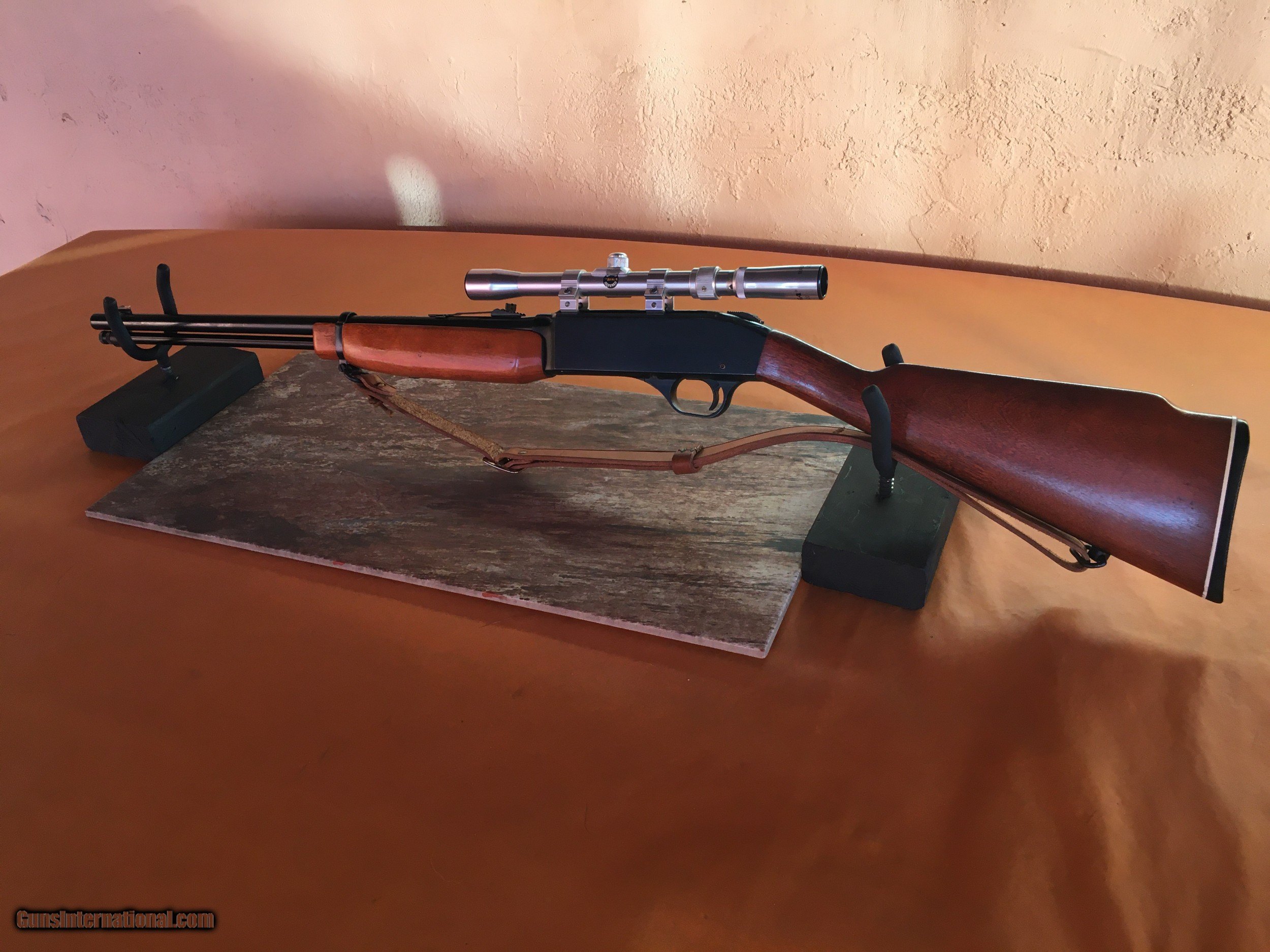 Description: Mossberg Model 432 Western Style Semi -Auto .22 Rifle - Smooth straight pistol grip style stock and forarm with barrel band and sling swivels. Tubular magazine with 15 LR capacity. AC - KRO - GRUV - 24 in long barrel with grooved receiver . Bore is clean and bright. Barrel and receiver are retaining approx. 85% bluing. Butt plate is in great condition. Open adj. rear sight and a front bead sight. Includes BSA R3-7X20 - Scope and scope rings. Good condition with clear lens. Like new Uncle Mikes adj. leather carry strap . Stock and forarm are in very good condition with minor handling marks. This rifle is in very good overall condition and is rare in the fact it was only manufactured from 1970 -1971. Great rifle to add to your Mossberg collection. SALE PENDING . All of our rifles have been cleaned and lubricated . We can ship to C&R or your FFL dealer at a flat rate of $50.00 to lower 48states. SOLD Curio/Relic: Yes Rifle Caliber: .22 Long Rifle Manufacturer: Mossberg Model: 432 Serial Number: C81824 Barrel Length: 24 in. Condition: Ver Good Metal Condition: Very Good Wood Condition: Very Good Bore Condition: Blean / Bright Butt Pad: Excellent Weight: 5 lbs. Sights: Open / Bead Extras: Leather carry strap |