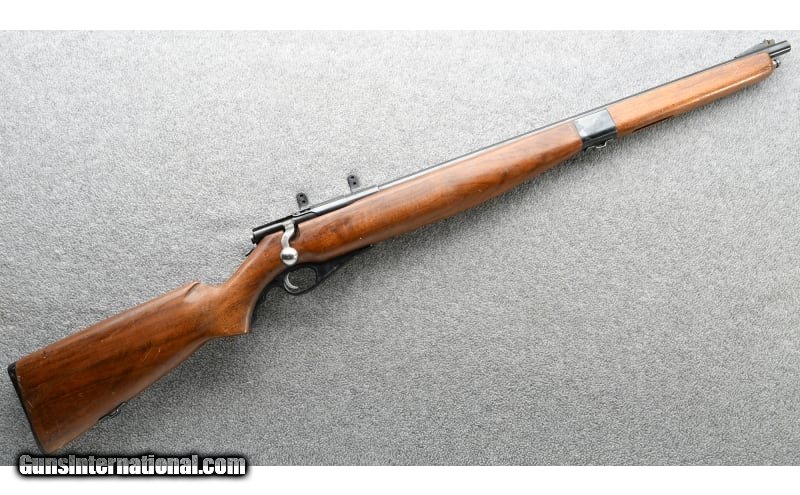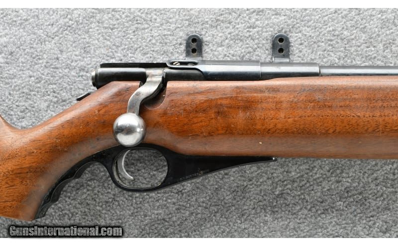 Description: Made from 1940 to 1945 and mostly used as a military training rifle. This one shows no military markings .22 Short/Long/Long Rifle SOLD Chambers: ".22 Short, Long & Long Rifle in a tubular magazine bolt action rifle Metal Condition: "Good, has a few extra tapped holes on the barrel and a side mount for a scope. Shows light finish wear Wood Condition: "Good, has a few field marks but, nothing serious Bore Condition: Bright and Crisp Barrels: 23 Triggers: Factory Stock Dimensions: 13 1/2" LOP Fore End: Mannlicher style walnut stock Butt Pad: Mossberg composite Weight: 6 lbs. 11 oz. Sights: "Ramped blade and bead front, missing the hood Item Location: Grand Junction, CO |