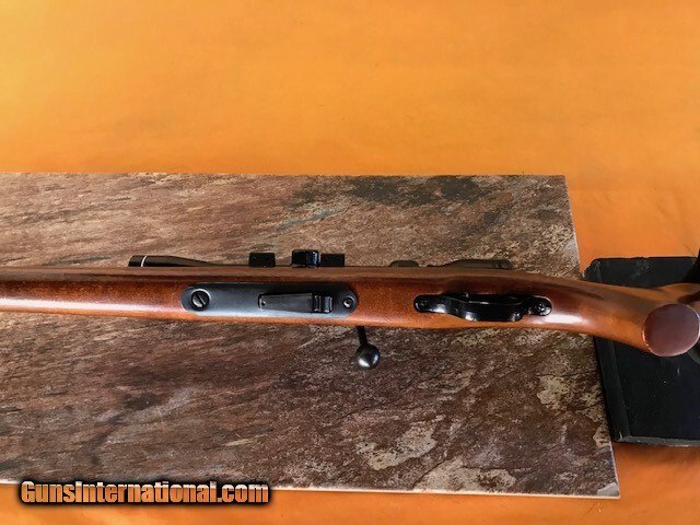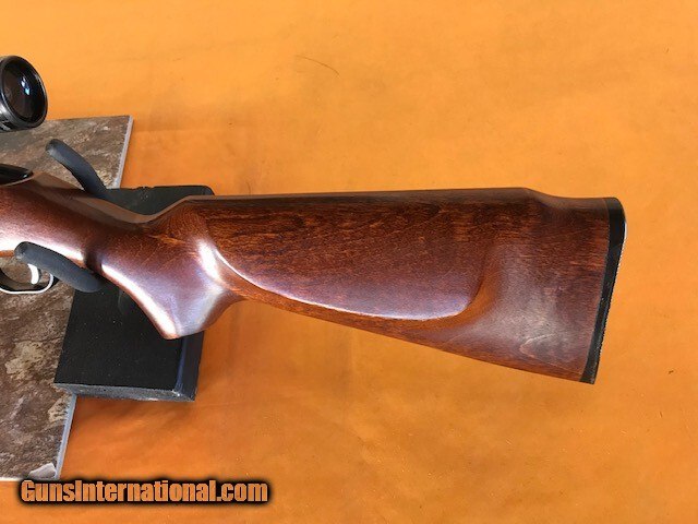 Description: Mossberg Model 640 KD - Chuckster - .22 WME - Bolt Action Rifle - Smooth one piece Monte Carlo style pistol grip stock with raised cheek piece and butt plate. 24 In. long barrel with adj. open rear sight and a raised front bead sight . Detachable 5 round clip magazine. Bore is clean and bright with pronounced rifling. Barrel and receiver are retaining 95% original bluing. Receiver grooved for scope. includes a Tasco 3x9x32 scope in good condition with clear lens and new see - thru scope rings. Stock and forend are in excellent condition with minimal handling marks. Includes a new soft sleeve. Rifle was recently rated at 96% - 98% by estate firearms appraiser. Manufactured from 1959 to 1984. This one was manufactured in 1975. Rifle has seen very little use. Known for it's accuracy and durability. Collector quality. We can ship to your FFL dealer at a flat rate of $50.00 S&I to lower 48 states. All of our rifles have been clenaed and lubricated Rifle Caliber: .22 WMR (.22 Magnum) Manufacturer: Mossberg Model: 640 KD Serial Number: 961703 Barrel Length: 24 In. Long Condition: Excellent Metal Condition: Excellent Wood Condition: Excellent Bore Condition: Clean / Bright Action: Bolt Butt Pad: Excellent Weight: 6.25 Lbs. Sights: Open / Bead Manufacture Date: 1975 Case: New Soft Sleeve Optic: Tasco - 3x9x32 Price: $745.00 Shipping: $50.00 Buy Now Contact Seller |