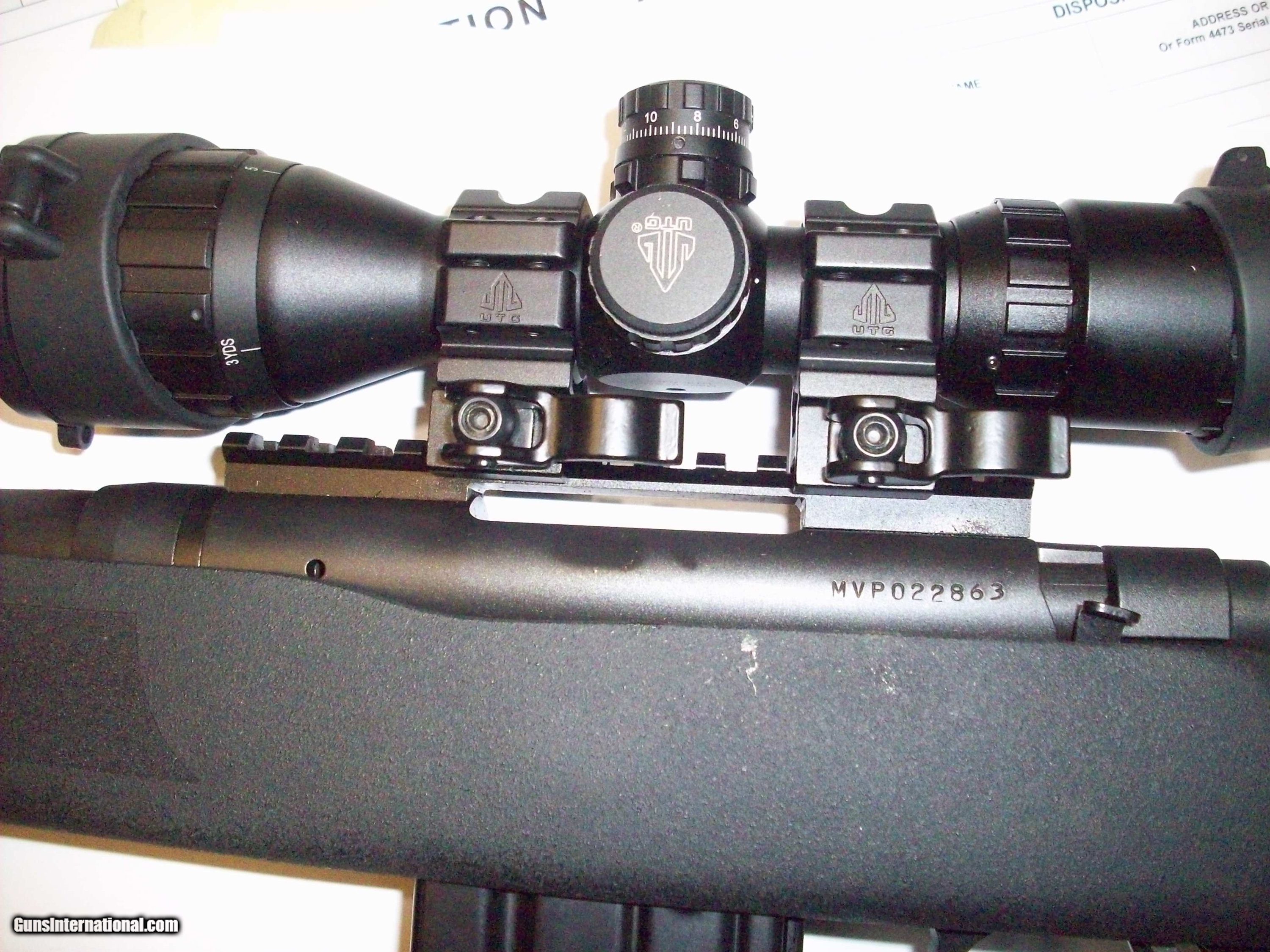 Description: This 5.56 Cal. rifle is a Mossberg MVP. Scope is a UTG Hunter 3 X 9 X 40 with UTG QUICK RELEASE mounts. Uses AR mags. Condition AS NEW 100%. $695.00. rmgrigoplettoyahoo 732 280 8750. SOLD |