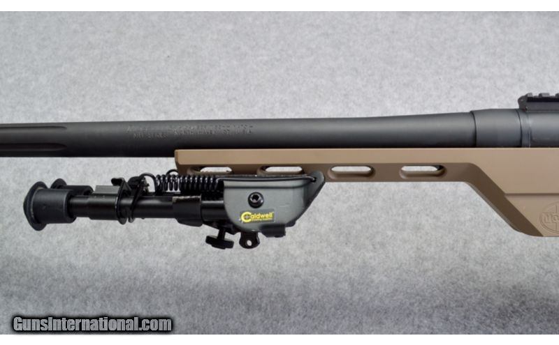 Description: SOLD Caliber Info: 7.62x51mm NATO Metal Condition: Excellent with little signs of use. A few light handling marks present. Bore Condition: Excellent, bright and sharp Barrels: 19-Inch medium fluted barrel with muzzle break. Stock: Adjustable stock Stock Dimensions: Adjustable Fore End: Aluminum MDT LSS Light Chassis ¿ Tan with CALDWELL bi-pod attached Butt Pad: Black rubber butt pad Weight: 8 Lbs. 8 Oz. Sights: Scope rail installed Extras: One magazine included. Item Location: Farmington, UT |