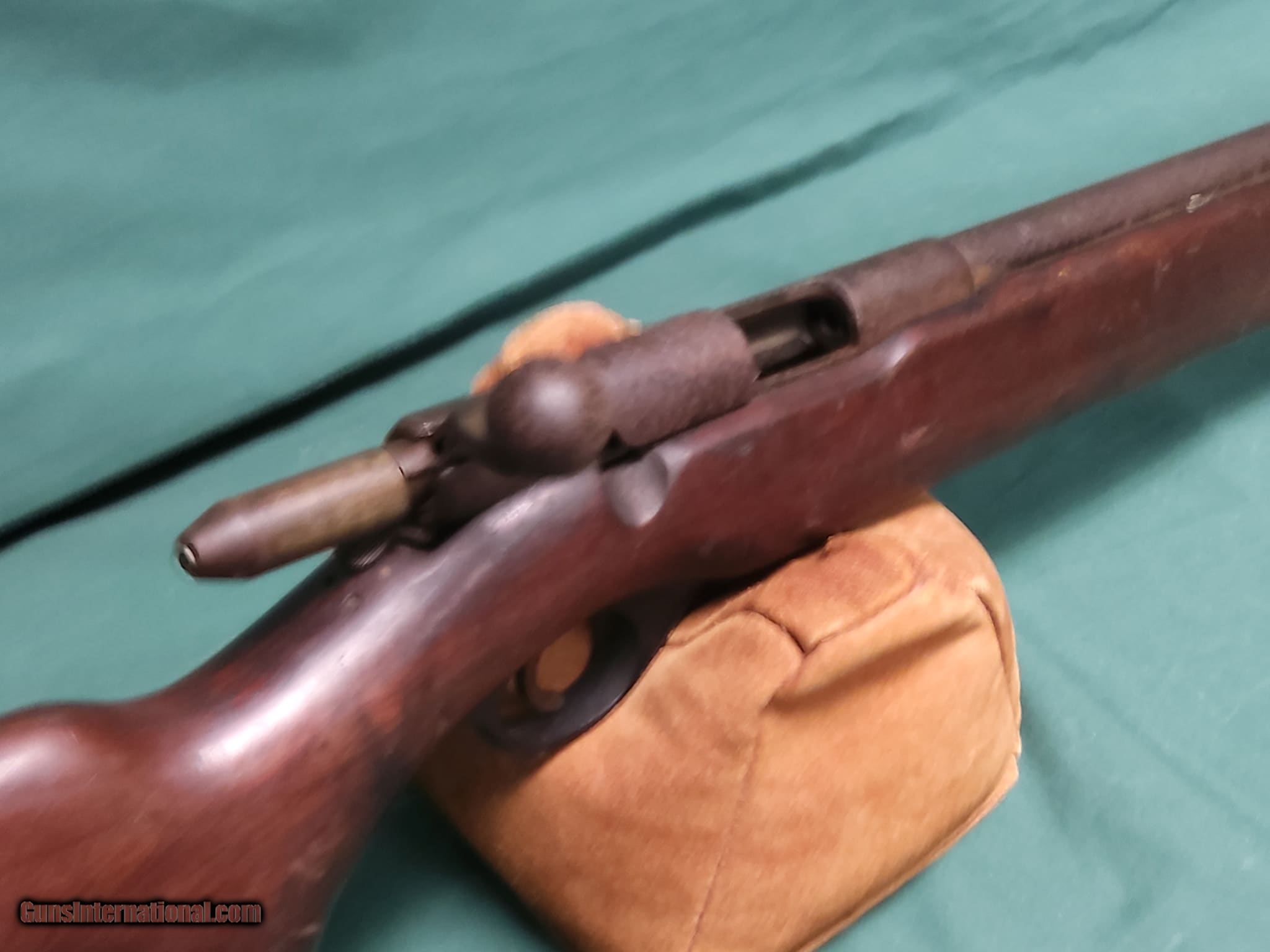 Description: Guns Listing ID: 617062 Mossberg 44 US, fair condition, bolt is functioning, barrel has lots of rust and pitting, bottom of the stock has cracks in wood. 22 LR, 7 round capacity, 28\" barrel length. Mossberg 44 US were used as training rifles in WWII. SOLD Manufacturer: MOSSBERG, O.F. & SONS, INC. Model: 44 US Caliber Info: 22 LR Condition: Used - Non-Certified Barrels: 28 BARREL Finish: WOOD |