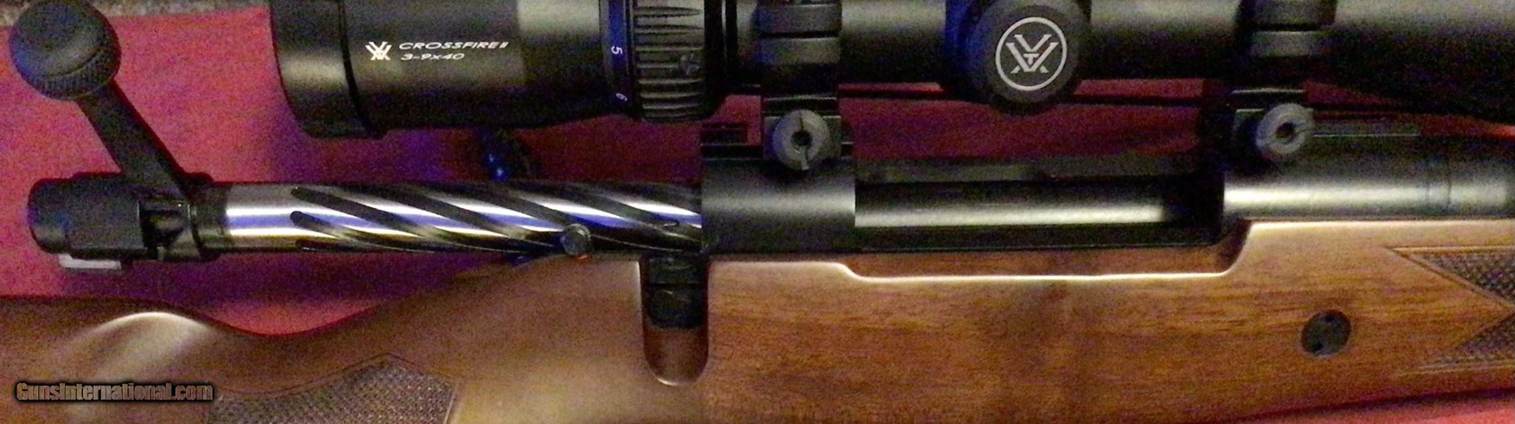 Description: **NIB** Mossberg Patriot 30-06 W/ Vortex 3x9x40Crossfire II Scope mounted. Walnut Monte Carlo Stock Bolt Actiom Matte Blue 22 inch fluted BBl. Drop Box Mag and LBA. $699 plus $40 to ship $739 Total SOLD |