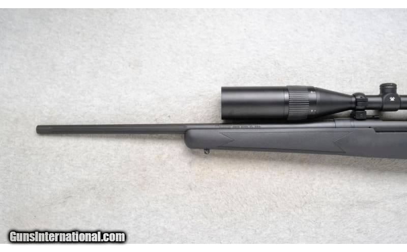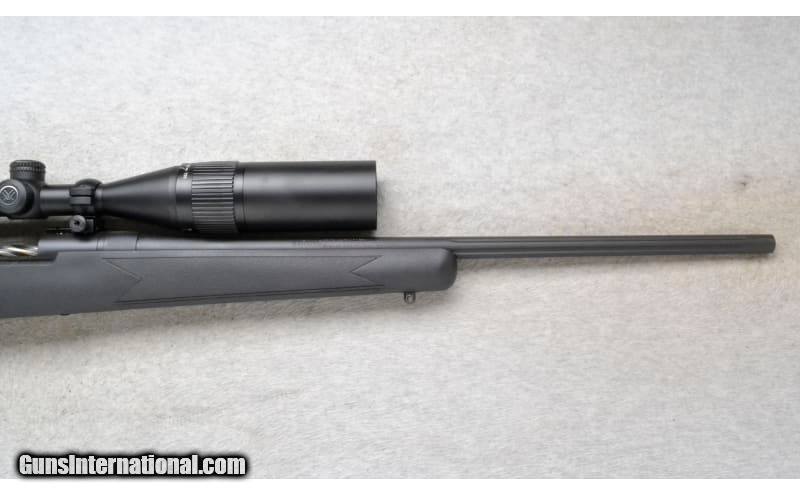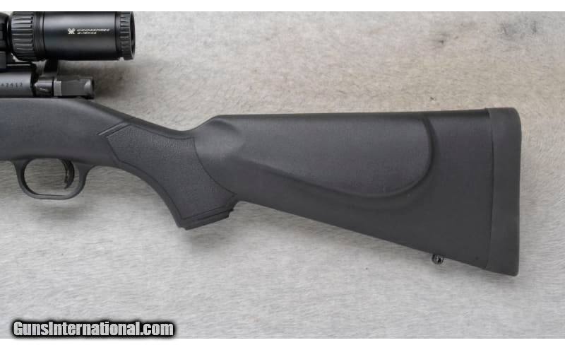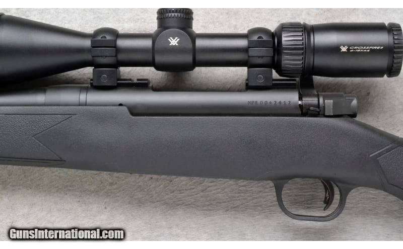 Description: This Mossberg Model Patriot is a right hand bolt action rifle in .308 Win. Cal. It has a 22 inch fluted barrel. It is outfitted with a Vortex Crossfire II 6-18x44 Scope. The butt stock is a textured grip black polymer pistol grip with a raised cheekpiece and black cap. The forearm is a textured grip black polymer. It has a marksman trigger, fluted bolt and checkered bolt handle. .308 Winchester SOLD Chambers: Detachable Magazine. Metal Condition: Excellent. A few very minor handling marks. Bore Condition: Excellent. Barrels: 22 inch. Triggers: Marksman Trigger. Stock Dimensions: LOP 14 inches. Fore End: Textured grip black polymer. Butt Pad: Mossberg black rubber recoil pad. Weight: 8 lb. 2 oz. Sights: Vortex Crossfire II 6-18x44 scope with a shadow tube. Item Location: Richfield, WI |