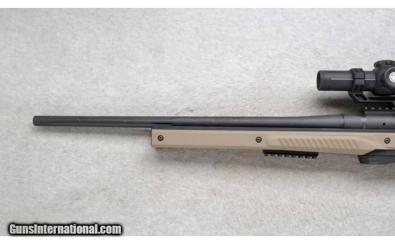 Description: This Mossberg Model Patriot is a right hand bolt action rifle in 6.5 Creedmoor Cal. It has a 20 inch half fluted barrel. It is outfitted with a Sig Sauer Tango-MSR 1-6x24 Scope. The butt stock and forearm are ORYX. It has a Marksman Trigger, spiral fluted bolt and checkered bolt handle. 6.5 Creedmoor SOLD Chambers: Detachable Magazine. Metal Condition: Very Good. A few very minor use marks. Bore Condition: Excellent. Barrels: 20 inch half fluted barrel. Triggers: Marksman Trigger. Stock Dimensions: LOP 13.75 inches. Fore End: ORYX Butt Pad: Black Rubber. Weight: 10 lb. 2 oz. Sights: Sig Sauer Tango-MSR 1-6x24 Scope. Item Location: Richfield, WI |
