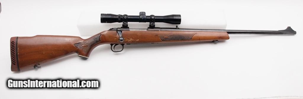 Description: Mossberg-Western Auto Revelation 220A .308, 22" bbl, bright shiny bore, good rifling, Tasco 4X32 rifle scope, stock has been cut down and a recoil pad added, LOP 14 1/2", stock has dings consistent with field use, and sling attachment points. Add 3% for Credit Card Shipping $30.00 SOLD |