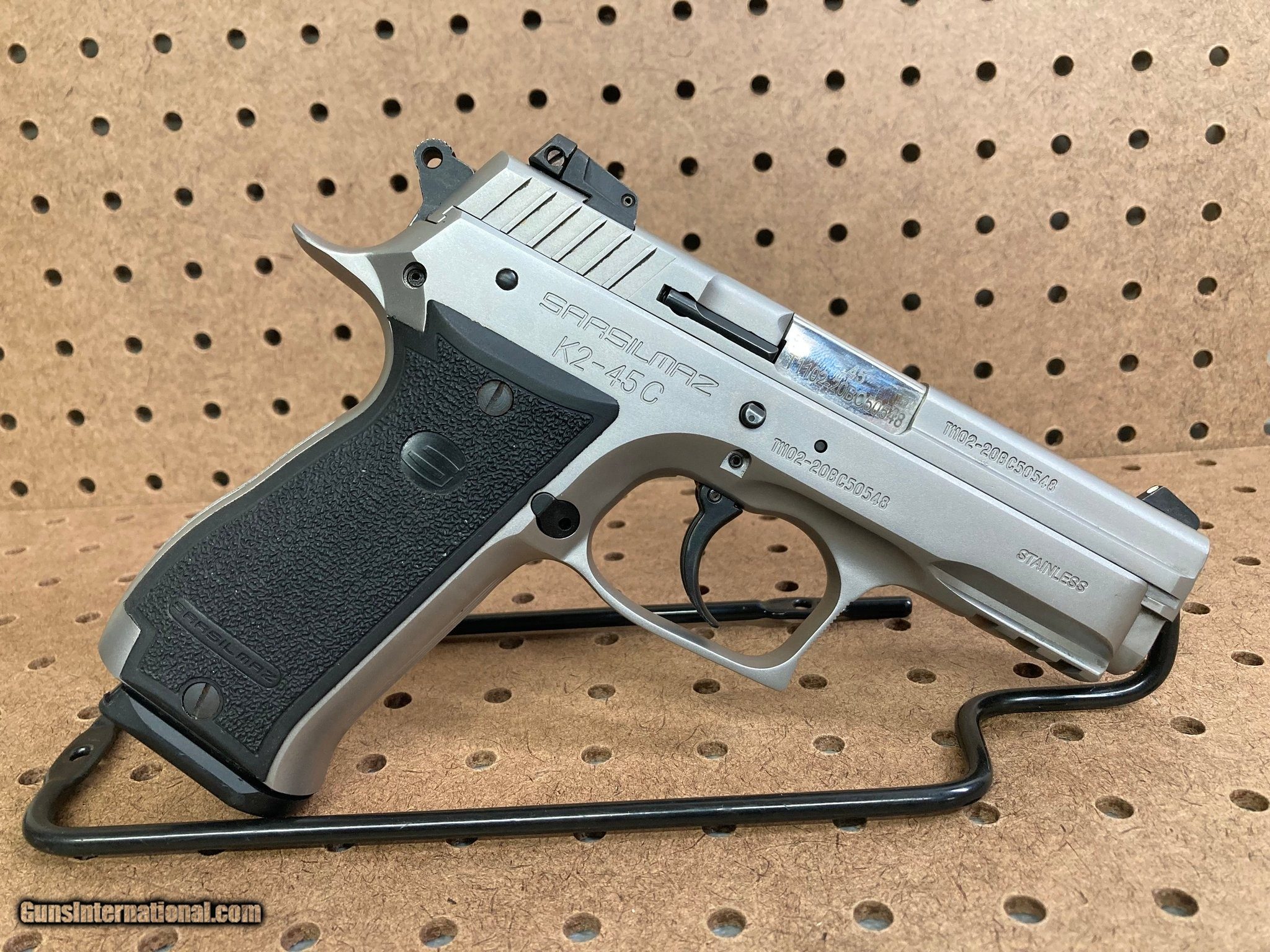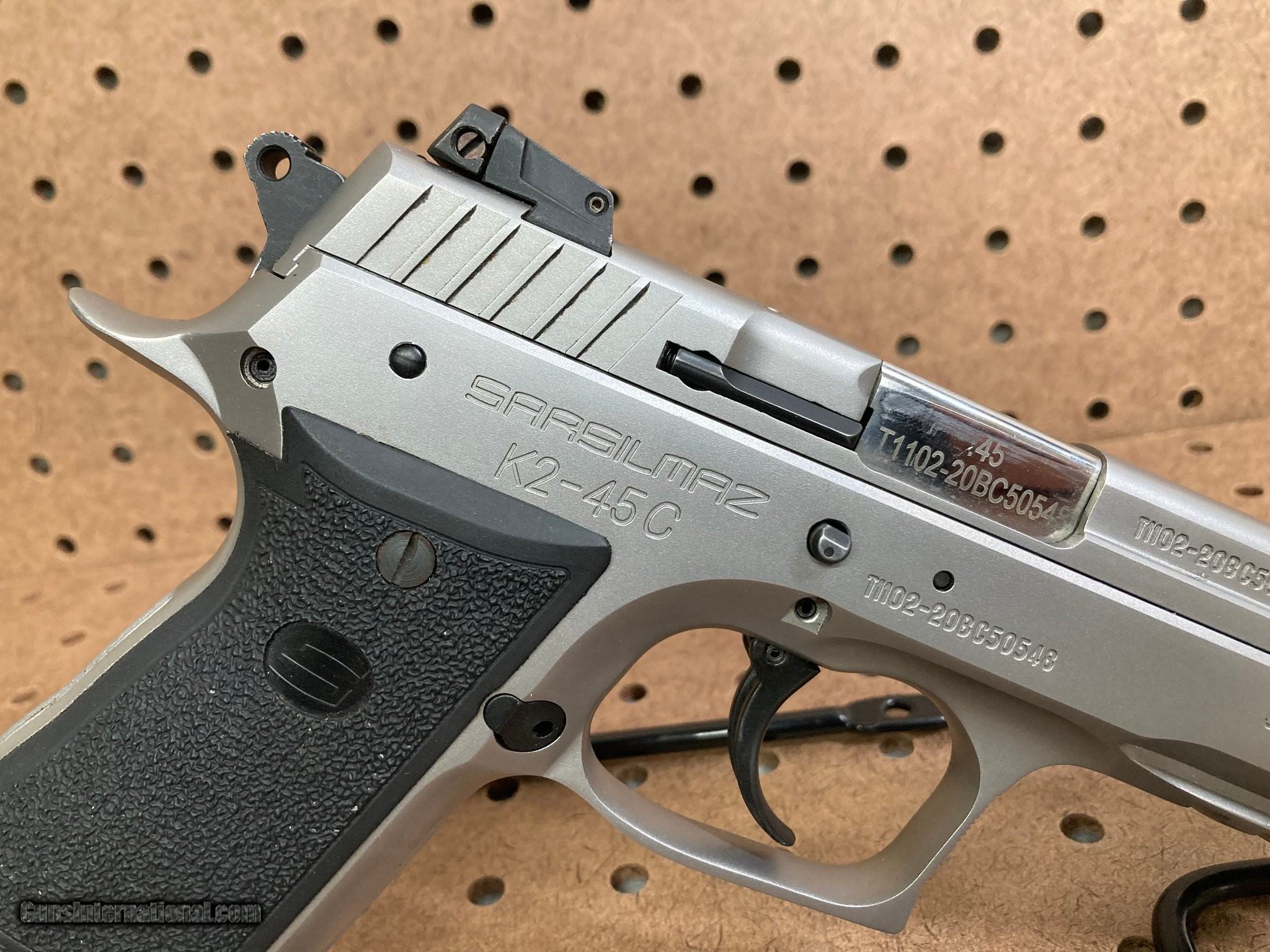 Description: Guns Listing ID: 606145 Comes with 1 14rd magazine. Manufacturer: SAR FIREARMS Model: K2 45C Caliber Info: .45 ACP Condition: Used - Non-Certified Barrels: 4" BARREL Action: SEMI AUTOMATIC Finish: matte stainless Price: $449.99 Contact Seller |