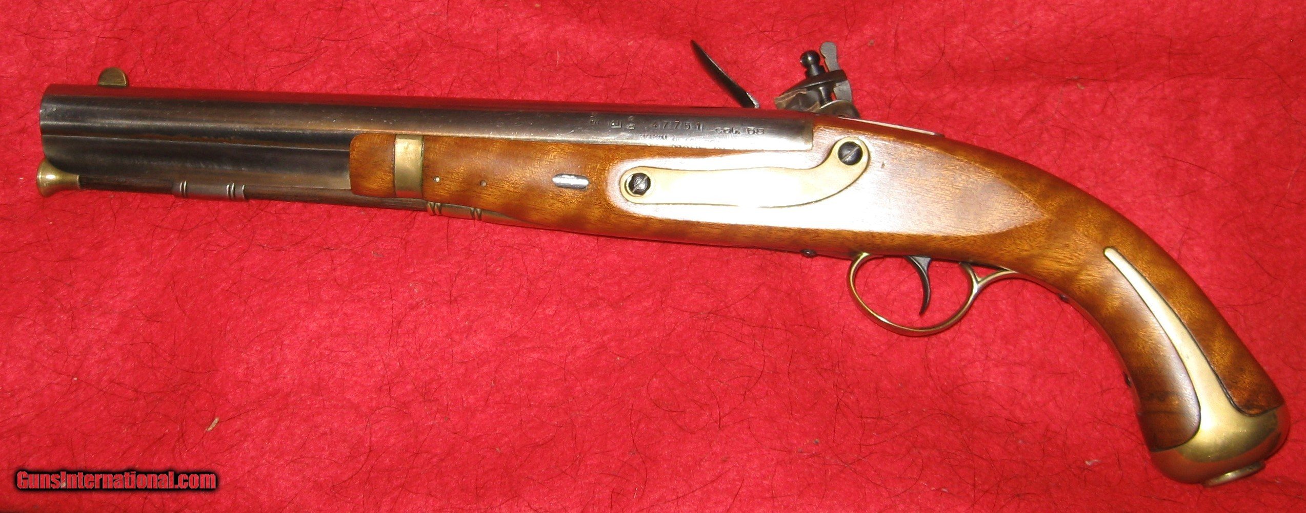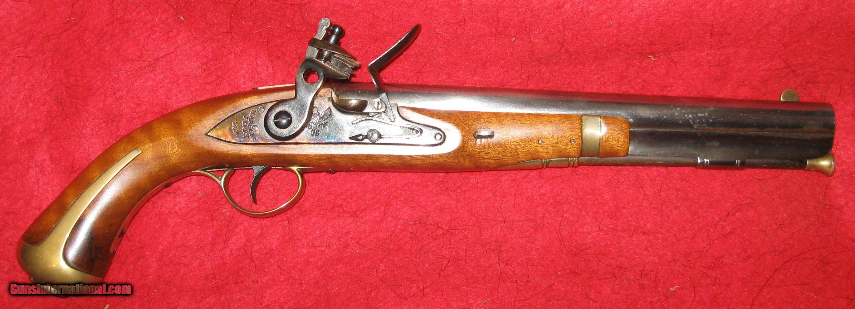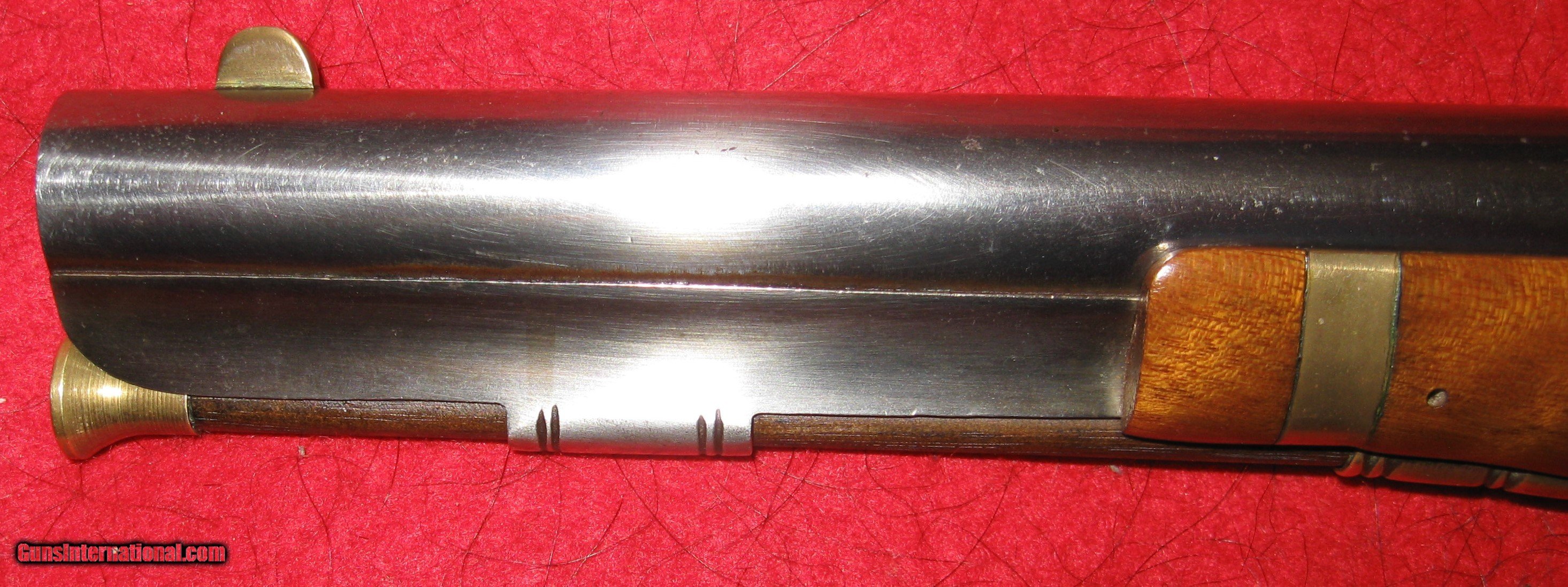 Description: THIS PEDERSOLI IS A REPLICA OF THE 1807 HARPERS FERRY 58 CALIBER FLINTLOCK. IT IS SERIAL #47751. IT IS IN EXCELLENT CONDITION AND APPEARS TO BE UNFIRED EXCEPT A FEW STRIKES ON THE FRIZZEN FROM DRY FIRING. THE FLINT IS TOO SMALL SO NEEDS TO BE REPLACED, THE RIFLED BORE IS IN EXCELLENT CONDITION. THE WOOD HAS A FEW SMALL DINGS (SEE PICTURES). THE BRASS HARDWARE IS BEGINNING TO SHOW SOME PATINA FROM AGING. PROOF OF 21 YEARS OF AGE REQUIRED FOR PURCHASE. SHIPPING IS $29 USPS PRIORITY DIRECT. Handgun Caliber: .58 Manufacturer: PEDERSOLI Model: 1807 HARPERS FERRY 58 CAL FLINTLOCK Serial Number: 47751 Barrel Length: 10 Bore Info: RIFLED Condition: EXCELLENT Metal Condition: EXCELLENT Wood Condition: VERY GOOD A FEW SMALL DINGS - SEE PICTURES Bore Condition: EXCELLENT Barrel Type: ROUND Action: FLINTLOCK Triggers: SINGLE Finish: WHITE Sights: FIXED FRONT NO REAR Price: $795.00 Shipping: $29.00 Buy Now Contact Seller |