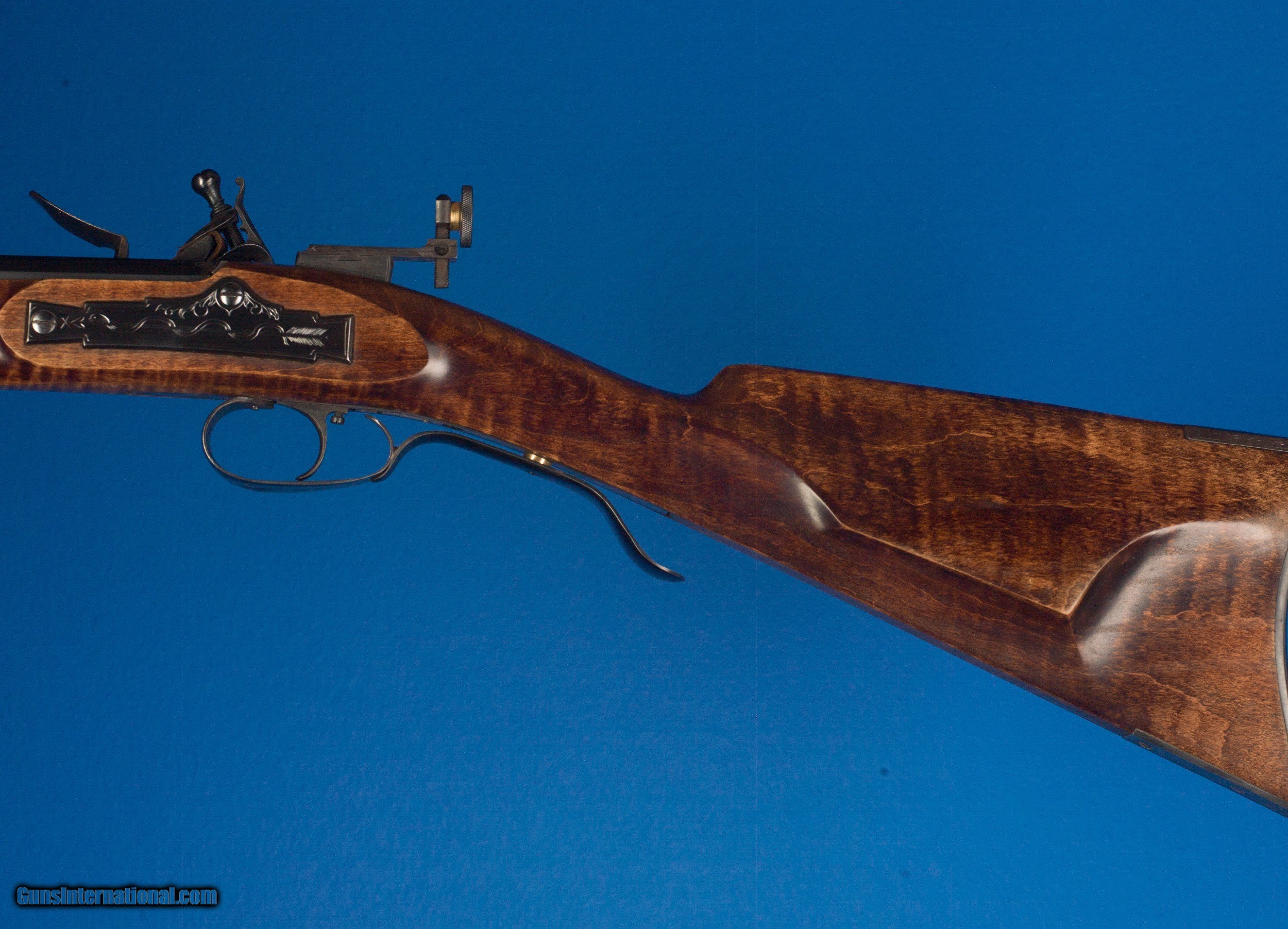 Description: This is a nice .45 cal. full stock flintlock target rifle in the Carolina style with iron hardware. It has hand made adjustable (windage and elevation) peep sights with a globe front sight. All the hardware is hand built including the double action single set triggers. It has a 40", .45 cal. barrel, curly maple stock, all metal is rust blued and weighs about 9 lb. The rifle was engraved by C. R. "Ray" Taylor in the appropriate period style. Due to rising cost of building these type of rifles, the price will increase in 2021. Any questions about the rifle, please contact, I will be glad to answer your questions SOLD Rifle Caliber: .45 Manufacturer: Don Keller, Gunsmith Model: Carolina Style Flintlock Caliber Info: .45 Condition: excellent Metal Condition: excellent Wood Condition: excellent Bore Condition: excellent Barrel Type: Octagonal Action: Flintlock Triggers: Double action, single set LOP: 13.75 Weight: 9 lb. Sights: Rear Peep, Front globe Engraving: C. R. Taylor |