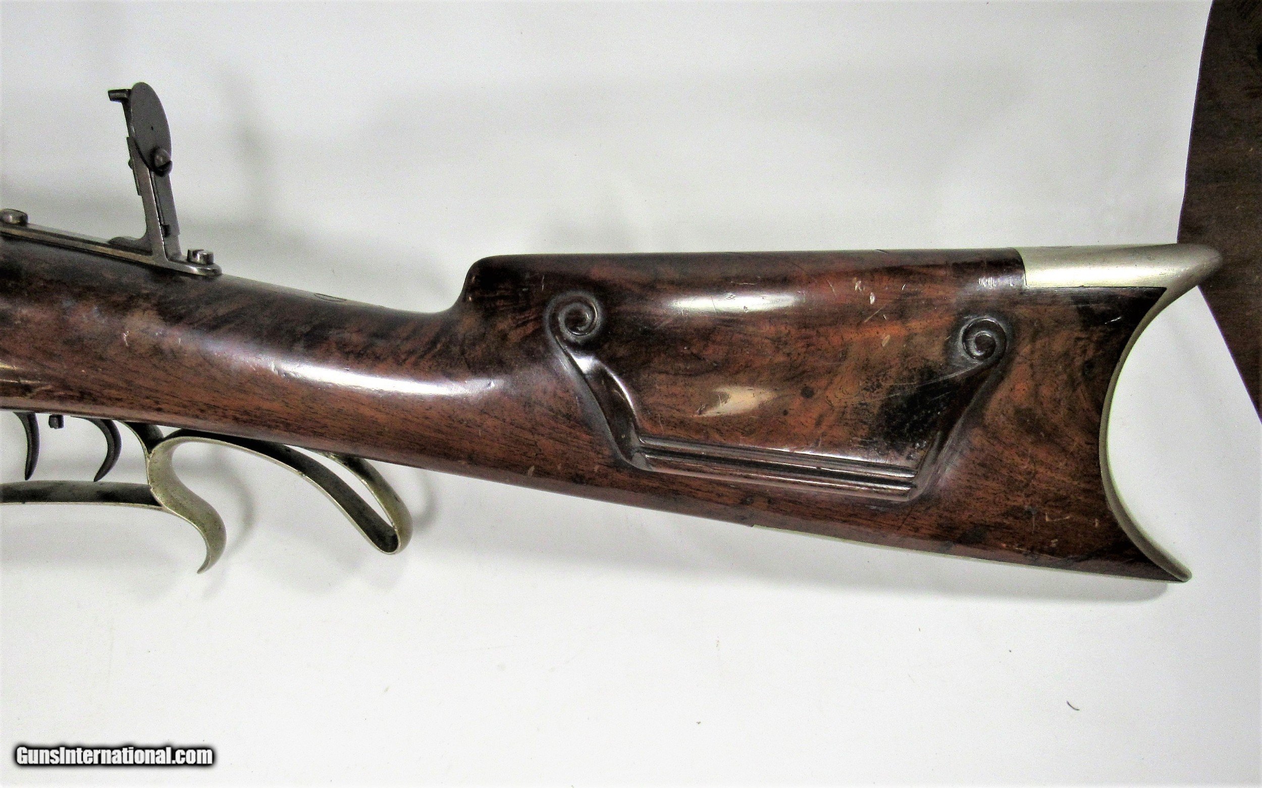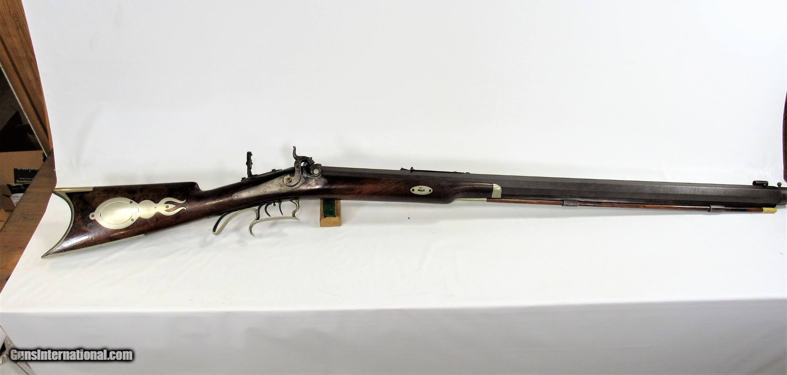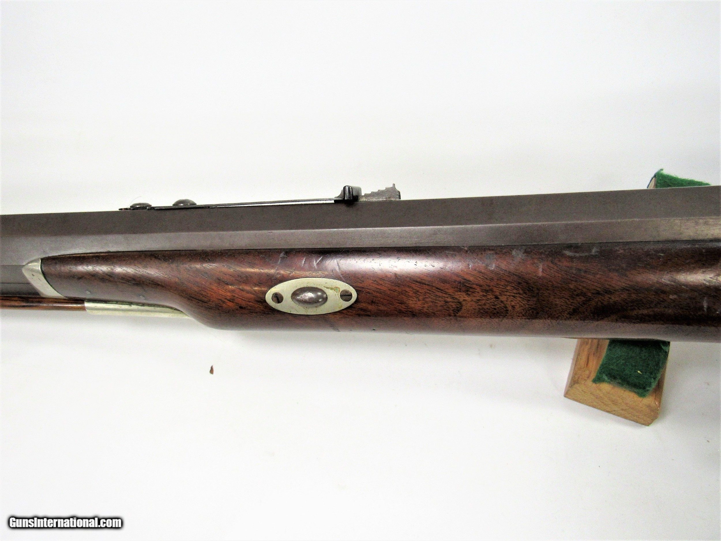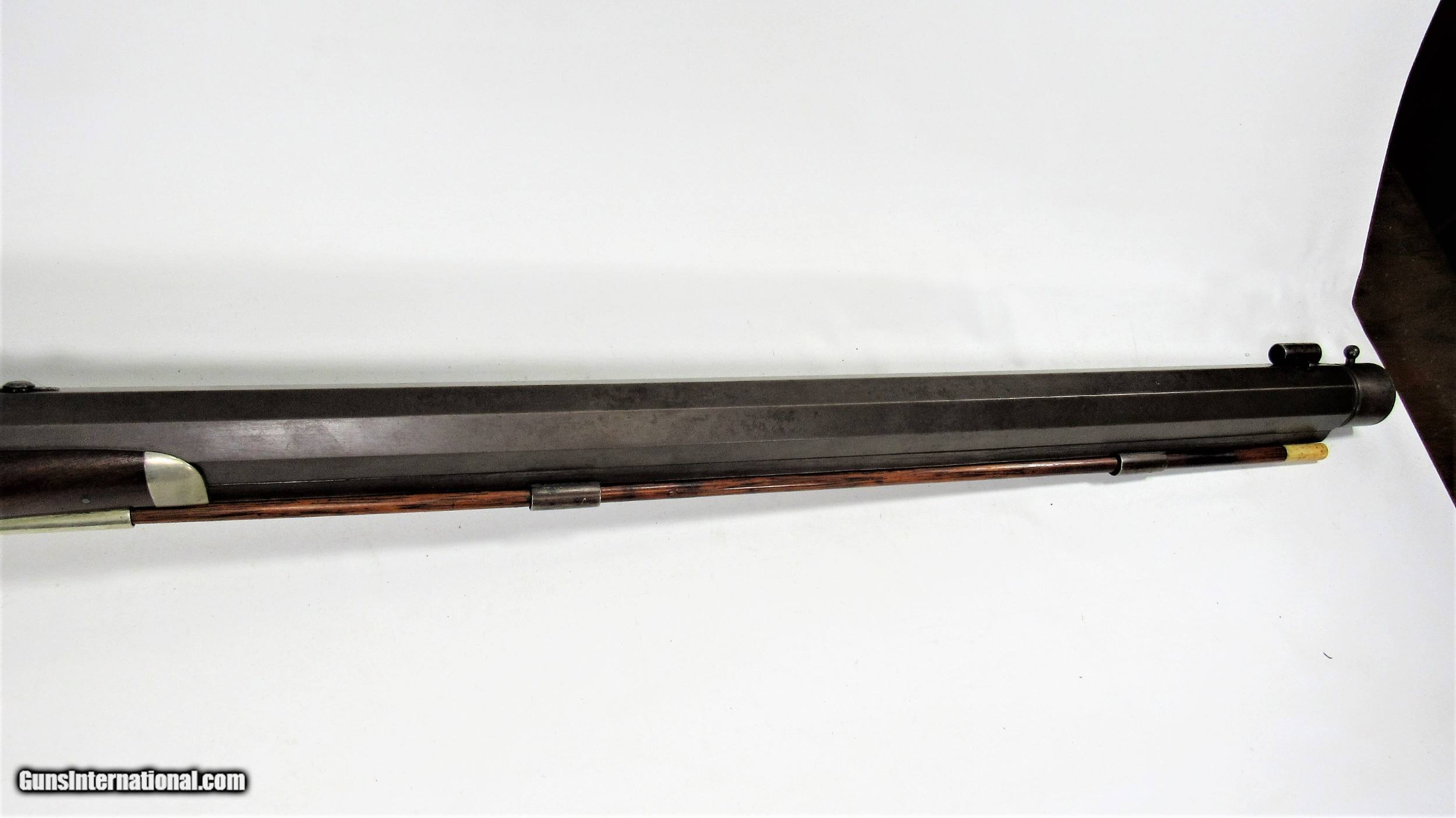 Description: PH HOWE PERCUSSION TARGET RIFLE 40 CAL 33” WITH FALSE MUZZLE FOR LOADING. CLEAN BORE, TANG SIGHT, GLOBE FRONT SIGHT WITH GERMAN SILVER PLATED CAP, TRIGGER GUARD, PATCH BOX AND BUTT PLATE. DOUBLE SET TRIGGERS. NICE WOOD. SOLD |