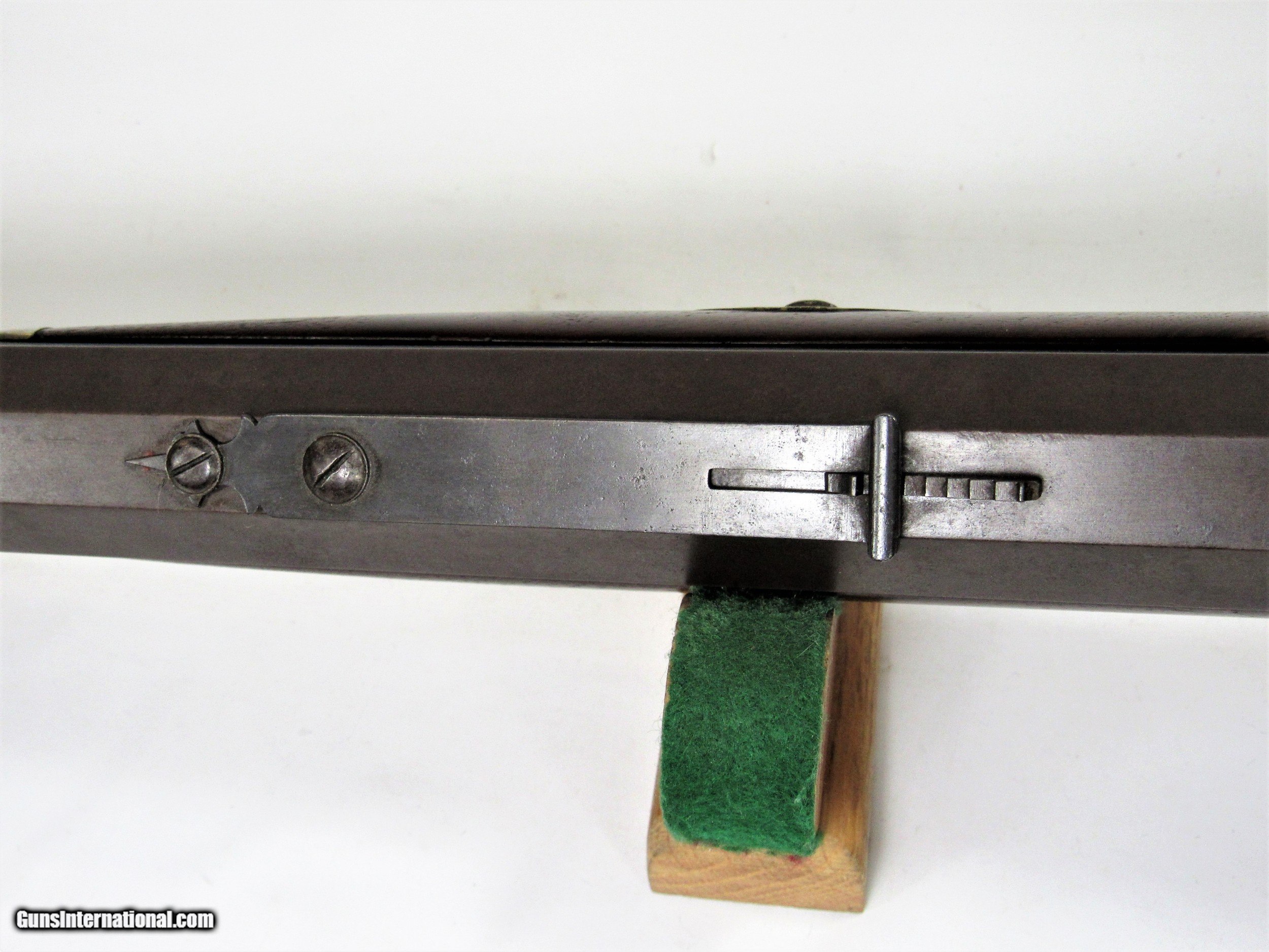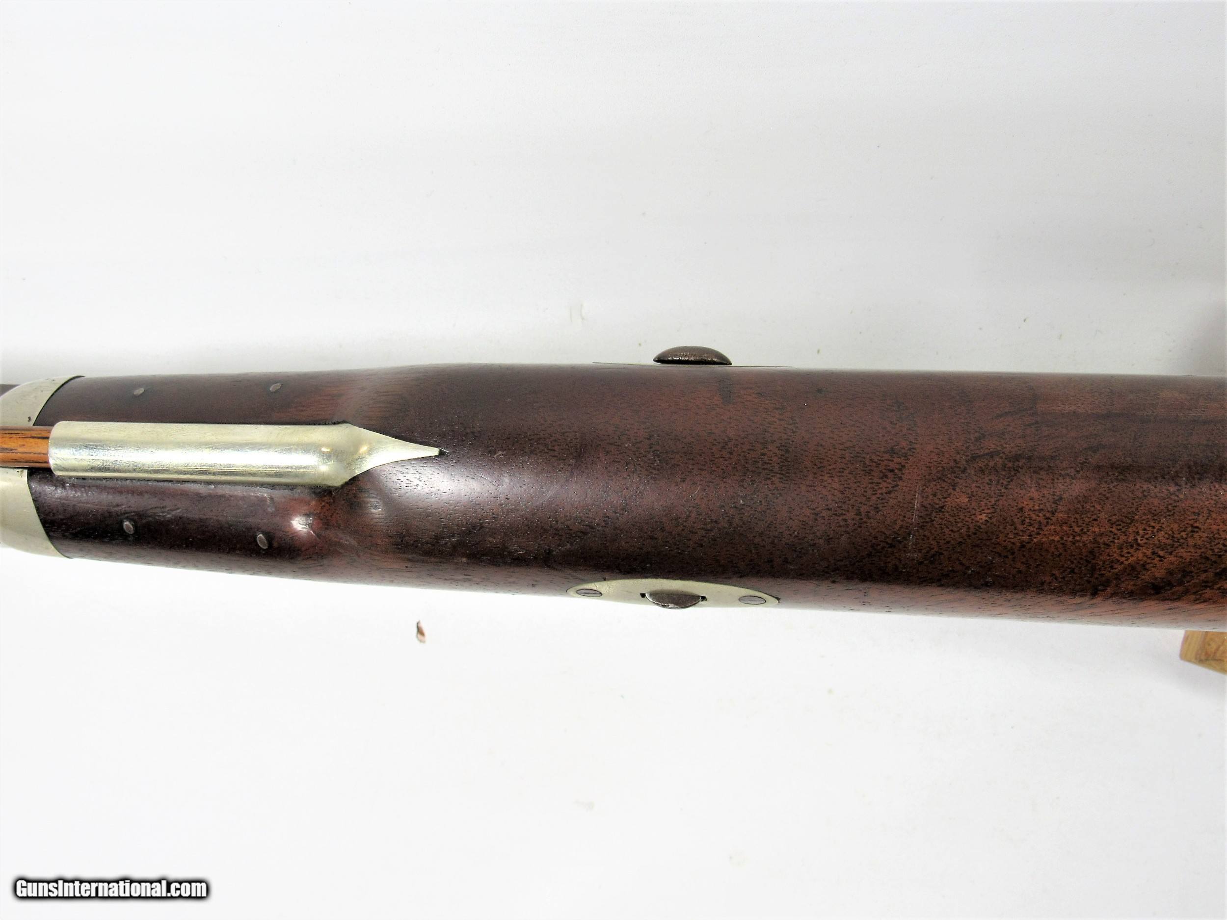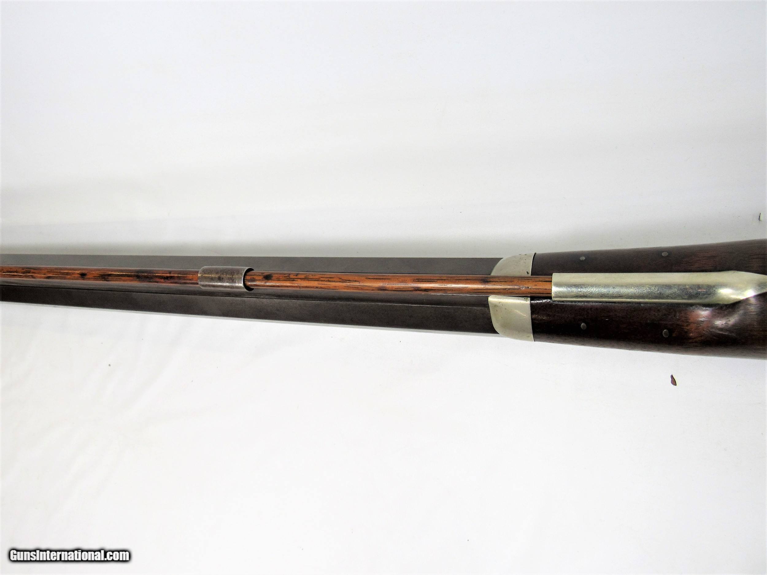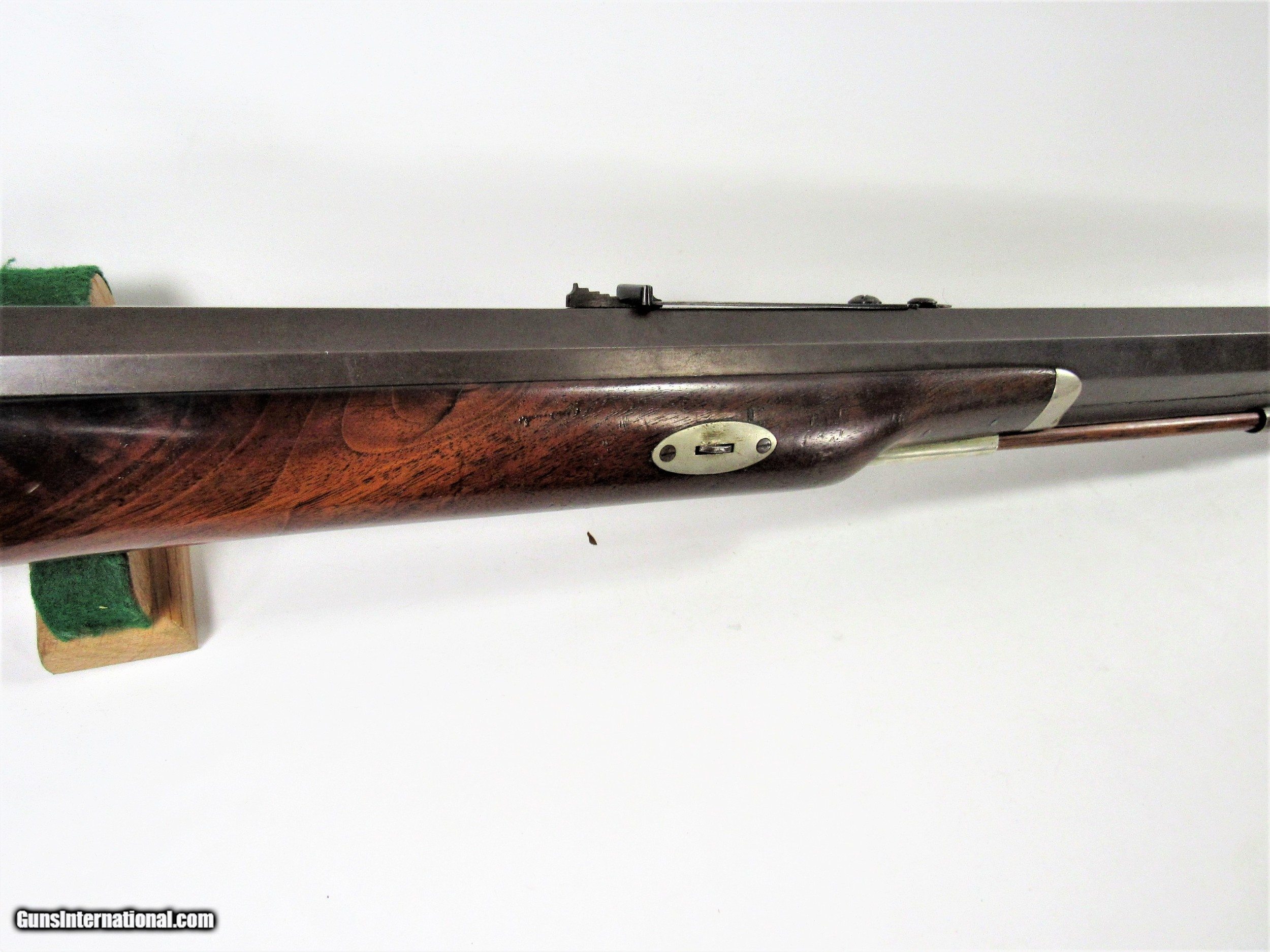 Description: PH HOWE PERCUSSION TARGET RIFLE 40 CAL 33” WITH FALSE MUZZLE FOR LOADING. CLEAN BORE, TANG SIGHT, GLOBE FRONT SIGHT WITH GERMAN SILVER PLATED CAP, TRIGGER GUARD, PATCH BOX AND BUTT PLATE. DOUBLE SET TRIGGERS. NICE WOOD. SOLD |