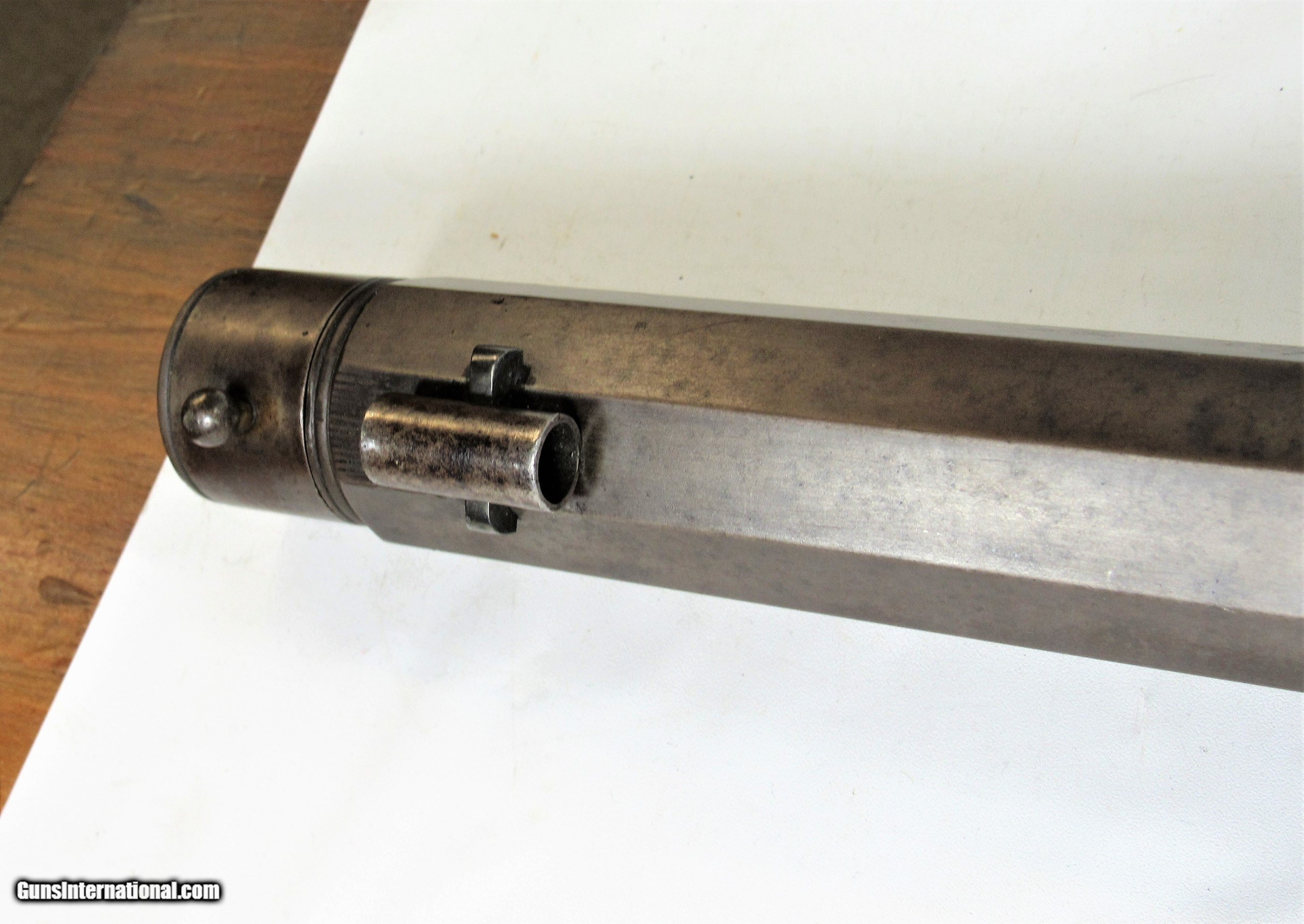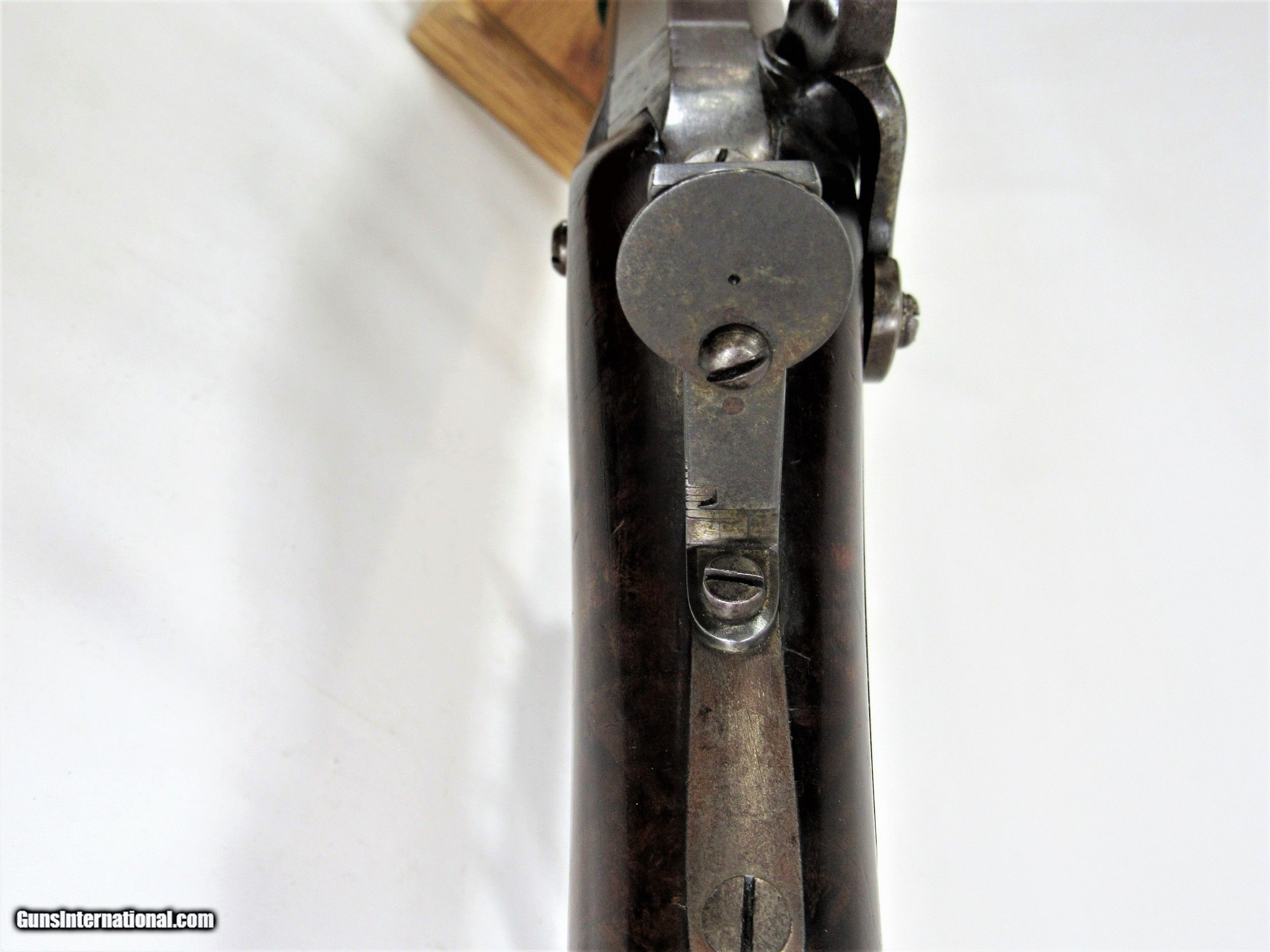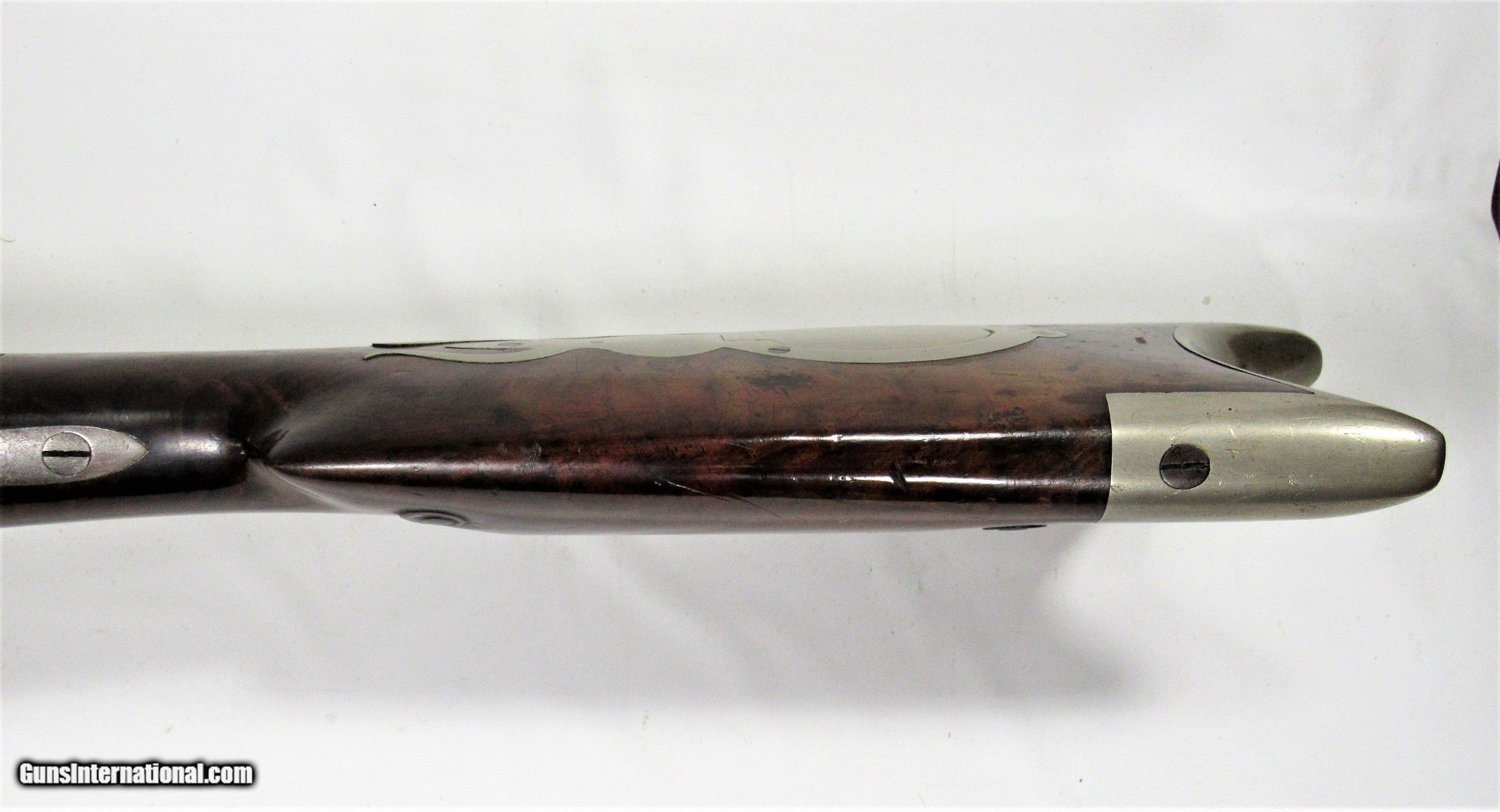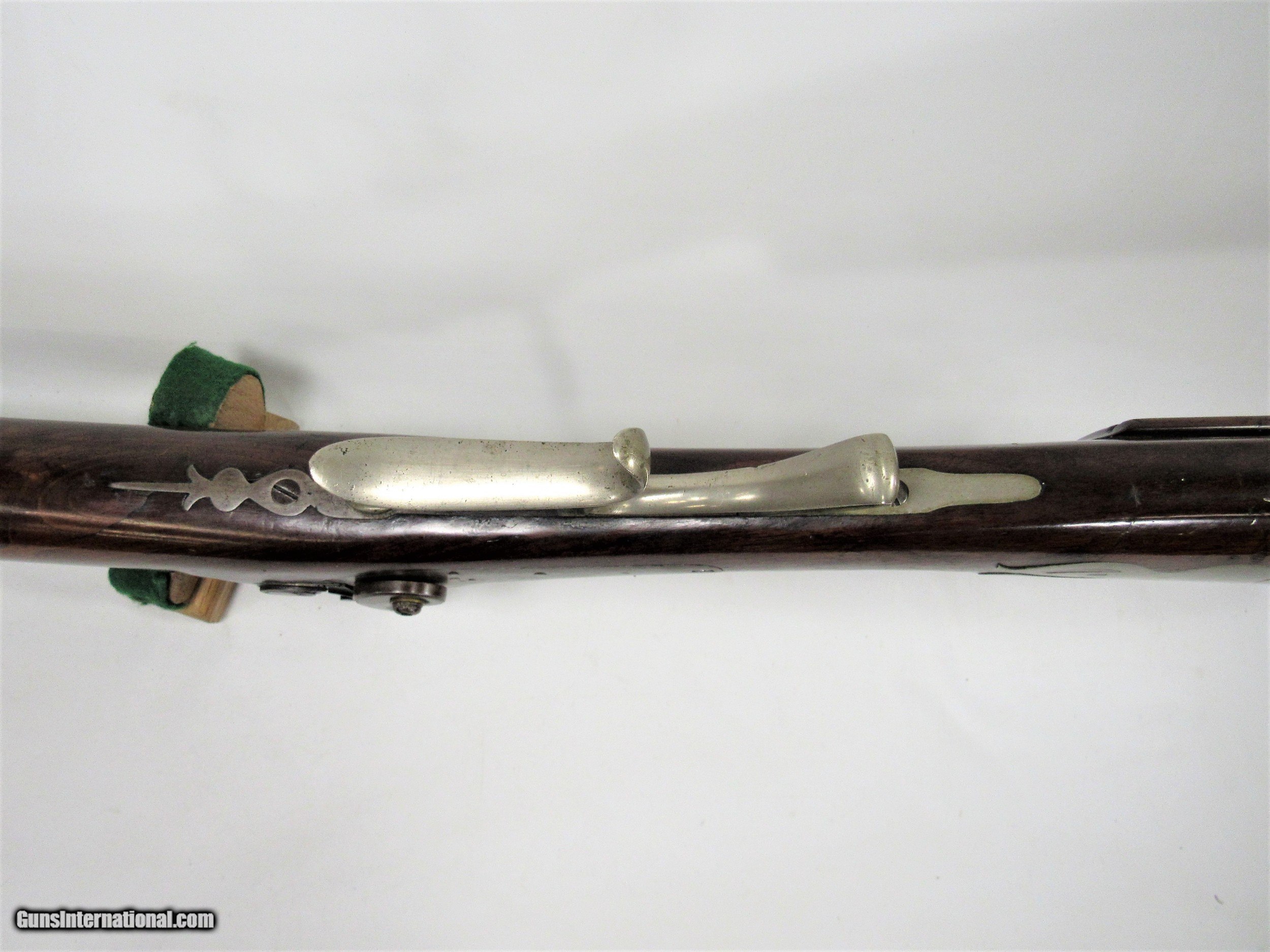 Description: PH HOWE PERCUSSION TARGET RIFLE 40 CAL 33” WITH FALSE MUZZLE FOR LOADING. CLEAN BORE, TANG SIGHT, GLOBE FRONT SIGHT WITH GERMAN SILVER PLATED CAP, TRIGGER GUARD, PATCH BOX AND BUTT PLATE. DOUBLE SET TRIGGERS. NICE WOOD. SOLD |