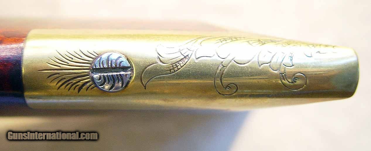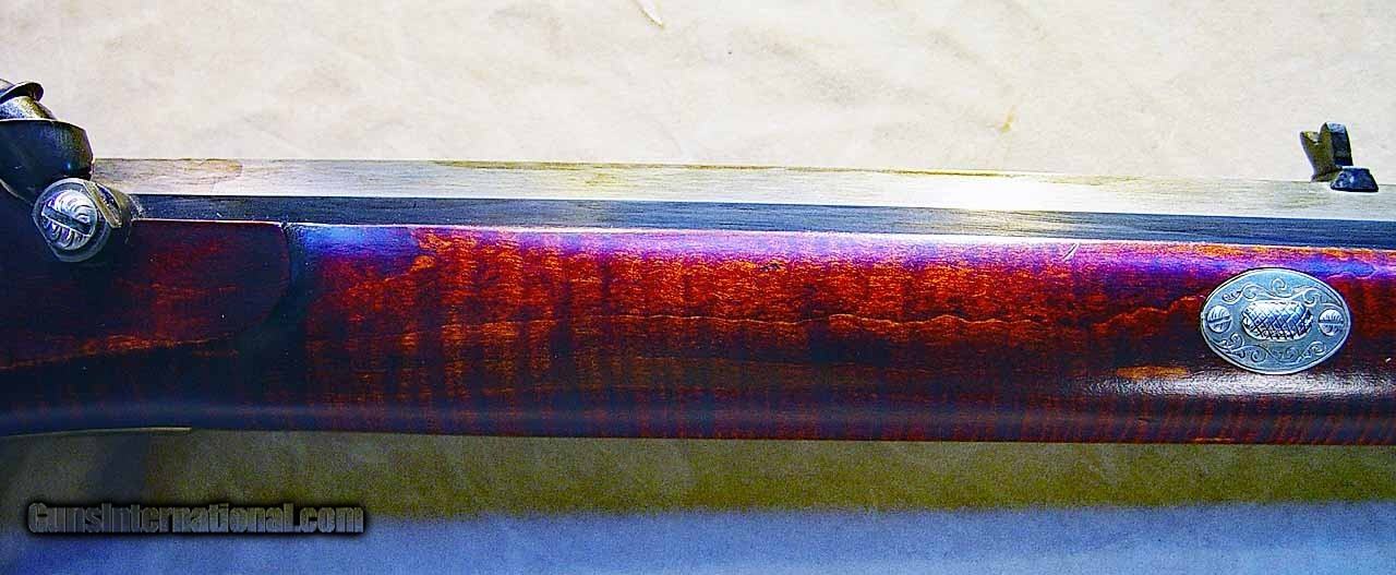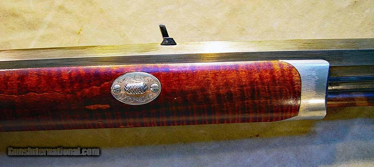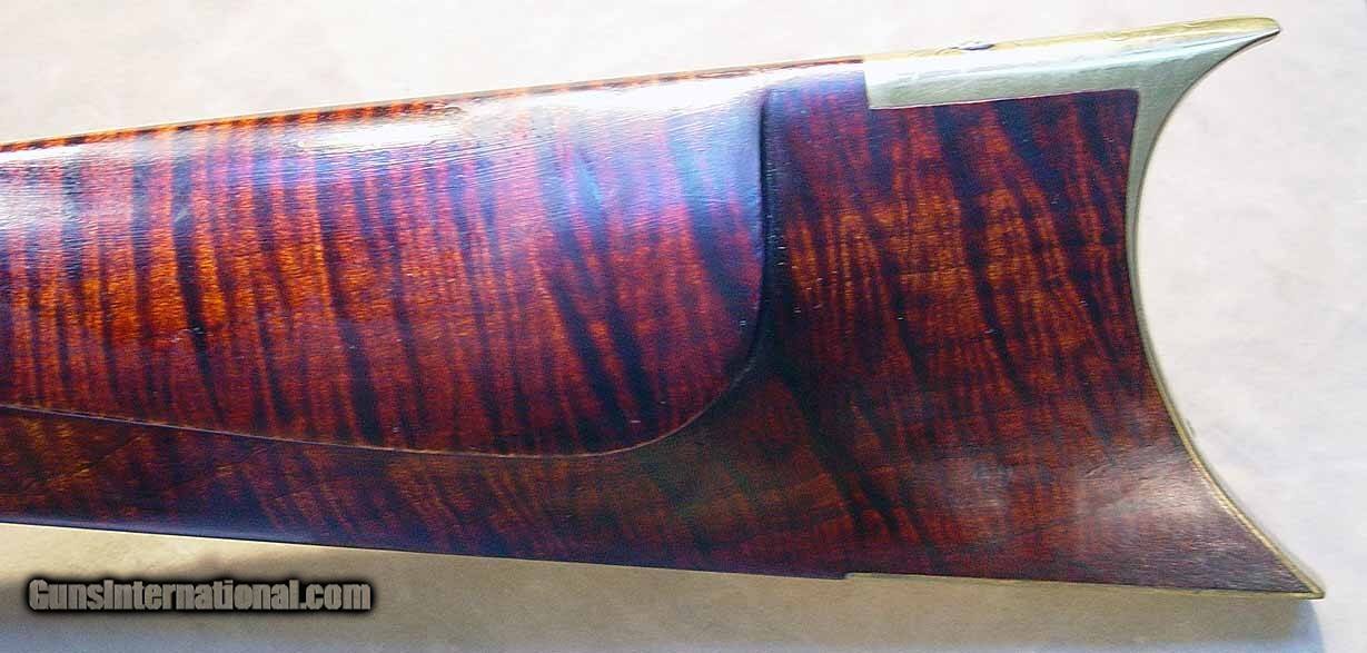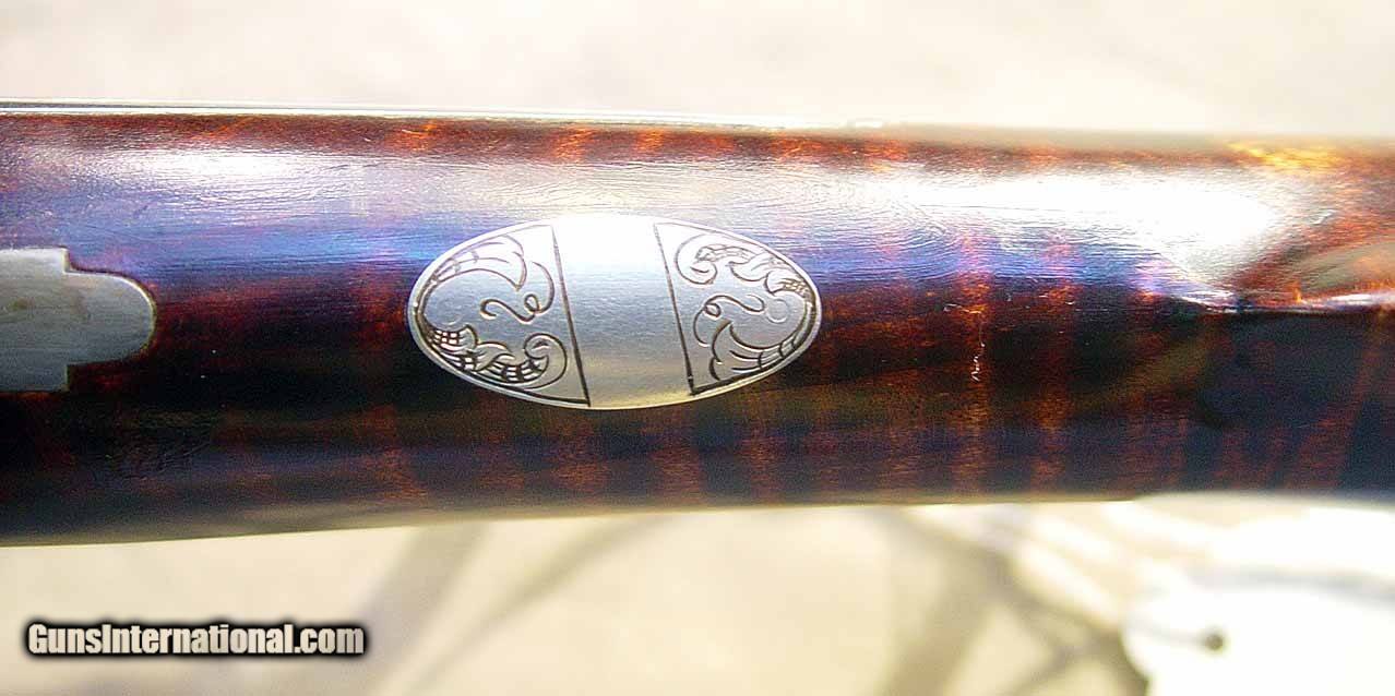 Description: Offered is a magnificient example of a Stephen O'Dell Natchez Rifle custom made by Matt Avance. This fine replica rifle is in like new condition, although it has been fired a few times. The gun has beautiful brass furniture with poured nose cap all of which are nicely engraved, a percussion L & R backaction lock, super premium Maple stock, Davis #6 triggers and has a 13 1/2 inch LOP. Rifle is signed on the top of the aged barrel. SOLD Rifle Caliber: .45 Manufacturer: Matt Avance Model: O'Dell Natchez Rifle Barrel Length: 36 Condition: Like New Metal Condition: Excellent Wood Condition: Excellent Bore Condition: Excellent Triggers: Davis #6 LOP: 13 1/2 inches |
