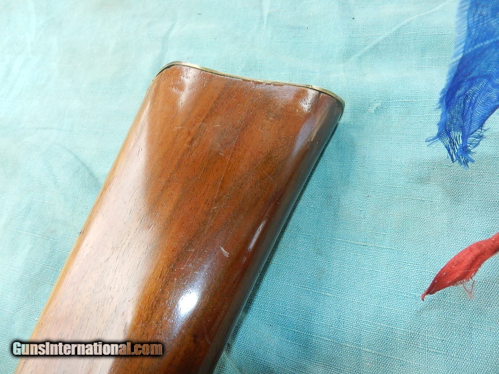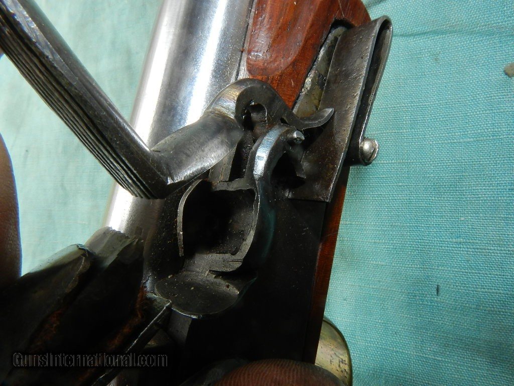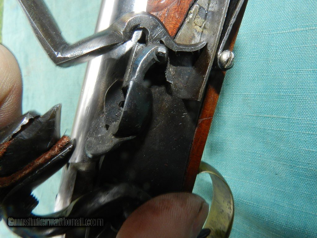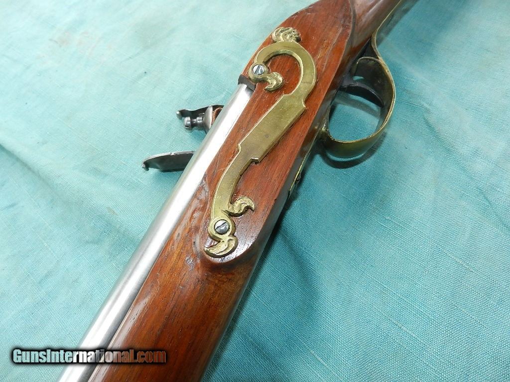 Description: SOLD A clean, good working steel barrel blunderbuss measuring about 31" overall and a barrel length of about 16" long with a very clean smooth bore, and the ecterior metal is like now in the white for the barrel. The color case hardened lock, and hammer work good and the flint showers copious sparks. As with Tingle guns he purchased short American Cherry hardwood, and joined them at the wrist. I hacve a Tingle lomg rifle I will post soon, and it has the dame join area of the stock, This is not a repair, and the joint is permenant .Furniture is brass and is wholey American made.The ram-rod is plain hardwood. The bore appears to be about .75 cal. smooth bore. When buying a gun always have it examined by a competent gunsmith before shooting. To buy a gun from me you must get a direct email for me, with details, and shipping cost. We don’t have a web site .I prefer money orders or a check. Item ships when funds come in. I try to keep guns affordable, which means I make less money than most dealers. You won’t get altitude sickness, or nose bleed, with my prices! I consistently have the best selection of older guns If you attempt to buy, you must still contact us for details . Best to email to buy. Sometimes a local person can stop buy and purchase before the gun is removed. Sometimes not home to get calls. Some guns are required shipment to a gun dealer near you for a transfer to you when it arrives. Otherwise many older or black powder guns ship to your door. With the widest selection of older guns at great prices, We don’t have a store, and sell on the internet only. I’m easy to get along with. Thank You[JB1] [JB1] SOLD |