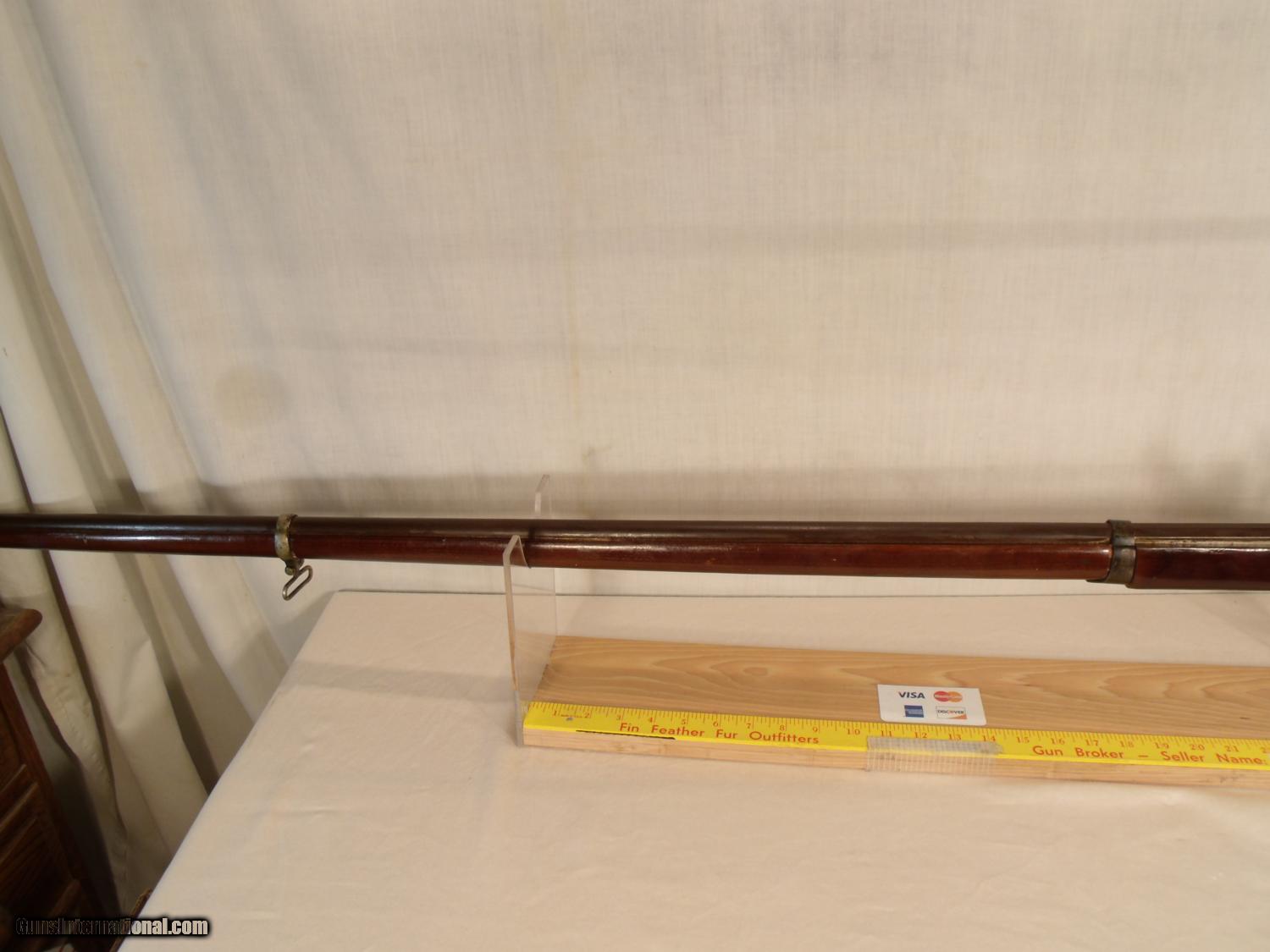 Description: Belguim made trade rifle. These guns were made to trade to the African natives of the Colonies and were sold by Stoger at least as late as the 60's.This gun has a 51 inch long barrel and is 20 guage or .62 caliber. Stoger called it the "Buccaneer". This will make a great conversation piece over the fire place. $50.00 Shipping and insurance I take plastic for 3% SOLD Curio/Relic: Yes |
