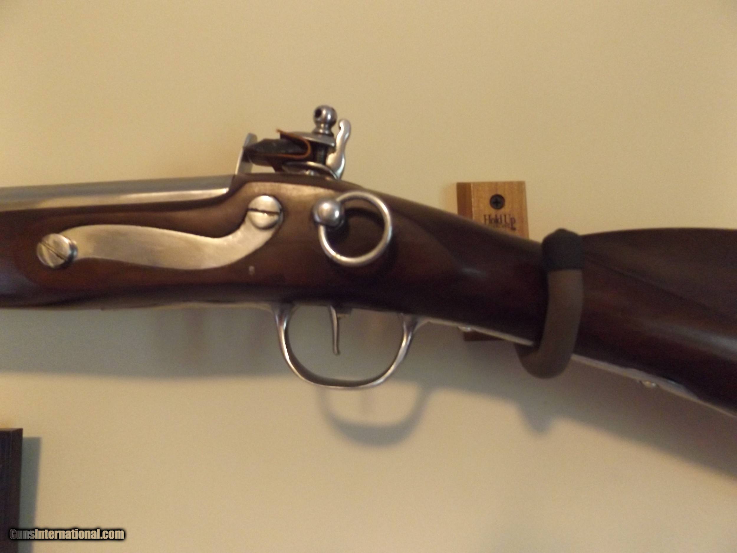 Description: This is a high-quality reproduction of the Model 1728, 69 Cal. infantry musket. By Valley forge arsonal. The famous Charleville Musket line were all various upgrades to the 1728. The round sling swivels were mounted to the sides of a barrel band and stock. The 47 inch round barrel is made of Type BS-970 gun steel. The Frizzen is case hardened and throws a lot of sparks. We do the final assembly, then test fire each gun with a 70 grain charge of AA Pyrodex. The 1728 was the last French musket to use the (Cows Foot) curve down buttstock. This would be the correct weapon for a Reenacter doing a French and Indian War impression. It is also correct for an American revolutionary war Impression as thousands of these muskets were sold and sent to America at the start of the war. Shipping is $35.00 to the lower 48. Money back if not satisfied with the buyer paying the return shipping. West coast please add $20.00 extra for shipping. SOLD Antique: Yes Model: 1728 Musket Barrel Length: 47 Bore: smooth Condition: New Metal Condition: New Wood Condition: New Bore Condition: New Barrel Type: Round Action: Flintlock Triggers: 1 Stock: Walnut Weight: 10 Lbs. Manufacture Date: 2022 Proof:Black: 70 Gr. AA |