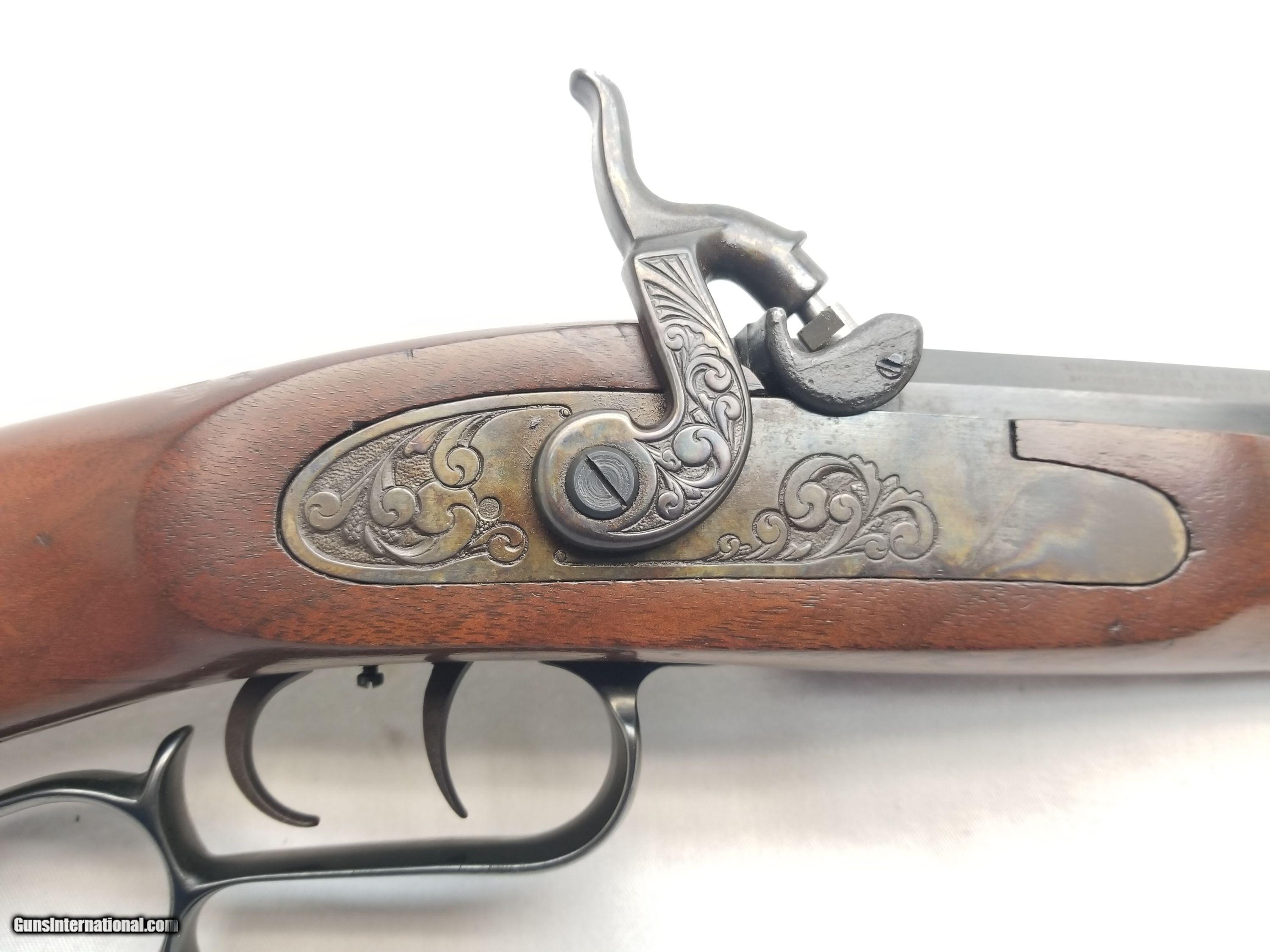 Description: This .54 caliber Renegade rifle has a blued octagon 1" x 26" barrel with 1:48 twist and fitted with a factory adjustable rear sight. The bore is very good. The P grade American Walnut stock is mounted with blued steel furniture. A factory engraved color case hardened percussion lock is activated by double set triggers. Length of pull is 13-3/4", overall length is 42-1/2" and weight is 7.4 lbs. Factory wood to metal fit - made by Thompson Center. Condition: Good. Our stock number is #P-27-97. Willing to ship anywhere in the USA. SOLD Manufacturer: Thompson Center Model: Renegade Caliber Info: .54 Bore: Rifled Condition: Good Metal Condition: Good Wood Condition: Good Bore Condition: Very Good Barrels: 1 Barrel Type: Octagon Action: Percussion Triggers: Double Set Stock: American Walnut LOP: 13-3/4 Finish: Blued Weight: 7.4 Lbs Sights: Adjustable |