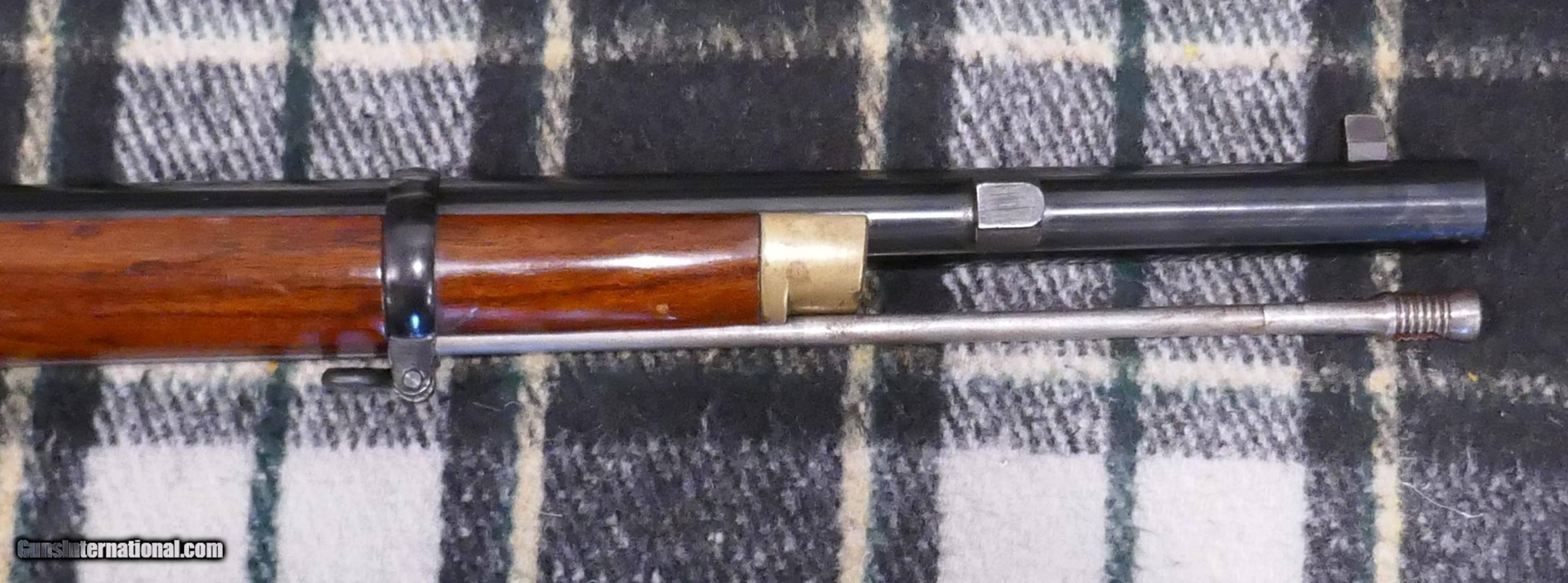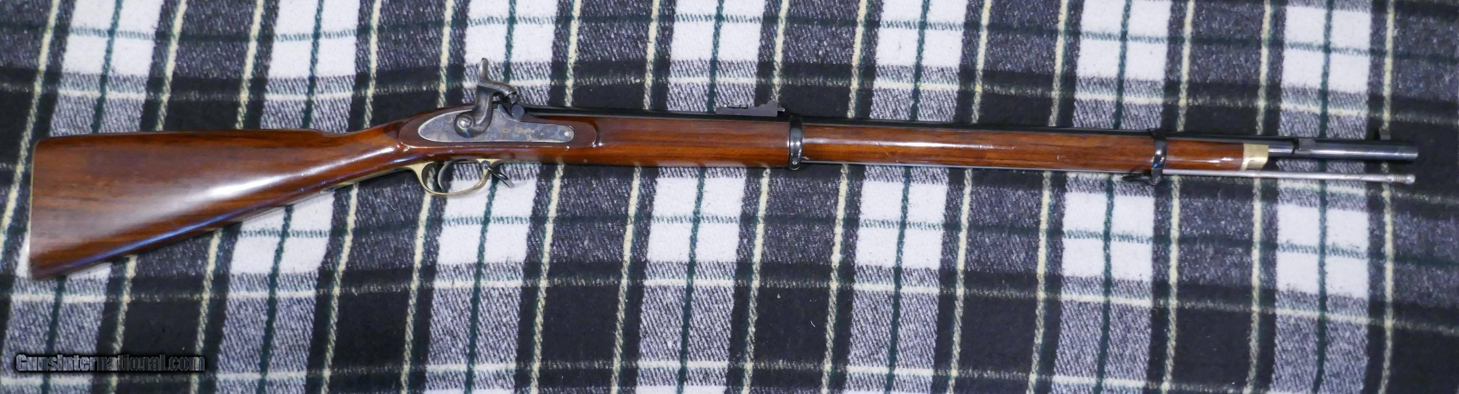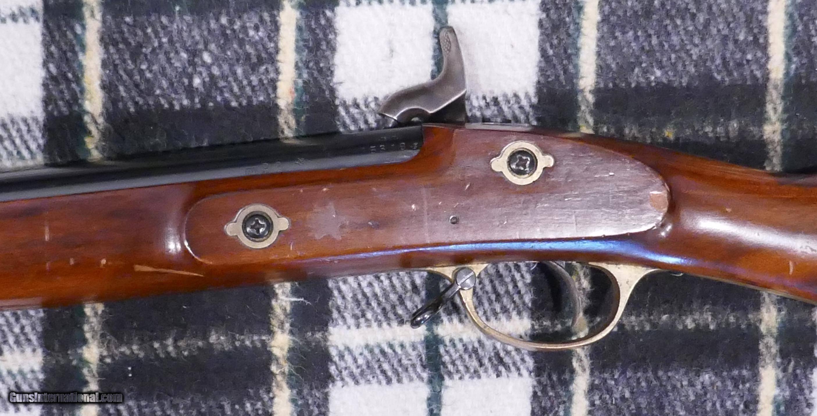Description: London Armory Co. .58 cal. Enfield 2-band musket. Musket is marked DGG for Armi San Palo (Euroarms). Italian date code UA for 1989. Musket was used for target shooting; has a high front sight possibly a replacement. Bore is very good, please see pics for condition. Price includes shipping and insurance. Please contact me directly for payment and shipping details. SOLD Rifle Caliber: .58 Manufacturer: Euroarms of America Model: 1858 Enfield |