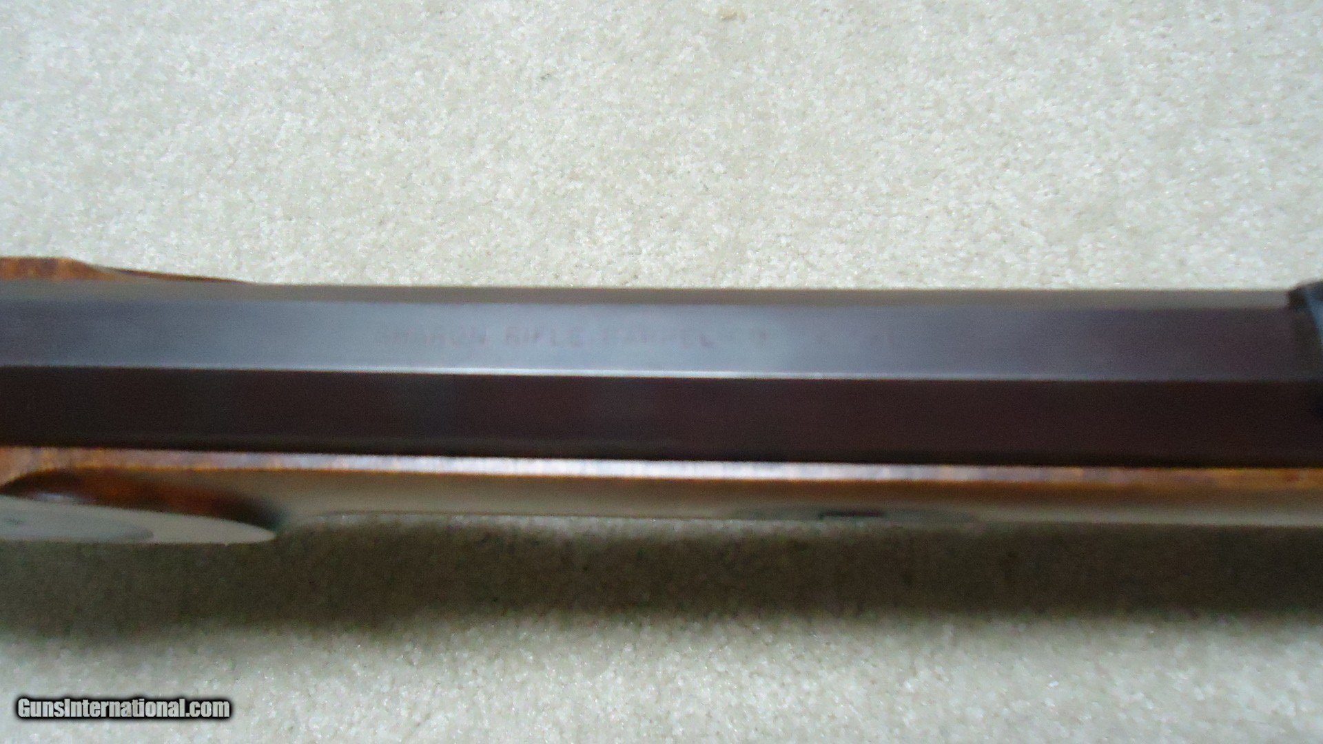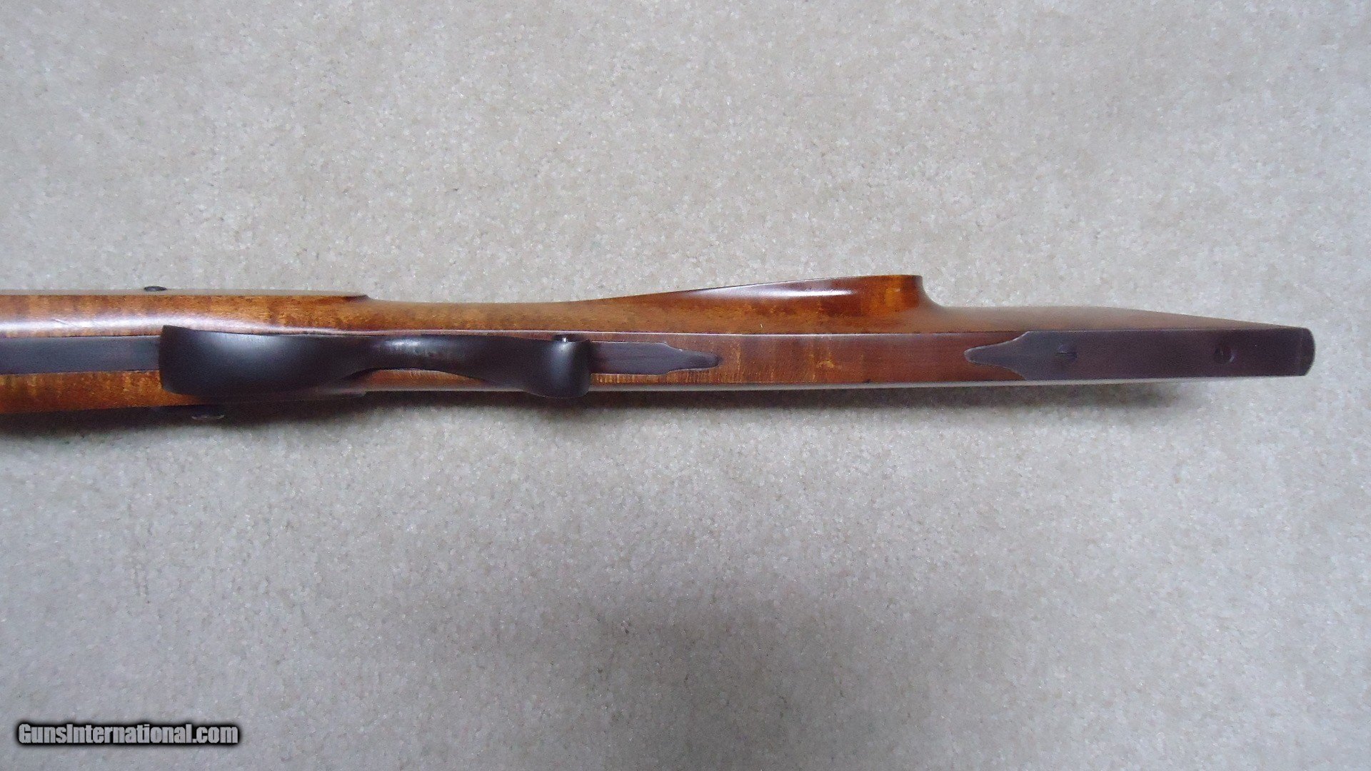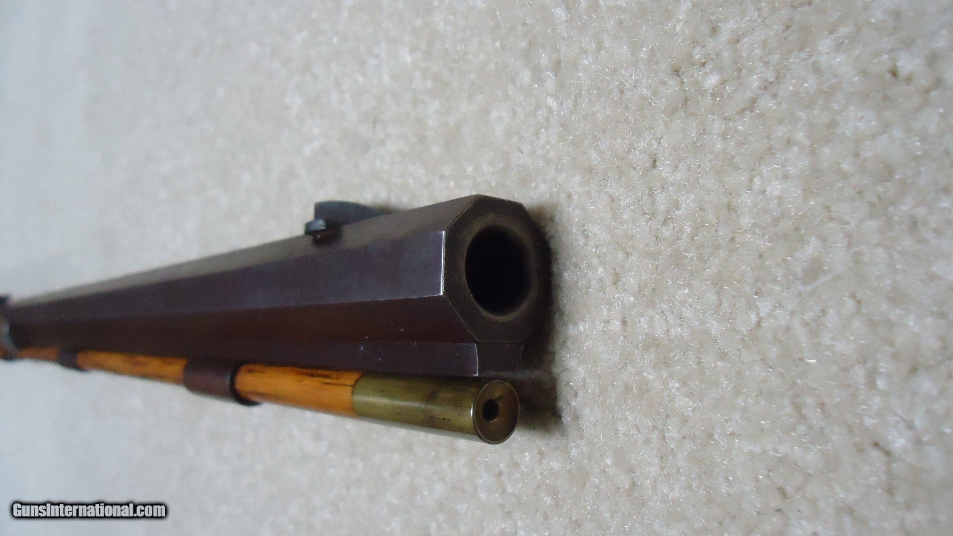 Description: BEAUTIFUL .54 PERCUSSION CUSTOM HAWKEN RIFLE WITH 34" BROWNED BARREL MARKED "SHARON RIFLE BARREL CO. 54 CAL." A beautifully made classic style rifle that appears about new inside and out. Iron mounted with double wedge key forend, double set triggers, traditional drift adjustable buckhorn rear sight with blade front, nicely figured maple stock with cheek piece and original Hawken styleiron trigger guard. Highest quality that would be very expensive to have custom built today. SOLD Antique: Yes Barrel Length: 34" OCT. Condition: LIKE NEW |