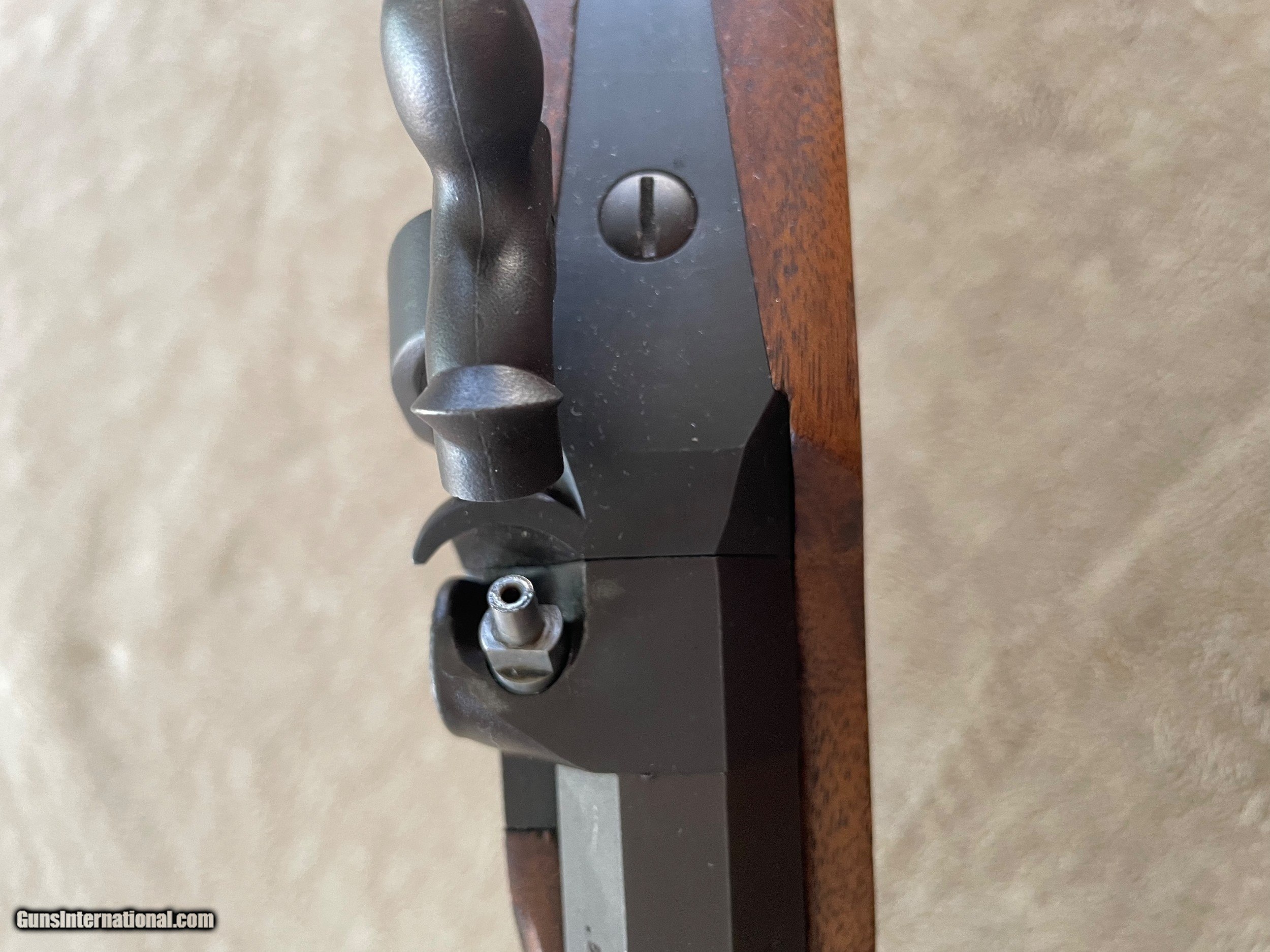 Description: Browning .50 cal Mointain Rifle. Excellent condition ... see pictures some light handling marks on wood and steel. These are very rare. It is missing one wedge pin. I think you can find replacements at Dixie gun works. Uses a set trigger. shipping $50 SOLD Rifle Caliber: .50 Manufacturer: Browning |