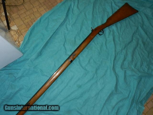 Description: An Eibar Spanish made monkey /bird gun made for the native trade of South America, with a 30 1/2" octagonal smooth bore barrel with a good bore and these guns have machine marks in the bore also. Front action lock works well and the lock plate has simple chisel engraving. The hard wood stock is very good with the typical full length ram-rod. Has a round patch box in the stock and a steel crescent oil case hardened butt-plate so this must be the DELUXE MODEL! Some file marks on top of the barrel breech and the top tang. These are rugged light weight carry muskets for local game. To buy a gun from me you must get a direct email for me, with details, and shipping cost. We don’t have asite .I prefer money orders or a check. Item ships when funds come in. If you can only pay with a card let me know. I’m sorry I don’t list my phone number, did that for 30 days, never again.. I can’t talk on the phone all day…who will ship the guns? I’m just one person, and it’s very busy here! I do a brisk volume! I hope you like my wide selection of unusual guns, knives and gun parts. Shipping price determined by zip code. I try to keep the prices affordable, which means I make less money than most dealers. You won’t get altitude sickness with my prices! I consistently have the best selection of older guns If you attempt to buy, you must still contact us for details, buying doesn't end the sale, it just sends an email telling us you want to buy this gun. A phone call won’t secure a sale! Not home many times, the first buyer by email buys the gun !Thissite does not close down a sale when you do a BUY! I can get six buys in an hour, first buyer to email gets the guns, others are in second place! Best to send another email . Sometimes not home to get calls. Some guns are required shipment to a gun dealer near you for a transfer to you when it arrives. With the widest selection of older guns at great prices, We don’t have a store, and sell on the internet only. SOLD |