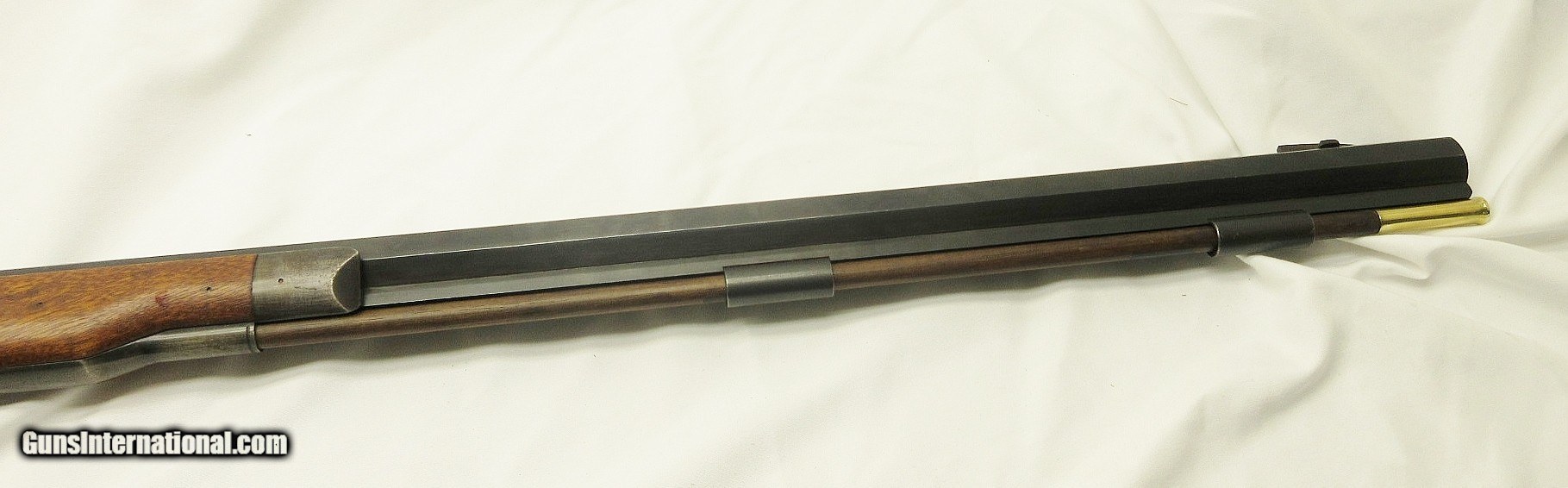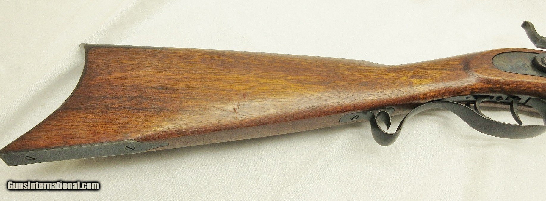 Description: STK# P-36-84 Great Plains - 45 Cal - Percussion - STK# P-36-84 This .45 caliber Great Plains percussion has a blued Octagon 15/16" X 33" barrel with 1:48 twist that is fitted with an adjustable buckhorn rear sight and a blade front sight. The European Walnut stock is mounted with blued steel furniture. The color case hardened percussion lock is activated by double set triggers. Length of pull is 14", Overall length is 48", Weight is 8.6 lbs. Factory wood to metal fit. Condition: Good. Our stock number is P-36-84. Will ship anywhere in the United States, buyer pays freight and insurance. SOLD Rifle Caliber: .45 Manufacturer: Great Plains Condition: Good Metal Condition: Good Wood Condition: Good Barrels: One Barrel Type: Octagon Action: Percussion Triggers: double set triggers Stock: European Walnut LOP: 14 Weight: 8.6 lbs Sights: Adjustable/Fixed Item Location: OR - Oregon |