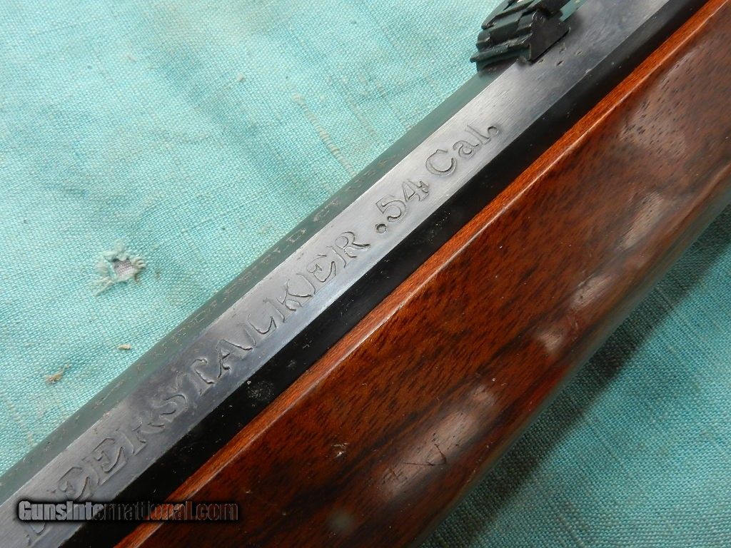 Description: <<<SOLD>>>> A super clean almost unfired Lyman Deerstalker in .54 caliber with a heavy octagonal 25" carbine barrel with a very good rifled bore. Barrel exterior metal is full blue at about 99% and the lock-plate is color case hardened as is the hammer. This is a single trigger model, and the stock is a very professionally fitted and hand rubbed finish, with no flaws, and a black rubber recoil pad. Come with front and rear sights. Has a fiberglass ram-rod with a brass tip. Overall about as clean as one can get. When buying a gun always have it examined by a competent gunsmith before shooting. To buy a gun from me you must get a direct email for me, with details, and shipping cost. We don’t have a web site .I prefer money orders or a check. Item ships when funds come in. I try to keep guns affordable, which means I make less money than most dealers. You won’t get altitude sickness, or nose bleed, with my prices! I consistently have the best selection of older guns If you attempt to buy, you must still contact us for details . Best to email to buy. Sometimes a local person can stop buy and purchase before the gun is removed. Sometimes not home to get calls. Some guns are required shipment to a gun dealer near you for a transfer to you when it arrives. Otherwise many older or black powder guns ship to your door. With the widest selection of older guns at great prices, We don’t have a store, and sell on the internet only. I’m easy to get along with. Thank You. SOLD |