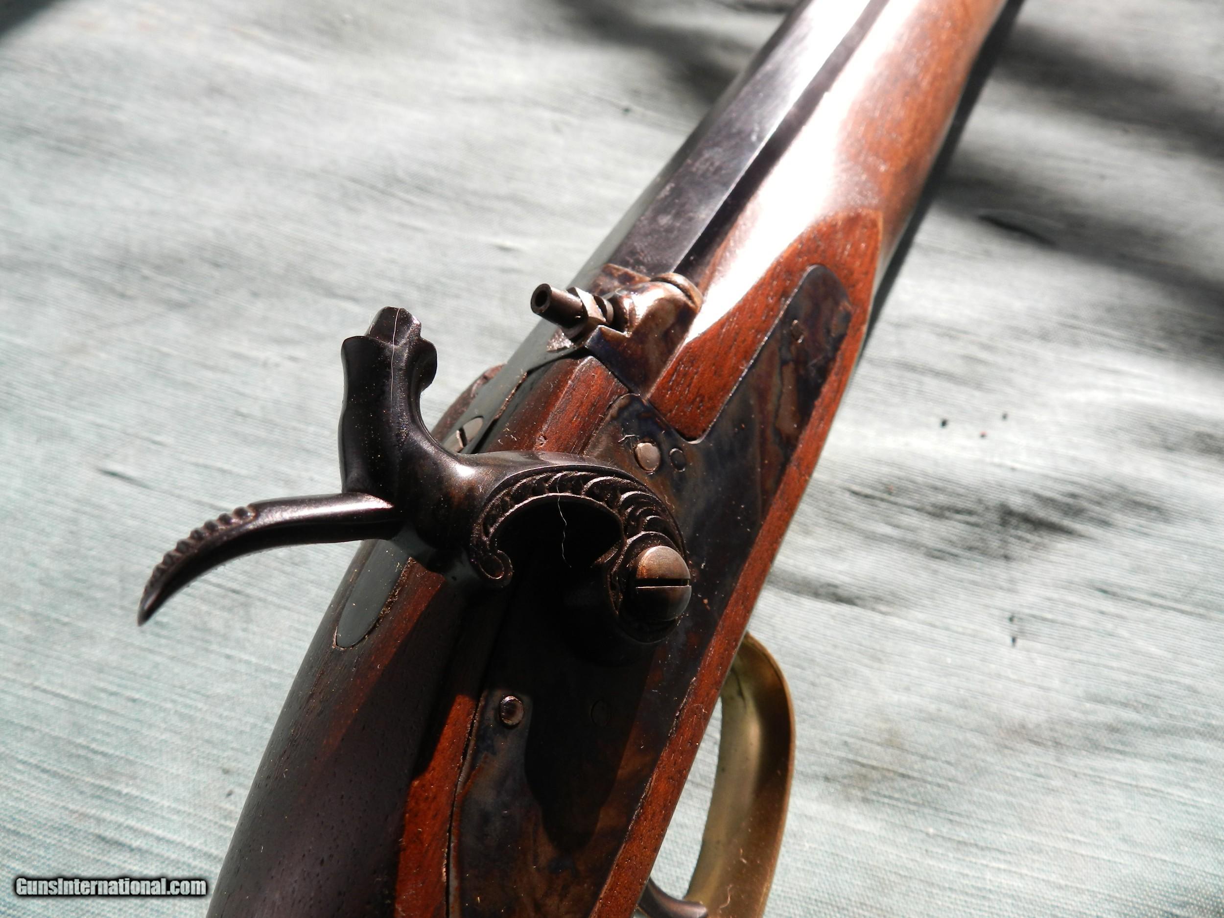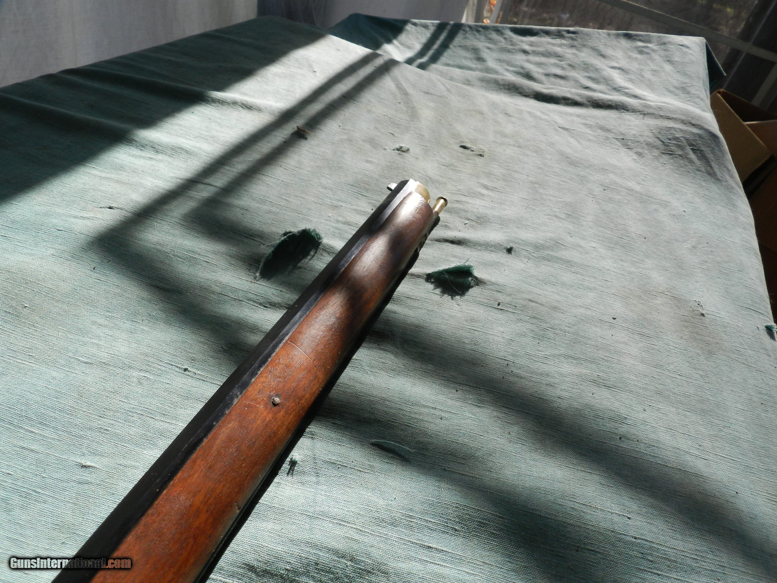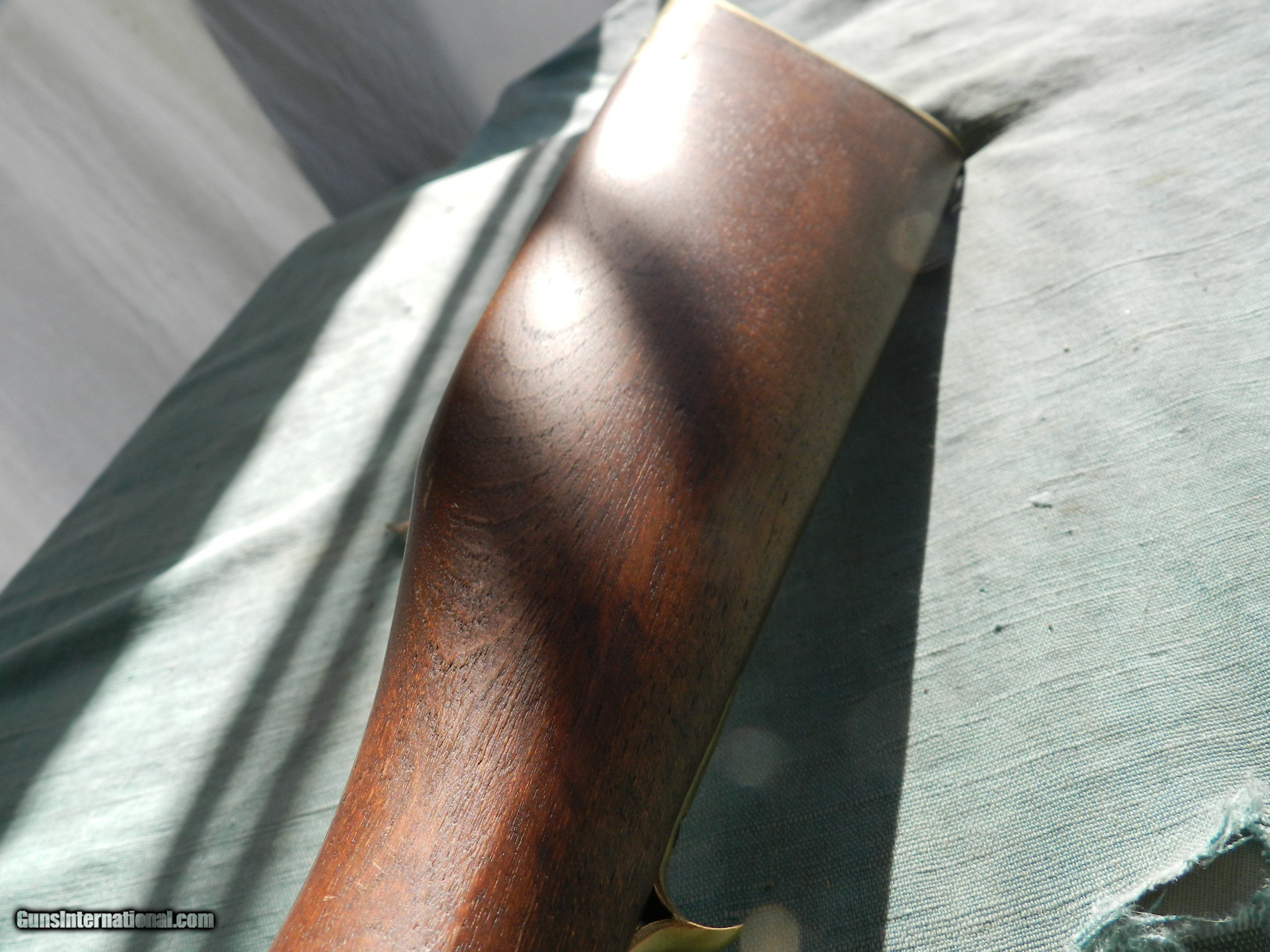 Description: A very clean percussion muzzle loader, with a 33" octaonal barrel with 100% bluel, and a very clean, shiny rifled .45 cal bore. The color case hardened lock works well, and the nipple is clean. The American walnut stock is solid and clean and appears to have not been used much, The furniture is brass, and comes with a stout steel ram-rod with a brass a brass tip.Has both original barrel sights. Overall a clean gun that resembles a CVA of the 1950's thru 1960's .When buying a gun always have it examined by a competent gunsmith before shooting. To buy a gun from me you must get a direct email for me, with details, and shipping cost. We don’t have a web site .I prefer money orders or a check. Item ships when funds come in. I try to keep guns affordable, which means I make less money than most dealers. You won’t get altitude sickness, or nose bleed, with my prices! I consistently have the best selection of older guns If you attempt to buy, you must still contact us for details . Best to email to buy. Sometimes a local person can stop buy and purchase before the gun is removed. Sometimes not home to get calls. Some guns are required shipment to a gun dealer near you for a transfer to you when it arrives. Otherwise many older or black powder guns ship to your door. With the widest selection of older guns at great prices, We don’t have a store, and sell on the internet only. I’m easy to get along with. Thank You SOLD |