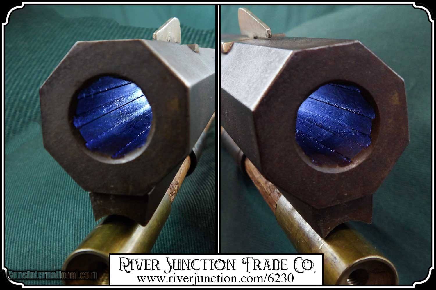 Description: This is a Navy Arms Hawken made in the USA from parts left over from the Ithaca Hawken. The barrel, I believe, is Douglas as there are no foreign proof marks on it of any kind. 1" across flats, 32" length, bright bore, 50 cal. Triggers are stamped "Cherry Corners". Walnut stock is in excellent condition. Metal finish is thinning in places but has a nice patina to it. Overall a very nice rifle. Payment: Item, can be ordered on line with a credit card or paypal on our sight. Just Google (riverjunction) and type in the River Junction Trade Co. item number (6230) in the search box. Before you checkout you will see shipping cost and total. OR If you prefer: Pay by cash, postal money order, cashiers check, personal & business checks. We wait for checks to clear. We always answer questions and entertain offers. Have questions? Call me 563-880-4588. Jim SOLD |