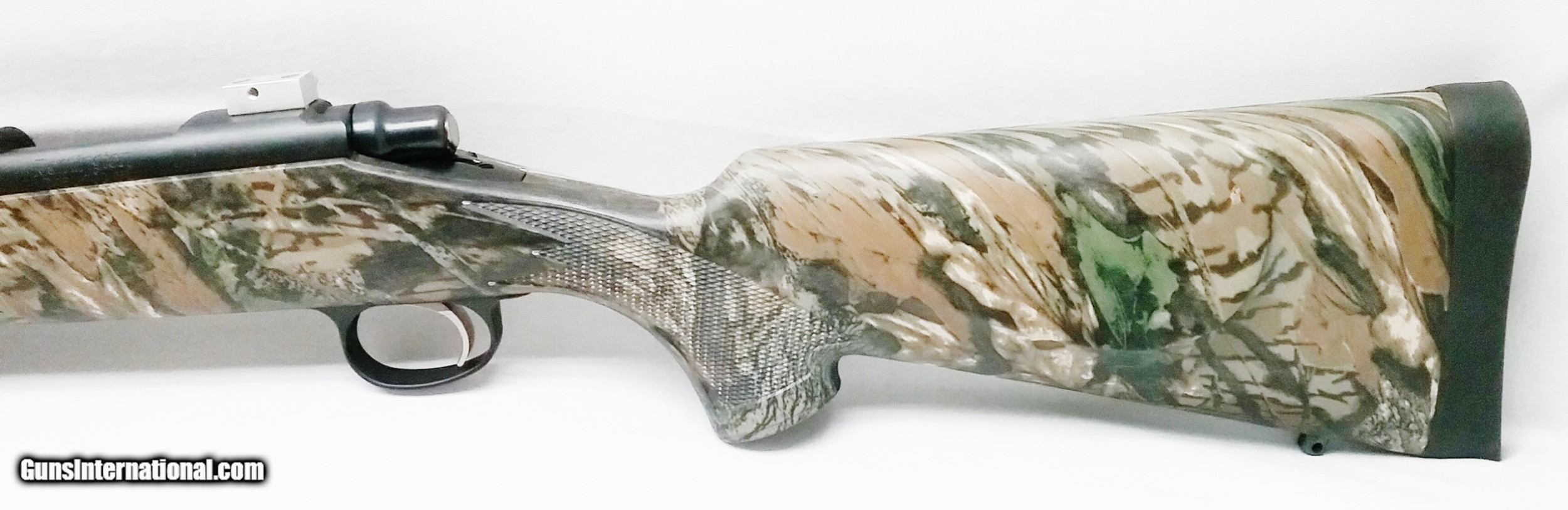 Description: This .50 caliber Remington 700 ML - Bolt Action - In-line rifle has a tapered round 1-1/8" to 7/8" x 23-1/2" blued barrel with 1:28 twist and fitted with an adjustable rear sight and white bead front sight. The bore is very good. The Camo Synthetic stock with checkered wrist and forend is mounted with sling swivel studs and recoil pad. The Bolt Action with #11 percussion cap ignition and outside safety is activated by a single trigger. Comes with scope mounts. Length of pull is 13-3/8", overall length is 43”, and weight is 7.4 lbs. Please Note: This rifle is being sold AS-IS because no replacement parts are available. Factory fit - made by Remington. Condition: Good - AS-IS. Our stock number is P-30-64. Willing to ship anywhere in the United States, buyer pays freight and insurance. SOLD Manufacturer: Remington Model: 700 ML Caliber Info: 50 Cal Bore: Rifled Condition: Good Bore Condition: Very Good Stock: Synthetic Butt Pad: Rubber LOP: 13-3/8 Finish: Blued Weight: 7.4 lbs Sights: Adjustable Item Location: OR |