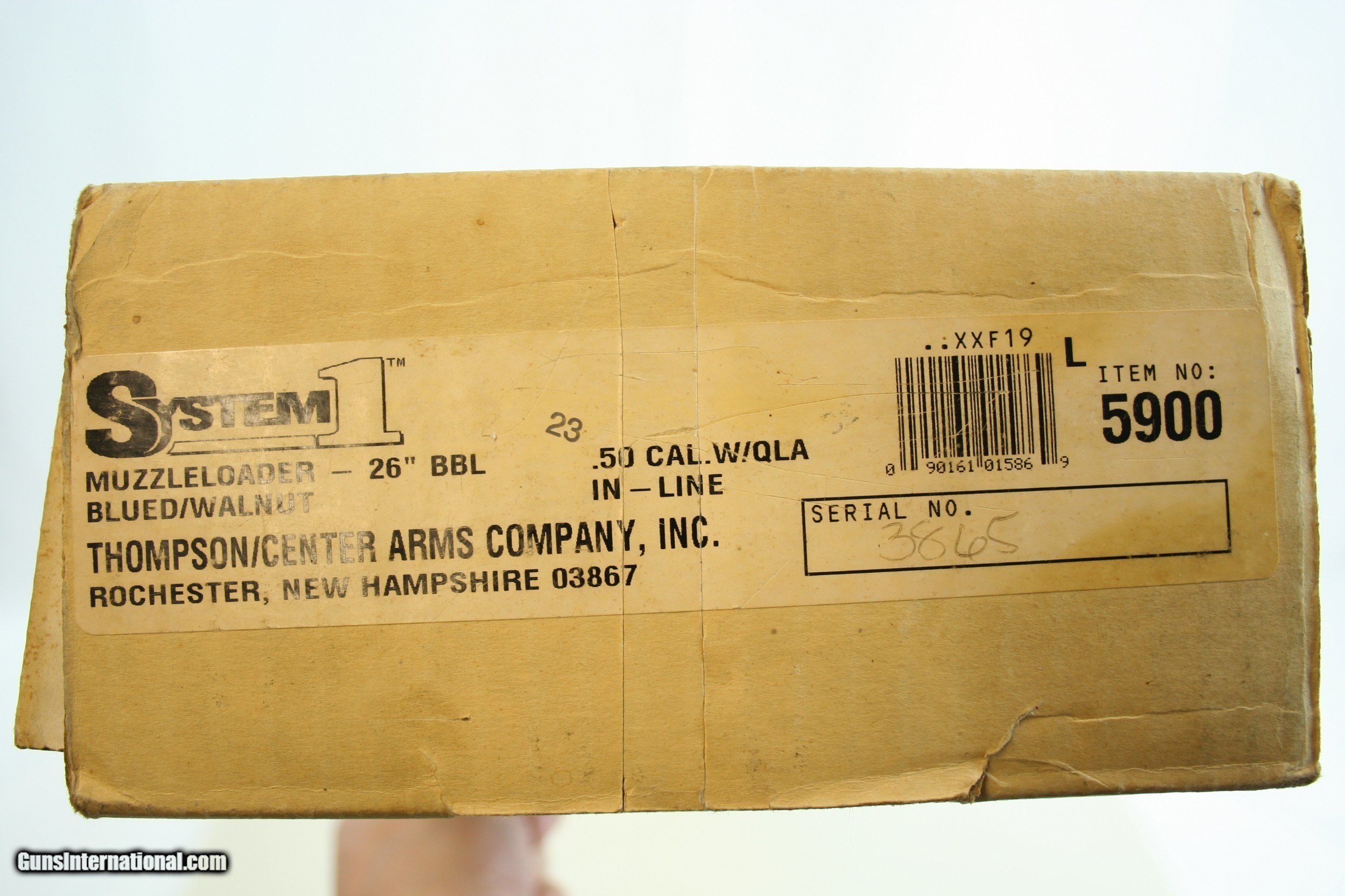 Description: Thompson Center System 1 #5900 Walnut Stock has 3 Barrels 50 Cal, 32 Cal and 12 Ga Shotgun.. 12 Ga and 32 Caliber barrels are UNFIRED. Stock has a couple small dings. Factory box with Manuals. SOLD Manufacturer: Thompson Center Model: System 1 #5900 Serial Number: 3865 Caliber Info: 50 Bore: Mint Condition: Near Perfect Metal Condition: 99% Blue Wood Condition: 2 Small Dings Bore Condition: Bright Barrels: 50,32 & 12Ga |