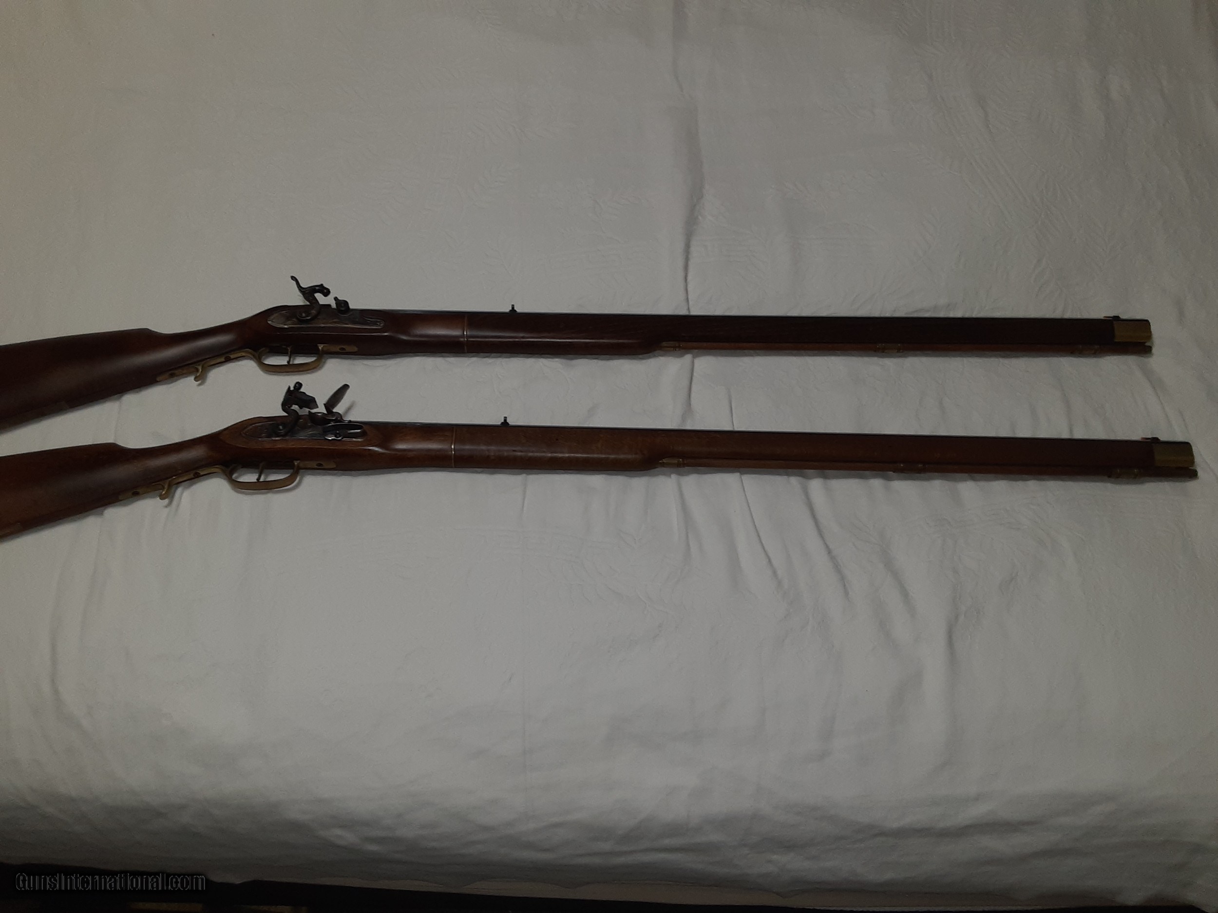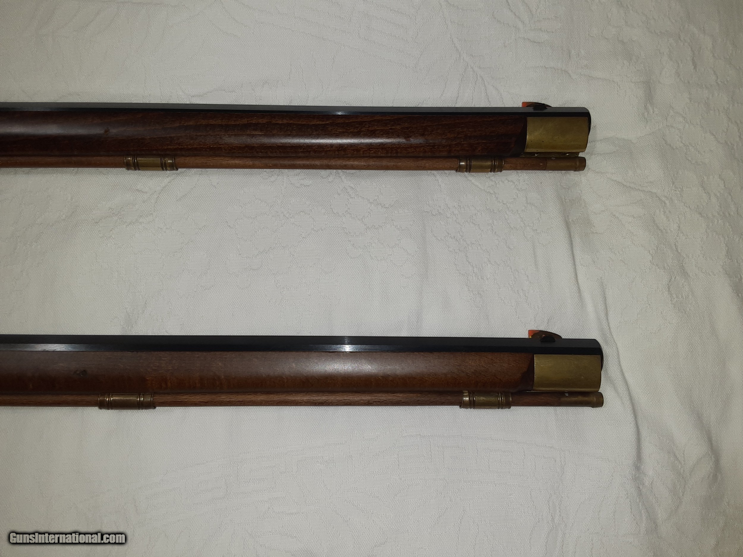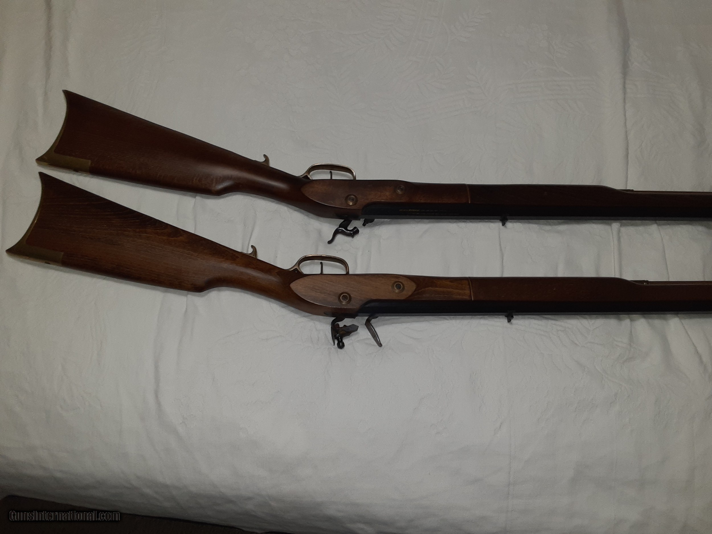 Description: A wonderful MATCHED PAIR of TRADITIONS KENTUCKY LONG RIFLES 50 CAL. ONE FLINTLOCK & ONE CAP LOCK!! These Beautiful Black Powder RIFLES WERE BUILT IN SPAIN IN THE '90S.. and are true and complete copies of the originals. CAST ENGRAVED SIDE PLATES, OCTAGON BARRELS, 48" OAL... A two gun Display Stand is also available... Suitable for use or Display.. $800 for pair $450 ech + Freight SOLD Rifle Caliber: .50 Manufacturer: TRADITIONS Model: Kentucky Long Rifle Condition: 99.9% Metal Condition: 100% Wood Condition: ABSOLUTELY GORGEOUS 100% Bore Condition: 100% Barrel Type: Steel Triggers: SINGLE Stock: QUALITY WOOD Manufacture Date: 1990's ?? Engraving: Cast sideplate |