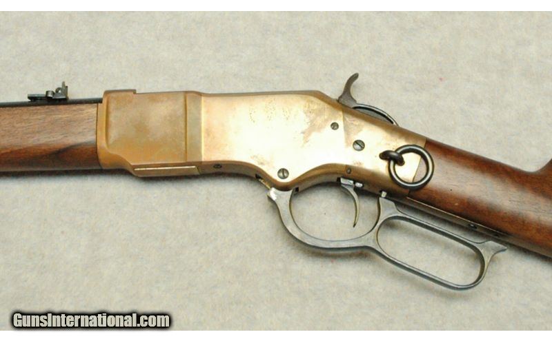 Description: Navy Arms Model 66 Saddle Ring Carbine .44-40. Excellent condition. Classic 66 type lever action, a good choice for Cowboy Action Shooting or old west reenacting. SOLD Caliber Info: .44-40 Winchester. Chambers: Lever action. Metal Condition: Excellent, light finish wear, small nicks and scratches. Wood Condition: Stock is in excellent condition. Bore Condition: Bright. Barrels: 16" Barrel. Triggers: Factory trigger. Stock: Natural finish. Stock Dimensions: 13 1/2" LOP. Fore End: Smooth with metal band. Butt Pad: Curved metal butt plate. Weight: 7 Lbs. Sights: Iron sights. Item Location: La Vista, NE |