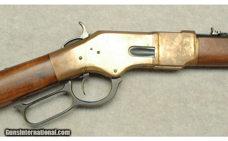 Description: Navy ArmsModel 66Saddle Ring Carbine.44-40. Excellent condition. Classic 66 type lever action, a good choice for Cowboy Action Shooting or old west reenacting. .44-40 Winchester SOLD Chambers: Lever action. Metal Condition: Excellent, light finish wear, small nicks and scratches. Wood Condition: Stock is in excellent condition. Barrels: 16" Barrel. Triggers: Factory trigger. Stock Dimensions: 13 1/2" LOP. Fore End: Smooth with metal band. Butt Pad: Curved metal butt plate. Sights: Iron sights. Item Location: La Vista, NE |