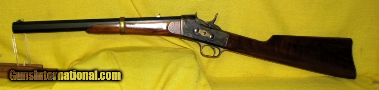 Description: NAVY ARMS model A11 CARBINE in 45-70 CAL., with 18" barrel. Color BLUE. THIS HEAVY BARREL ROLING BLOCK CARBINE IS IN EXC OVERALL CONDITION RETAINING 98% PLUS FACTORY BLUE AND VIVID CASE COLOR ON THE RECEIVER. THE STOCK AND FOREND ARE EXC, Condition 98% PLUS. . SOLD |