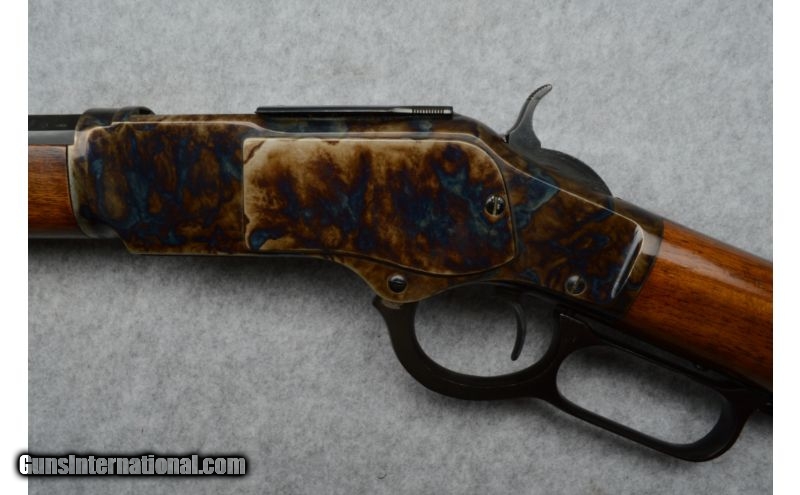 Description: SOLD Caliber Info: .44 SP / .44-40 Metal Condition: Excellent Wood Condition: Very Good some handling marks Bore Condition: Very Good Barrels: 24¼ Inch octagonal barrel Triggers: Single Stock: Smooth American Walnut Fore End: Smooth American Walnut with Cap Butt Pad: Factory Steel Weight: 8 Pounds 6 Ounces Sights: Step-adjustable, semi-buckhorn rear sight and a gold bead front sight Item Location: Noblesville, IN |